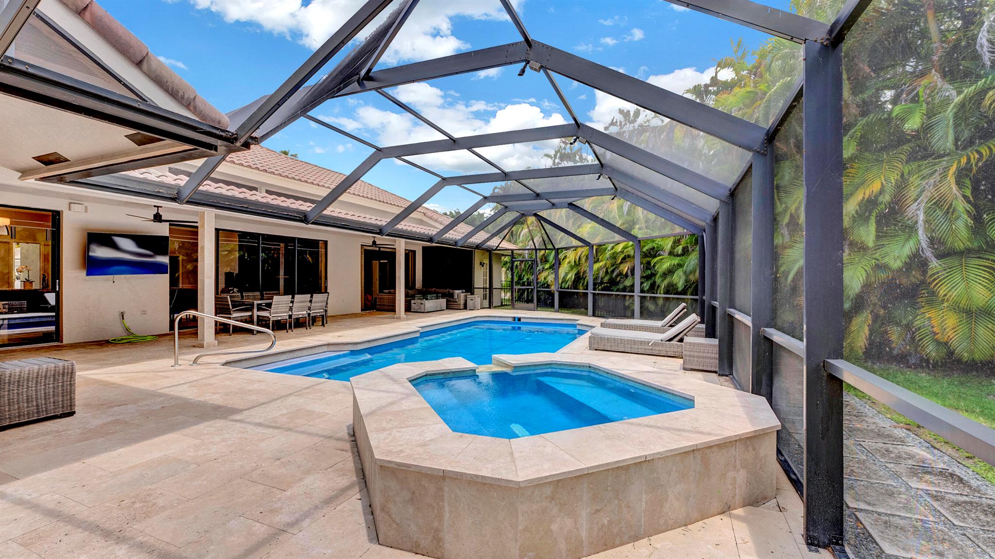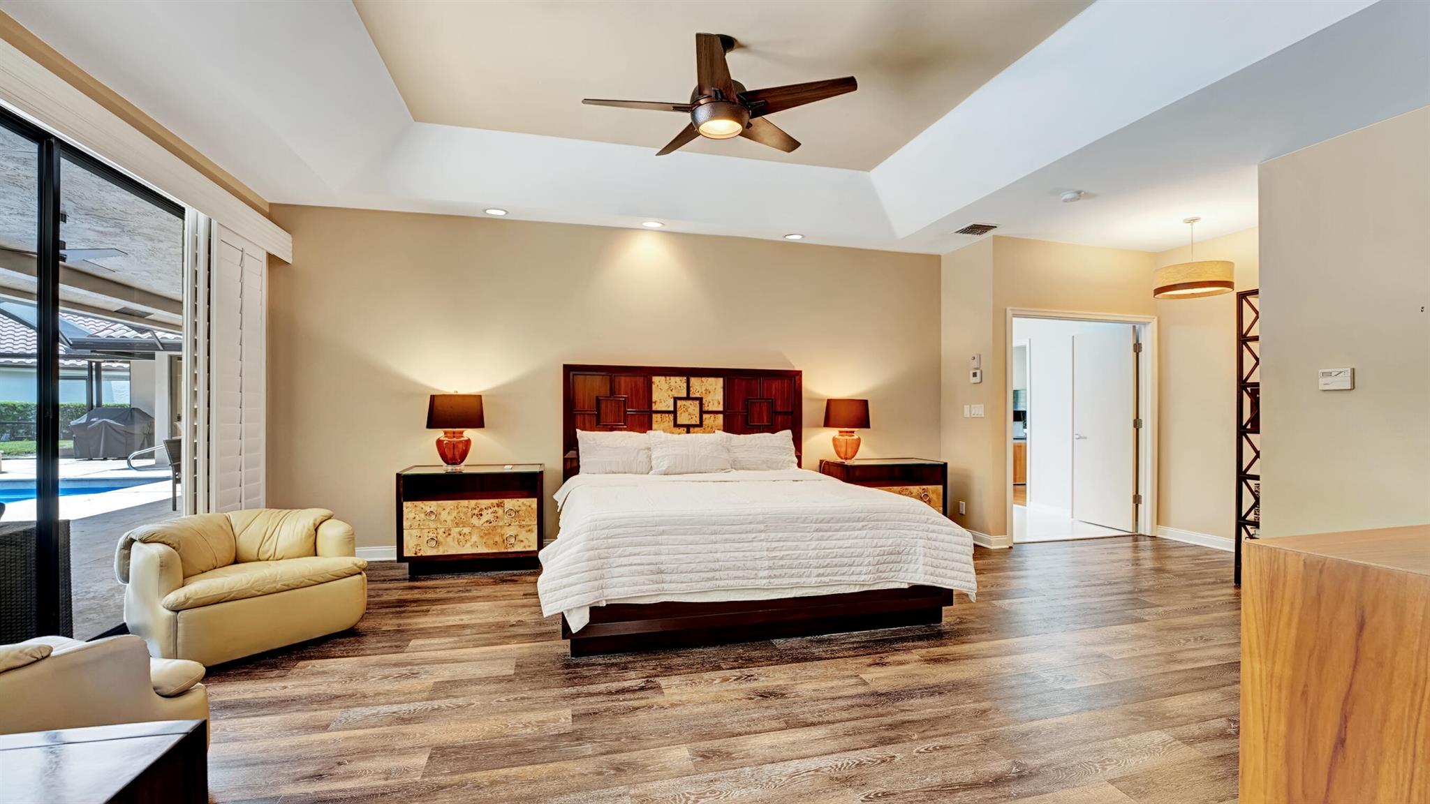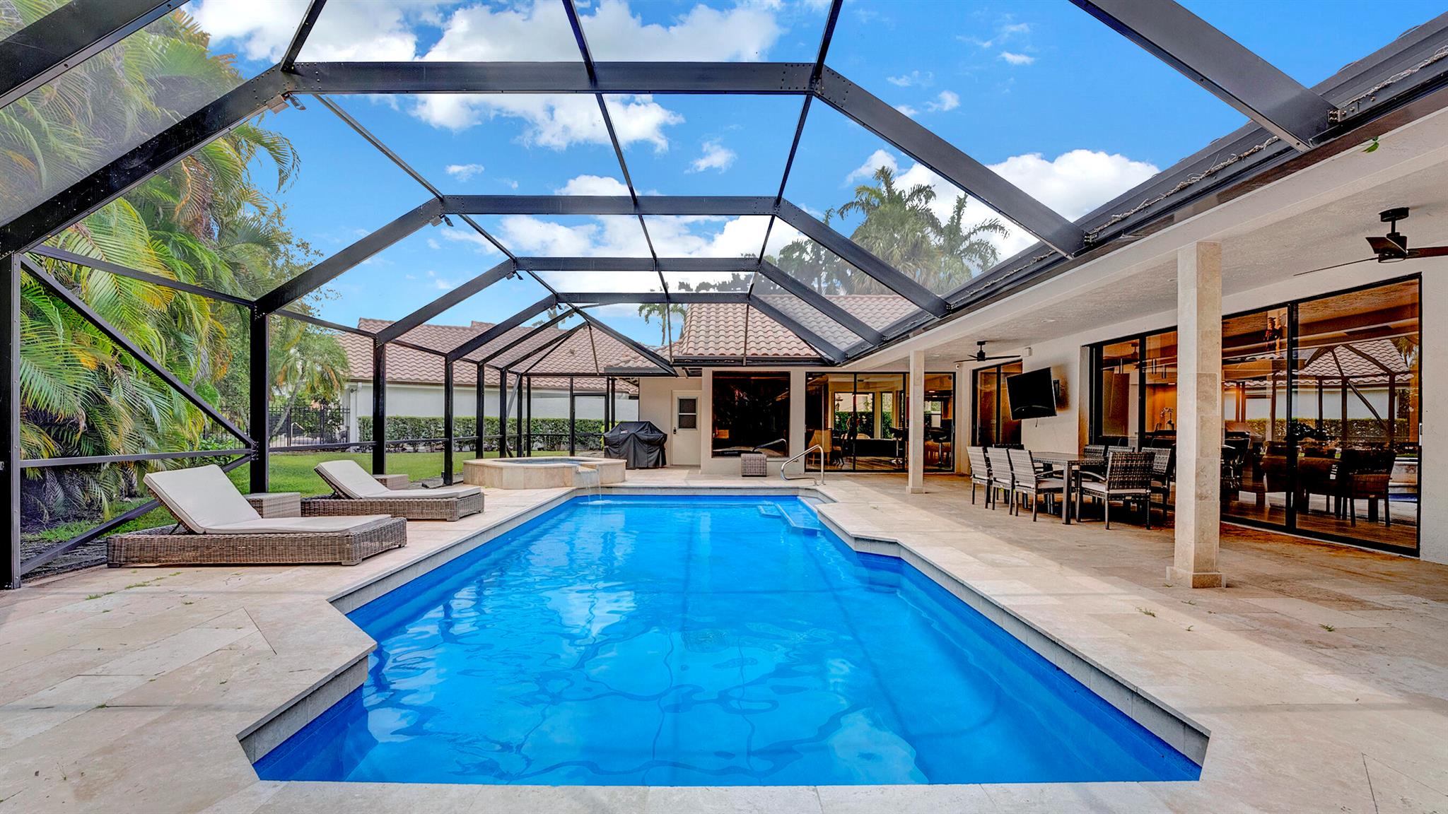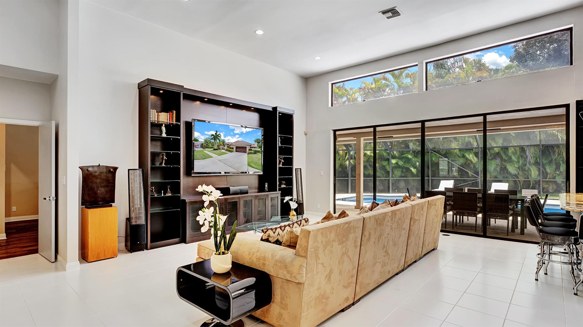 Located in the exclusive Encantada section of Boca Pointe-Discover your opportunity to own one of the largest single-story homes in the coveted Encantada section of Boca Pointe. This lakefront residence offers 3 spacious bedrooms, 3 bathrooms, and over 3,350 square feet of living space, all set on an expansive 13,000+ sq ft lot with tranquil water views and lush tropical landscaping.From the moment you enter, you'll appreciate the volume ceilings, abundant natural light, and a layout designed for both entertaining and everyday comfort. The home features a formal living and dining room, large eat-in kitchen, split-bedroom design, and multiple access points to the screened patio and private pool overlooking the lake.Enjoy the peace of mind and prestige of Entrada, a quiet gated enclave