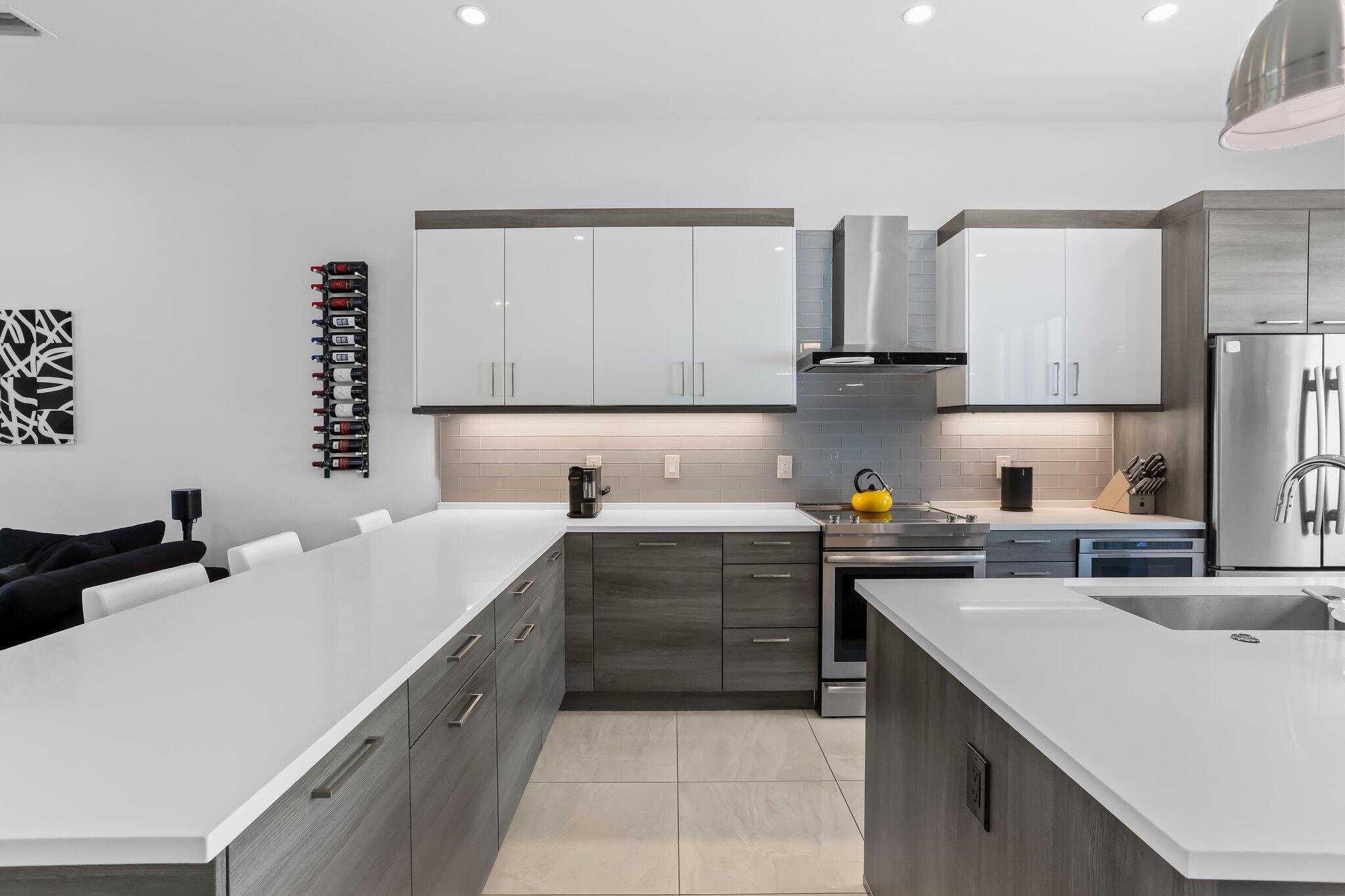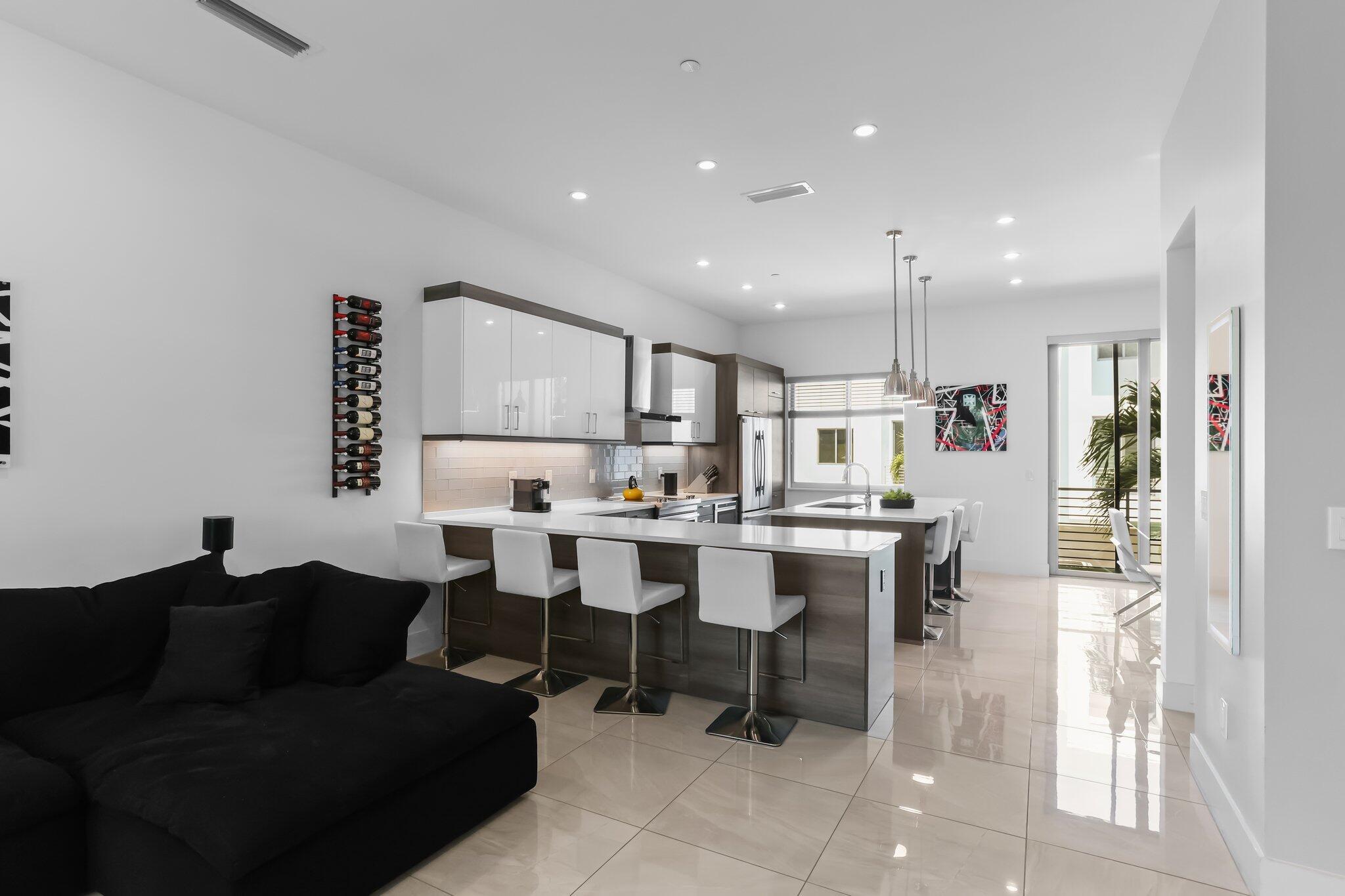 Modern Elegance & Refined Living in Boca Raton's Coveted Moderne Community Discover sophisticated living in this beautifully upgraded townhome located in the exclusive Moderne Boca Raton. With three bedrooms, two and a half bathrooms, and sleek contemporary design throughout, this residence offers a rare blend of luxury, comfort, and convenience in one of South Florida's premier communities. At the heart of the home is the stunning double island kitchen, an entertainer's dream. Outfitted with top-of-the-line JennAir appliances, European-style cabinetry, quartz countertops, and dramatic designer lighting, this space delivers both function and flair for elevated everyday living.Natural light fills the open-concept living and dining areas, creating a warm and welcoming ambiance.