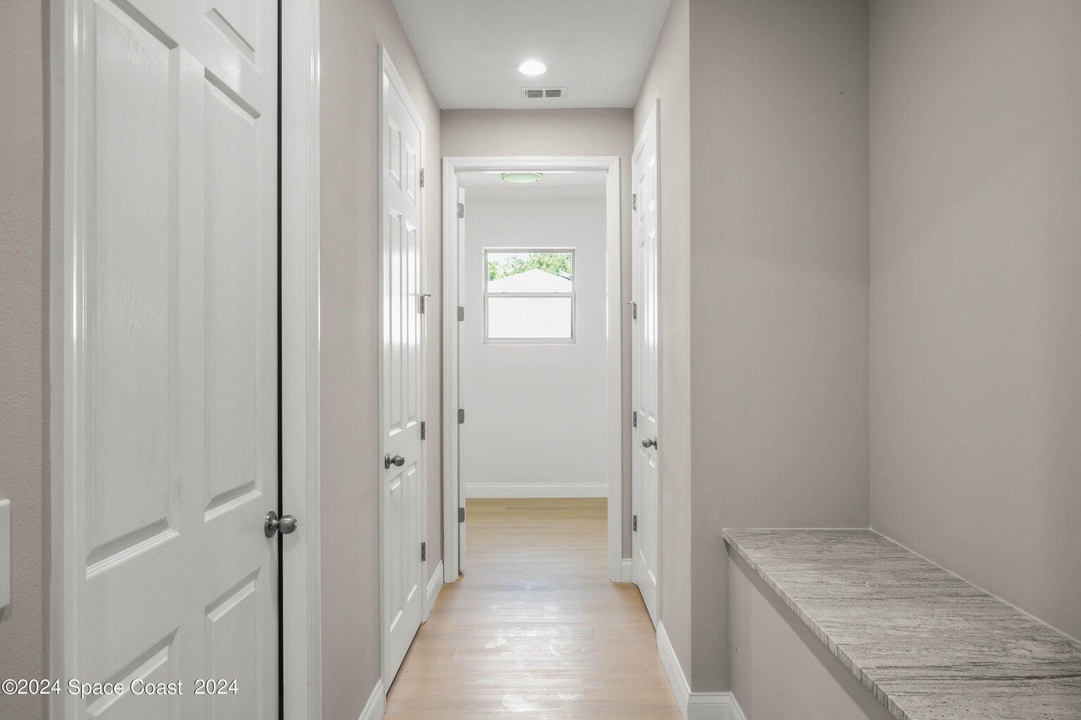 New Construction. Photos are of like model and are used for display purposes only. This Luxurious 3-bedroom, 2.5 Bath Property is exquisitely built with all of the upgrades nestled in the heart of Palm Bay. Inside you will find a wonderfully open floor plan gatherings and entertaining. The capacious Chef's Kitchen is stylishly equipped with a prep island, solid wood cabinets, stainless steel appliances and ample storage. The contemporary living space is bursting with natural light and a flowing layout that is inviting and relaxing. Luxuriate in the vast Primary Suite that offers a collection of modern conveniences. This beautiful house is full of INCLUDED upgrades: solid wood soft close cabinets in the kitchen and in the bathrooms, luxury vinyl plank flooring (no carpet