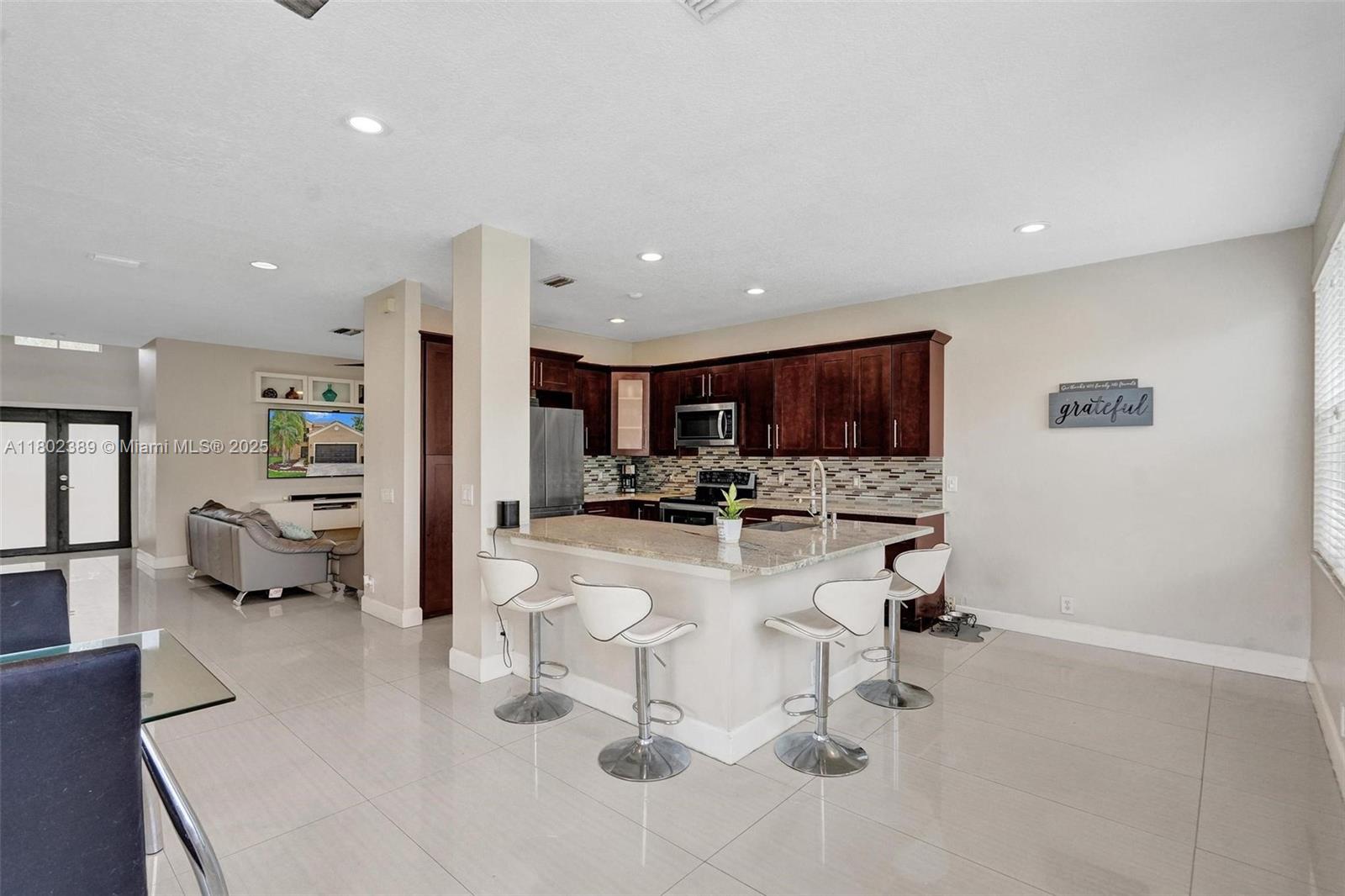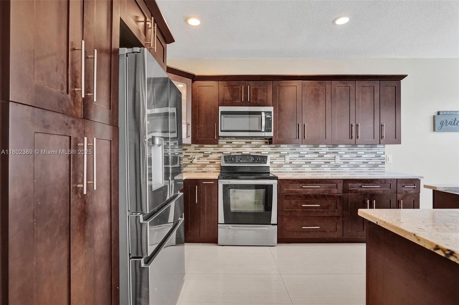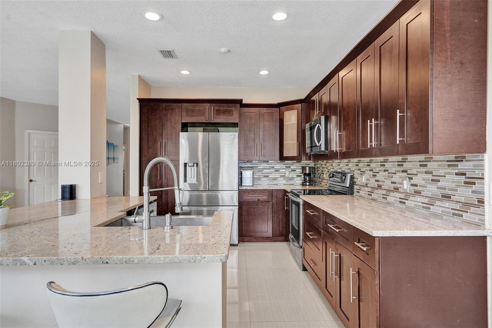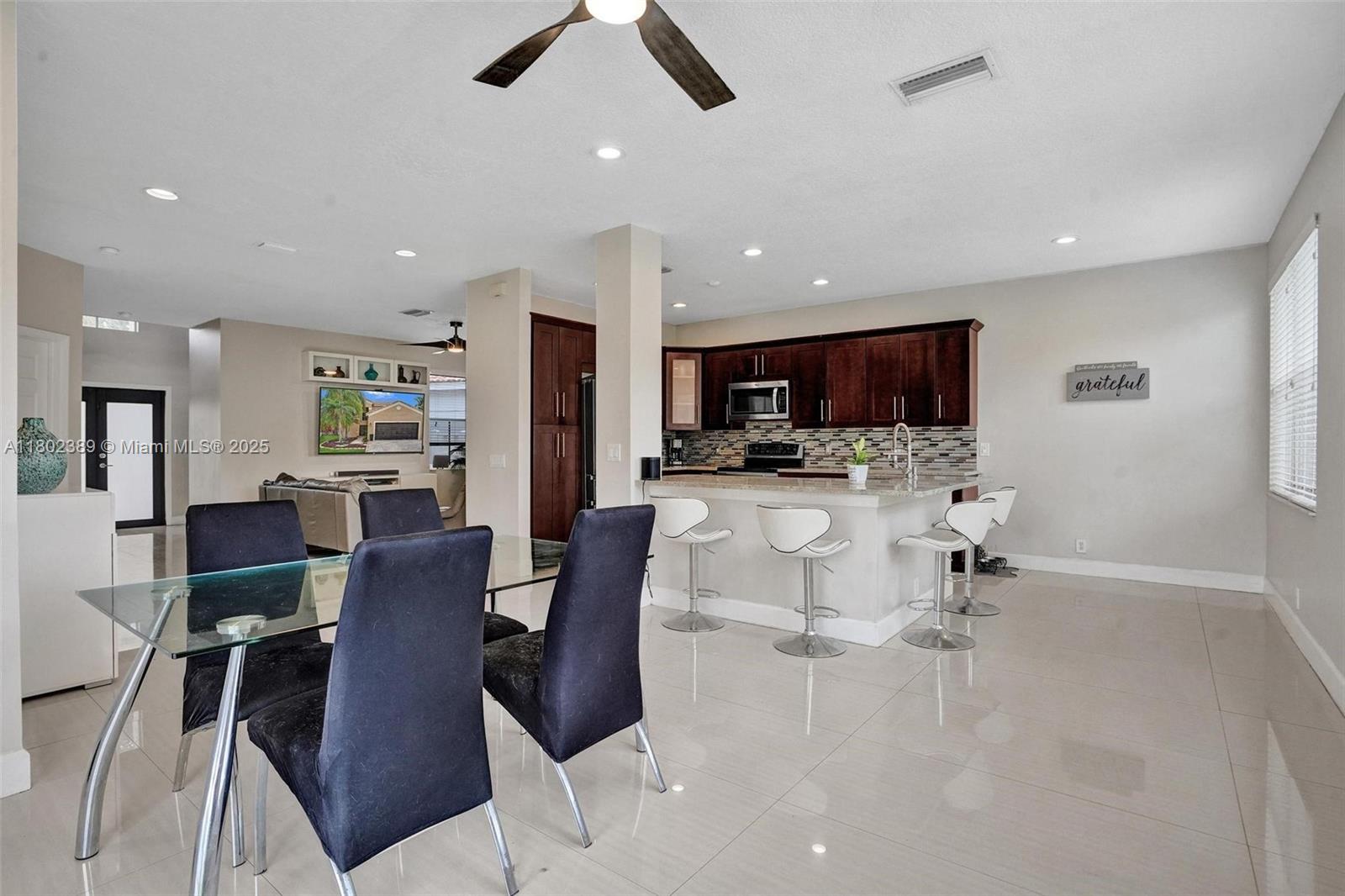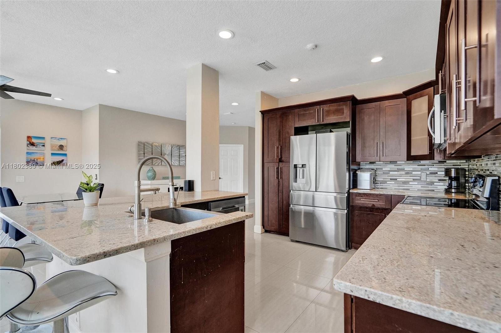 Beautiful 4-bed, 2.5-bath home in The Falls, Weston, nestled on a quiet cul-de-sac in a guard-gated community. This updated home also has a Roof & AC approximately 6.5 years new. Master suite on the first floor features a custom closet & upgraded bath with large shower and dual sinks. Upstairs offers three spacious bedrooms and a fully renovated bathroom. Open floor plan with high ceilings & abundant natural light. Updated kitchen with updated appliances, wood cabinets, and granite countertops. Extended covered patio perfect for entertaining, with plenty of space for a pool, gazebo and more. Tile flooring on the first floor, vinyl on stairs and second floor. Additional features include newer roof, AC, recessed lighting, updated half bath downstairs, laundry room under air, & 2-car garage.