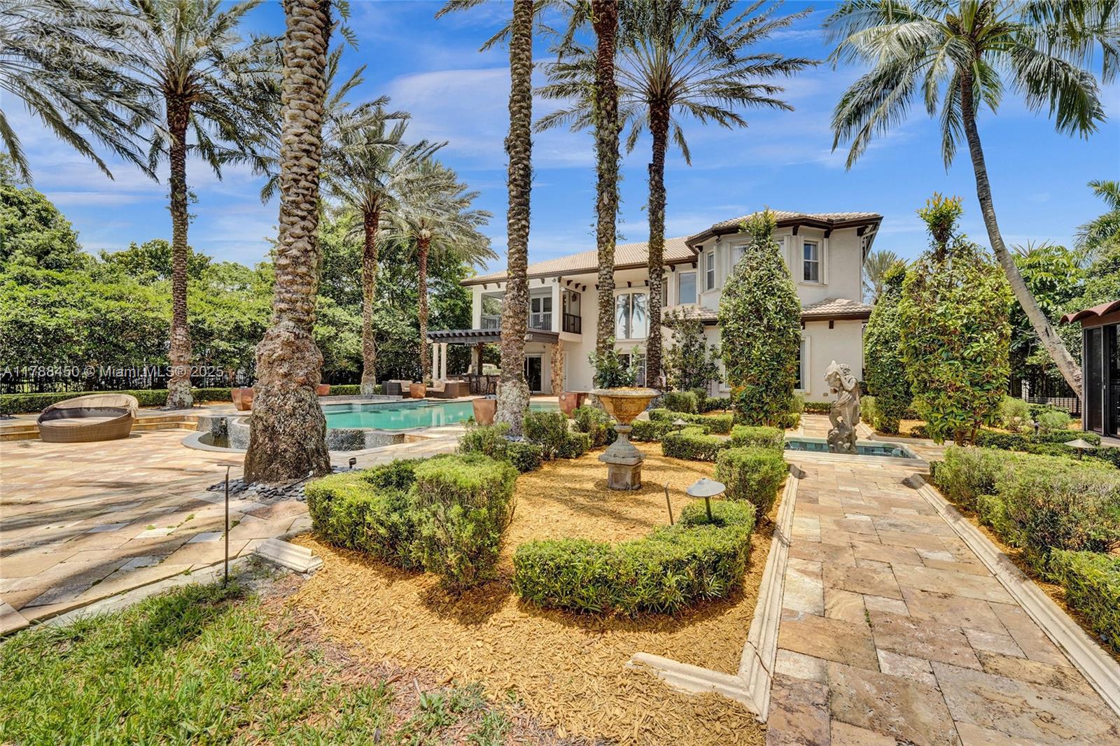 Welcome to the “Van Gogh” estate on 35052SF waterfront lot. This 6 BD, 5.5 BT home features 6910SF, with office, media and sound-proof room. Enter into the grand foyer with 24-ft ceilings, crown molding, wood and marble floors, and Savant home automation. Gourmet kitchen features marble counters, stainless appliances, center island and temp-controlled wine room. Main-level guest suite is perfect for multi-generational living or live-in nanny. Primary suite upstairs with sitting area, 2 walk-in closets, and spa-like bathroom. Step outside to your own oasis: infinity-edge heated saltwater pool, 2 poolside cabanas, sunken fire-pit, playground, summer kitchen, and media projector. Added conveniences: accordion shutters, full-home generator, mosquito-mist system. See attached features booklet