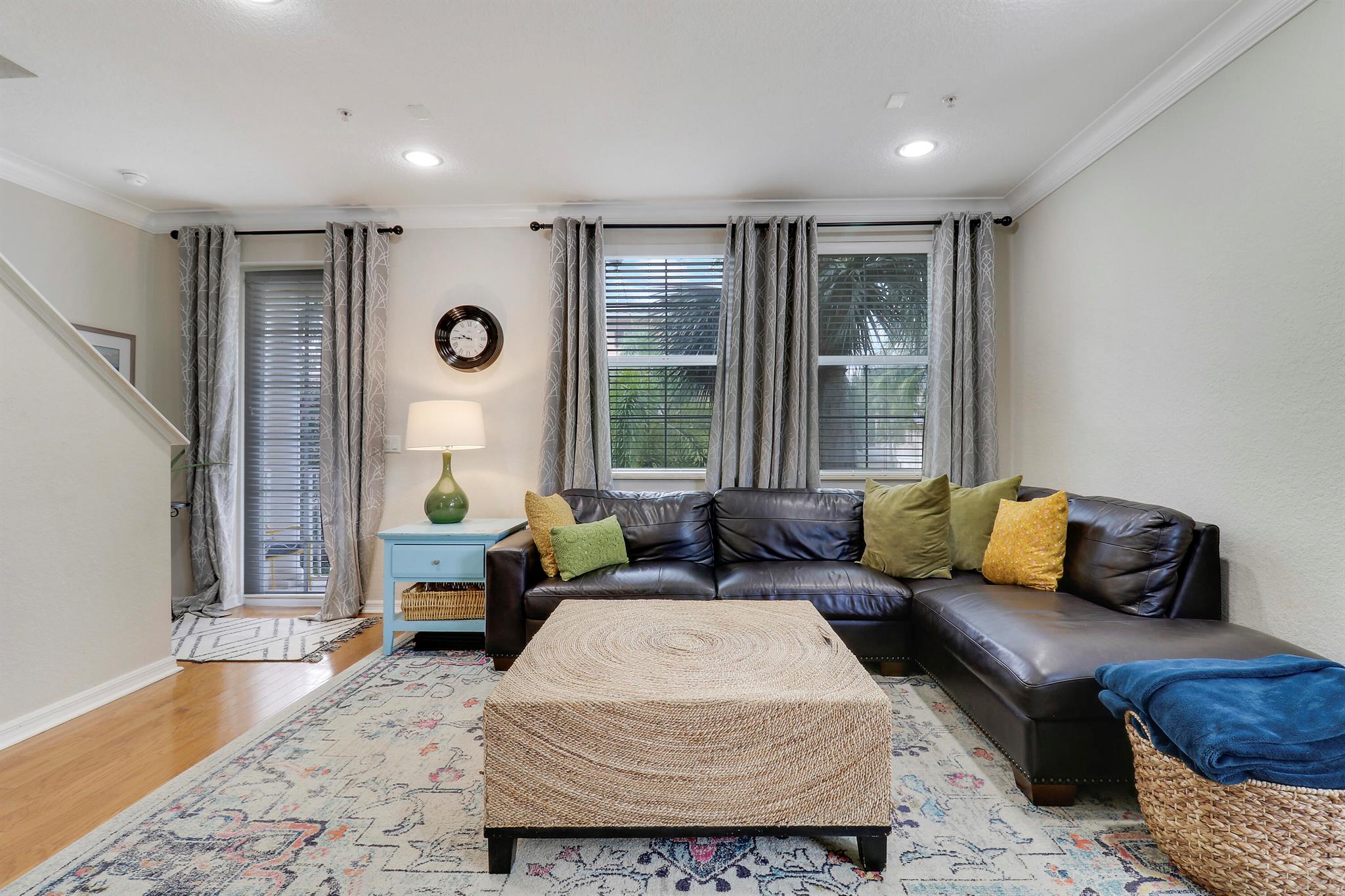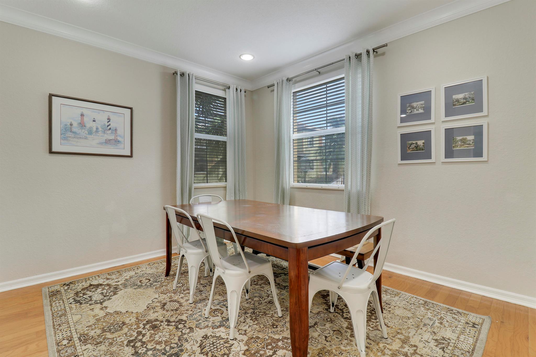 Discover this delightful three-story end unit situated on a serene community green space in the vibrant heart of Jupiter, FL. With 1,932 square feet of inviting living space, this home boasts three bedrooms and three bathrooms. The open floor plan features a versatile bonus room and bathroom on the first floor, a formal dining room, and a cozy breakfast bar, ideal for entertaining guests. High ceilings and crown molding in the main living area add a touch of sophistication. Relish Florida's gorgeous weather from your private balcony or enjoy the proximity to all the attractions Abacoa has to offer. This residence also includes the convenience of a garage and additional parking.