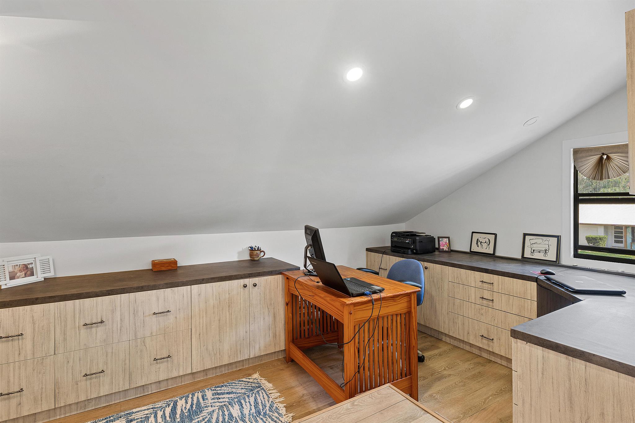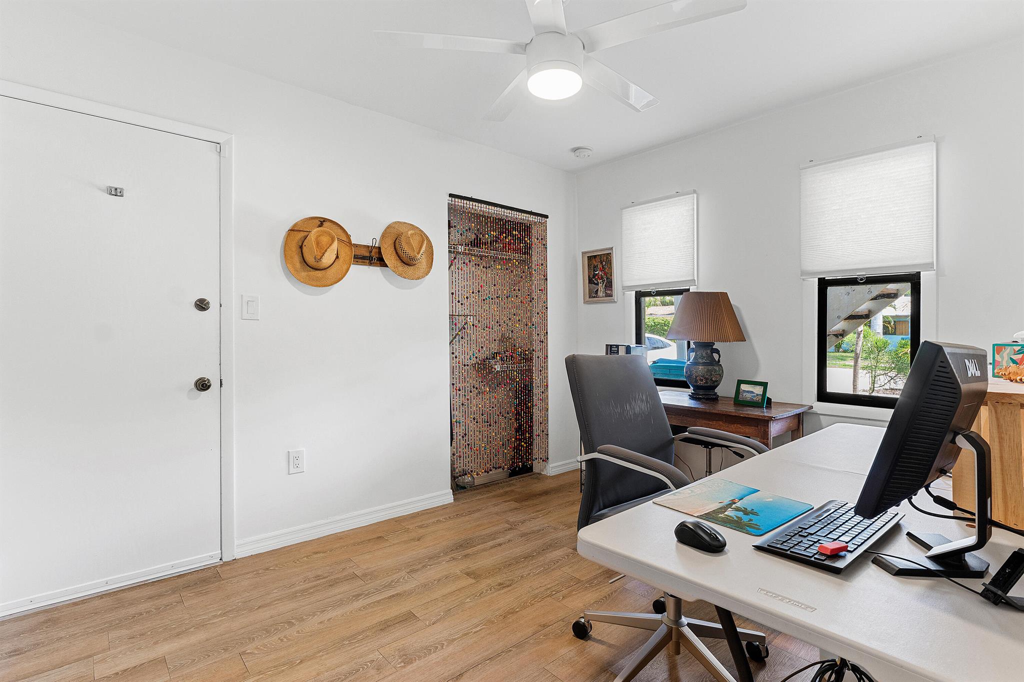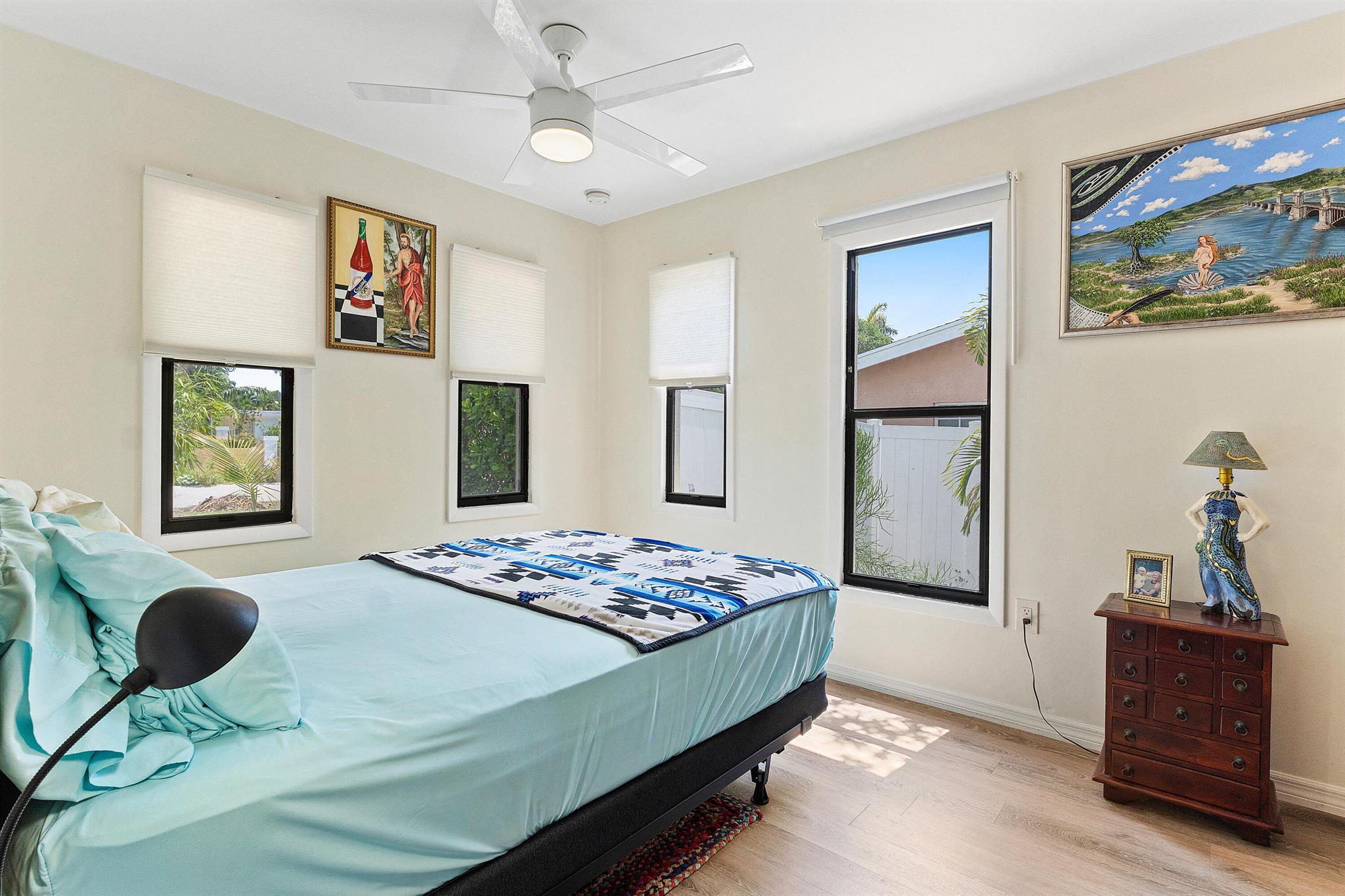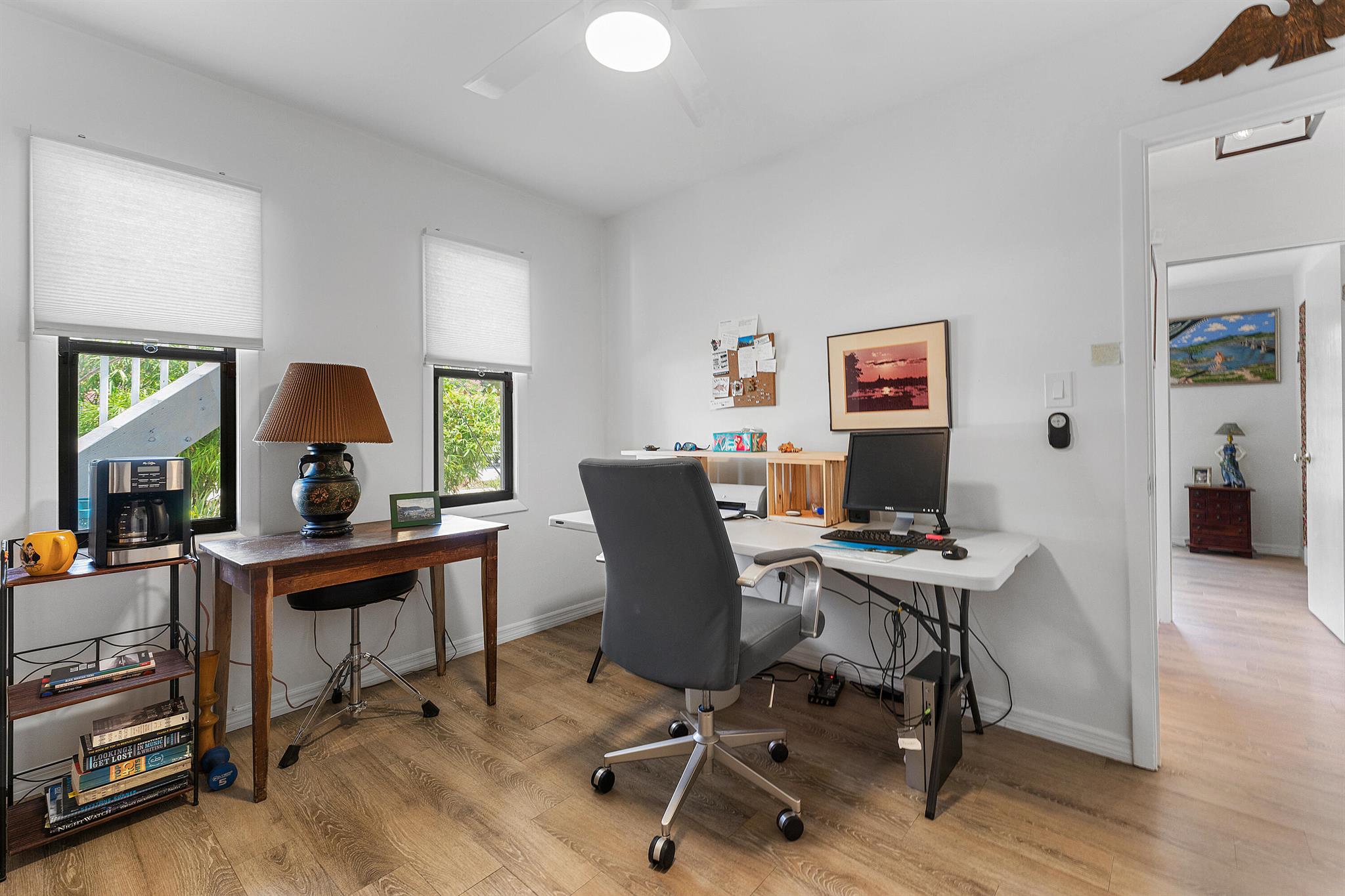 Truly one-of-a-kind, this two-story home sits on a tranquil, tree-lined street that ends at the Intracoastal in East Boynton Beach. Thoughtfully designed with character throughout, the home features unique elements like a cozy sleeping loft with ladder access, inviting front and back decks, and smart built-ins.The upstairs living area overlooks an expansive yard filled with swaying palms and mango trees, creating a serene, tropical retreat. Each bedroom offers its own distinct charm, and the oversized 2-car garage provides ample space for storage or hobbies. Recent updates include new appliances, modernized bathrooms, and a low-maintenance xeriscaped front yard.