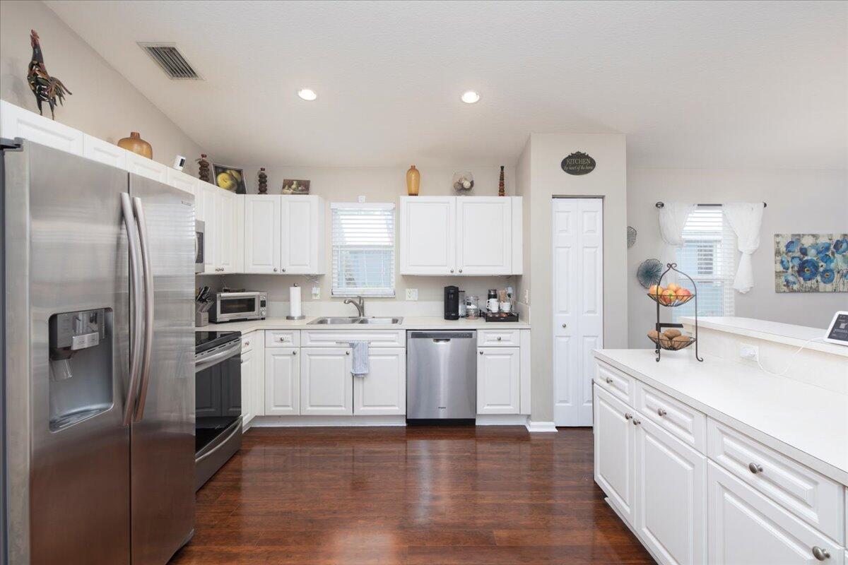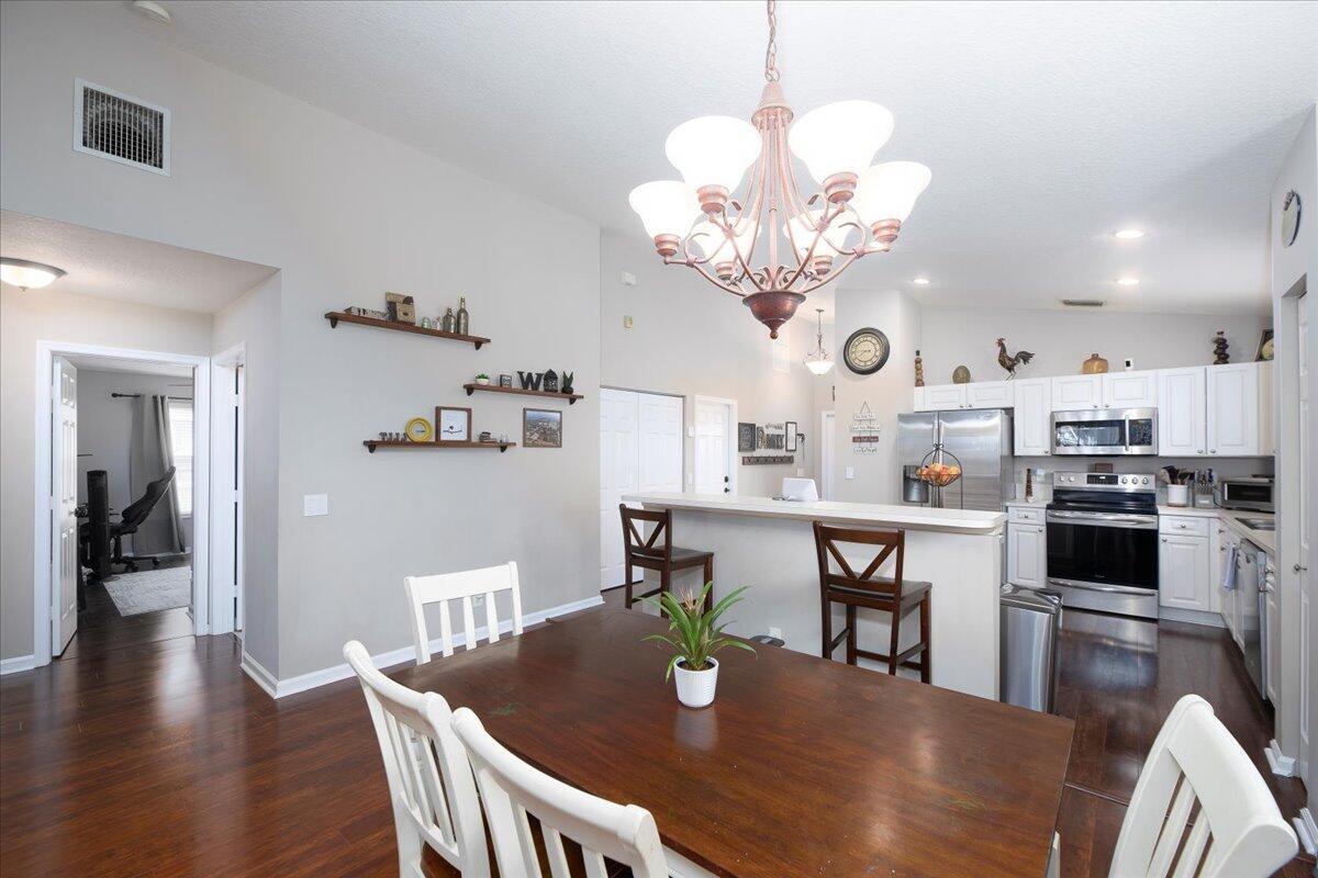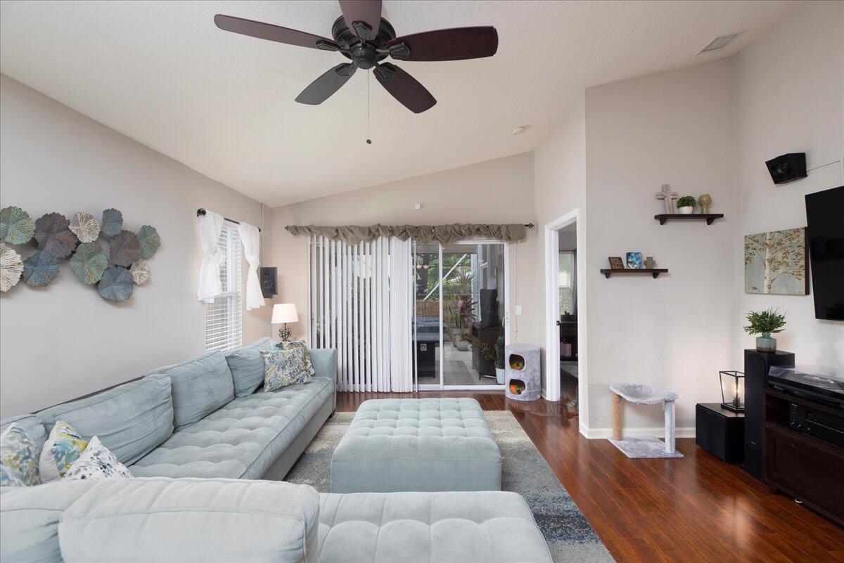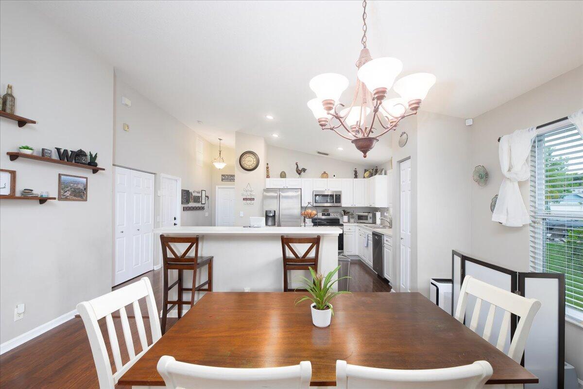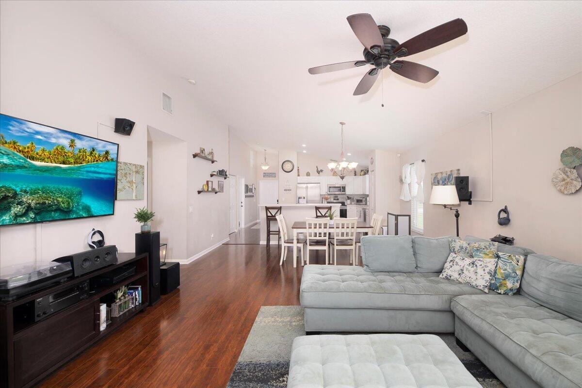 Beautiful 3/2/2 + DEN in River Forest with community boat ramp access to the OCEAN! Efficient, Storm Resistant solid Royall Wall construction. The calming, soothing colors will envelope you in serenity. Gorgeous Wood Laminate flooring throughout. Wide open floor plan with Kitchen Island overlooking dining area and living room. High vaulted ceiling. Primary bedroom features ensuite bath with dual vanities, soaking tub. and separate shower. Screened in patio to relax with your morning coffee, or unwind at the end of the day. Community amenities include playground with 1/2 court basketball and kids' playground equipment, Clubhouse, Entertaining Kitchen and huge pool. Great location away from the hustle and bustle, yet just a few miles to restaurants and shopping and I-95.