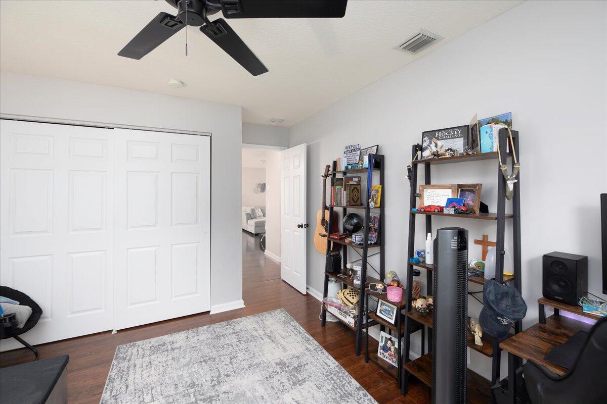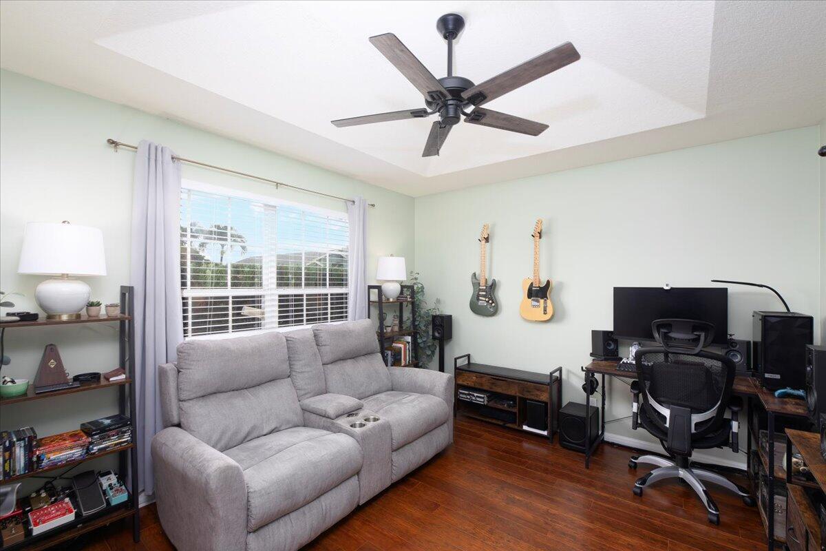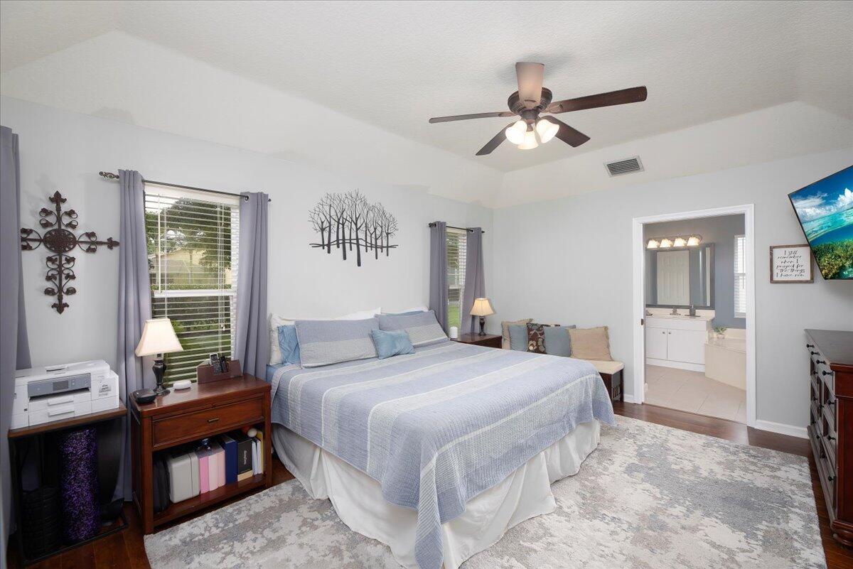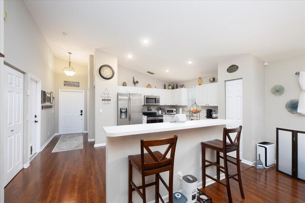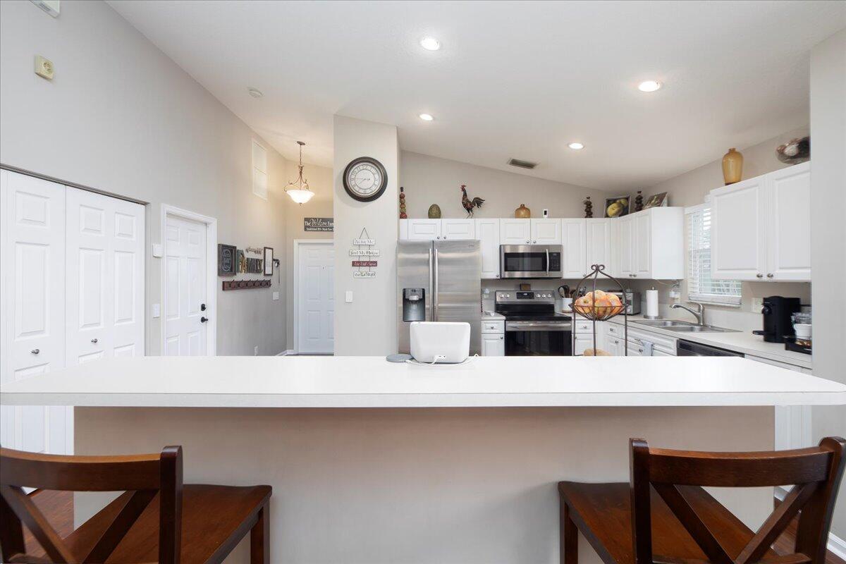 Beautiful 3/2/2 + DEN in River Forest with community boat ramp access to the OCEAN! Efficient, Storm Resistant solid Royall Wall construction. The calming, soothing colors will envelope you in serenity. Gorgeous Wood Laminate flooring throughout. Wide open floor plan with Kitchen Island overlooking dining area and living room. High vaulted ceiling. Primary bedroom features ensuite bath with dual vanities, soaking tub. and separate shower. Screened in patio to relax with your morning coffee, or unwind at the end of the day. Community amenities include playground with 1/2 court basketball and kids' playground equipment, Clubhouse, Entertaining Kitchen and huge pool. Great location away from the hustle and bustle, yet just a few miles to restaurants and shopping and I-95.