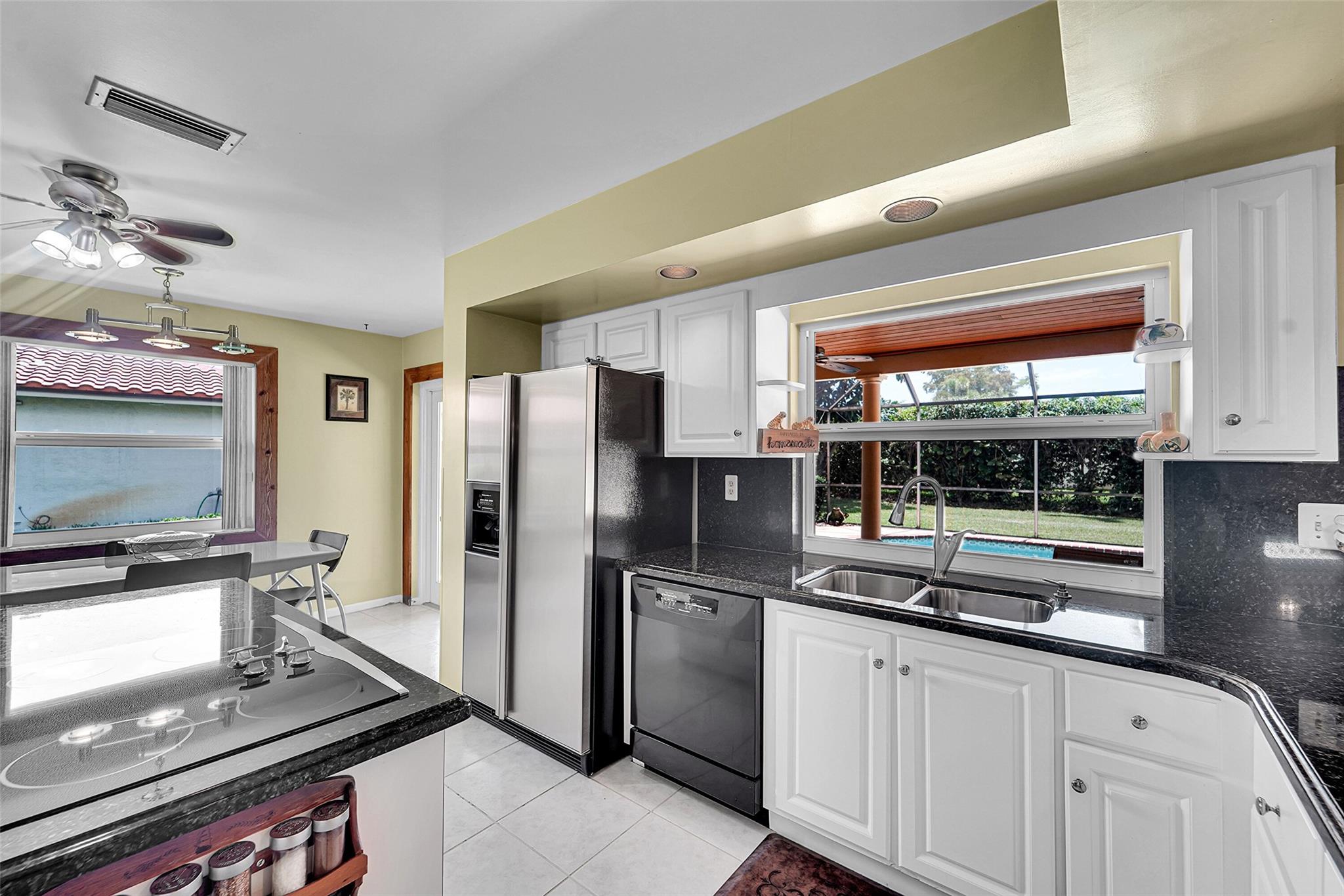 Updated home in the highly desirable Oakwood neighborhood! On over 1/4 acre of land, this home features a large circular driveway for all your family's cars, impact windows, roof (2010)! Vaulted tongue and groove ceilings in the living area. Kitchen features updated cabinets, granite counters w/ island, stainless steel appliances, and eat-in kitchen. Formal dining room can fit the whole family for holidays. Master bedroom features large walk-in closet and doors leading out to pool. All bedrooms good sized. 2nd bathroom also updated. Screened in & remodeled pool area overlooks the large backyard - perfect for pets or kids to run around and enjoy! Move into this home just in time for summer & the new school year!