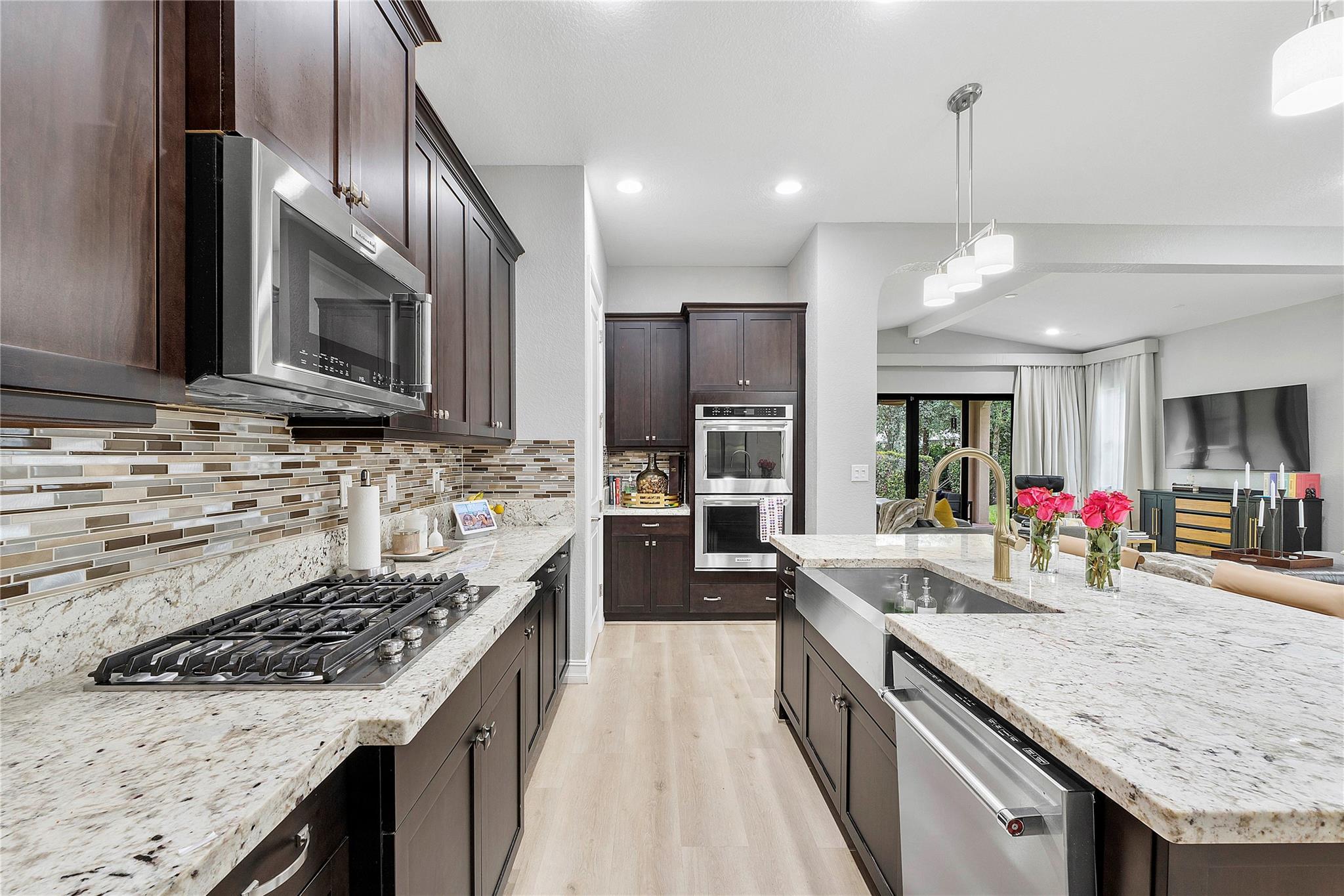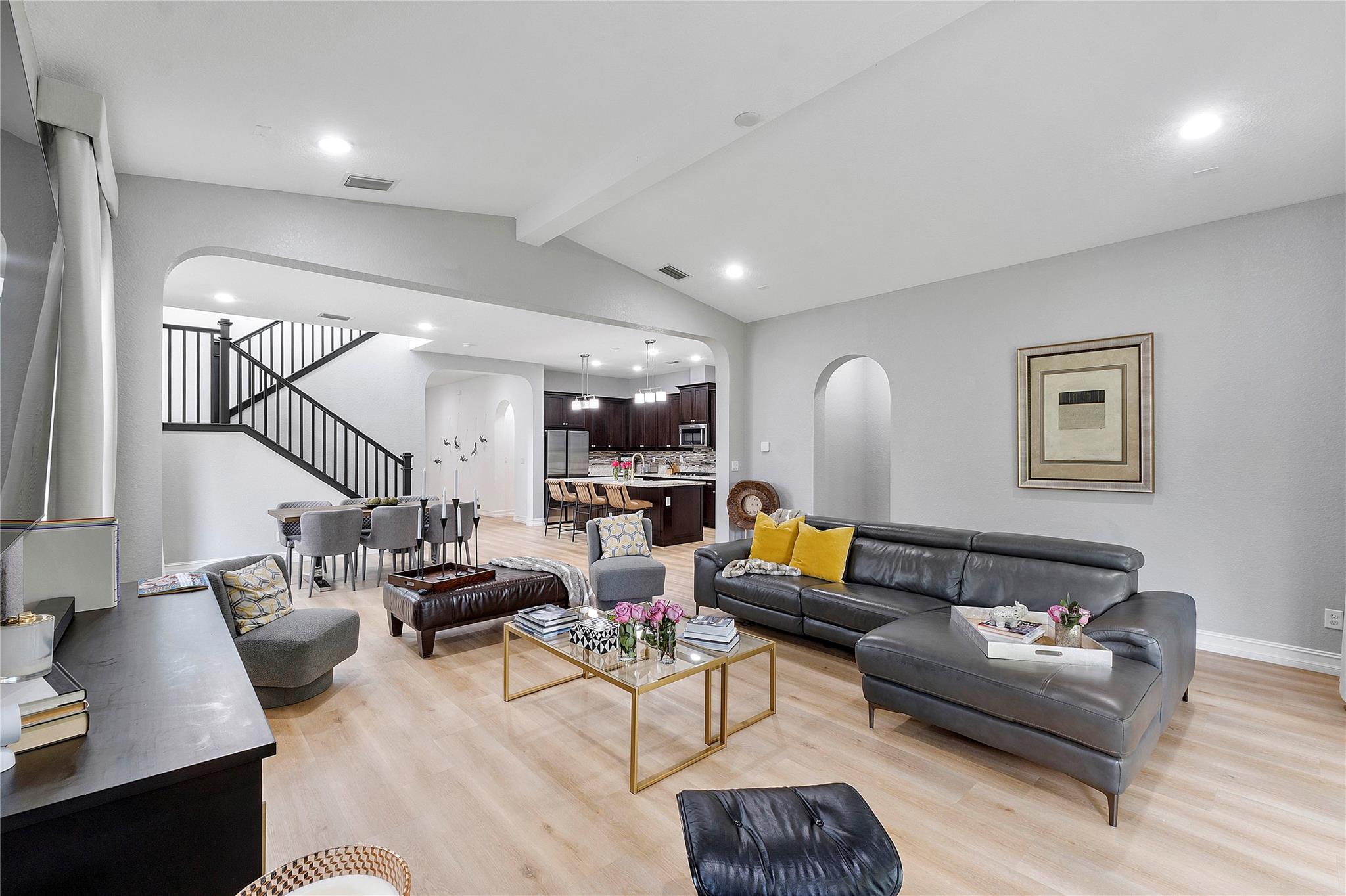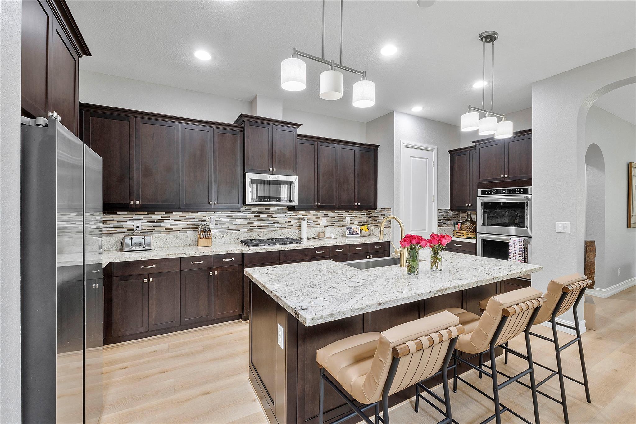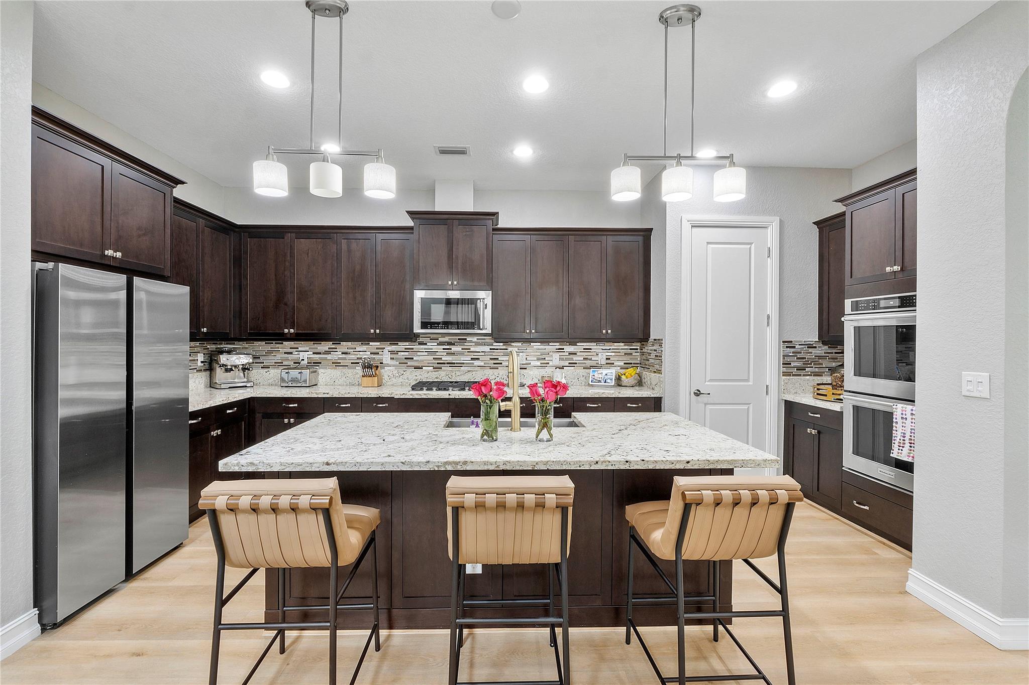 This pristine Provence model is located in one of Parkland's most sought after family communities! Features include a double door foyer entrance, an open floor plan, great room, casual dining, a versatile office-dining room, loft, new wood plank luxury vinal flooring on the entire lower level, 5 bedrooms & 4.5 Baths! The kitchen offers a huge center island, granite countertops, a glass tile backsplash, SS appliances, a new refrigerator, pendant lights and a custom built-in pantry! The primary suite has a tray ceiling, his & her lighted built-in closets, dual vanities & a huge walk in shower. This floor plan has 3 bedrooms upstairs, two bedrooms down, tons of storage and a new Samsung washer & dryer. Watercrest is guard gated & offers amazing amenities, low HOA fees & great area schools!