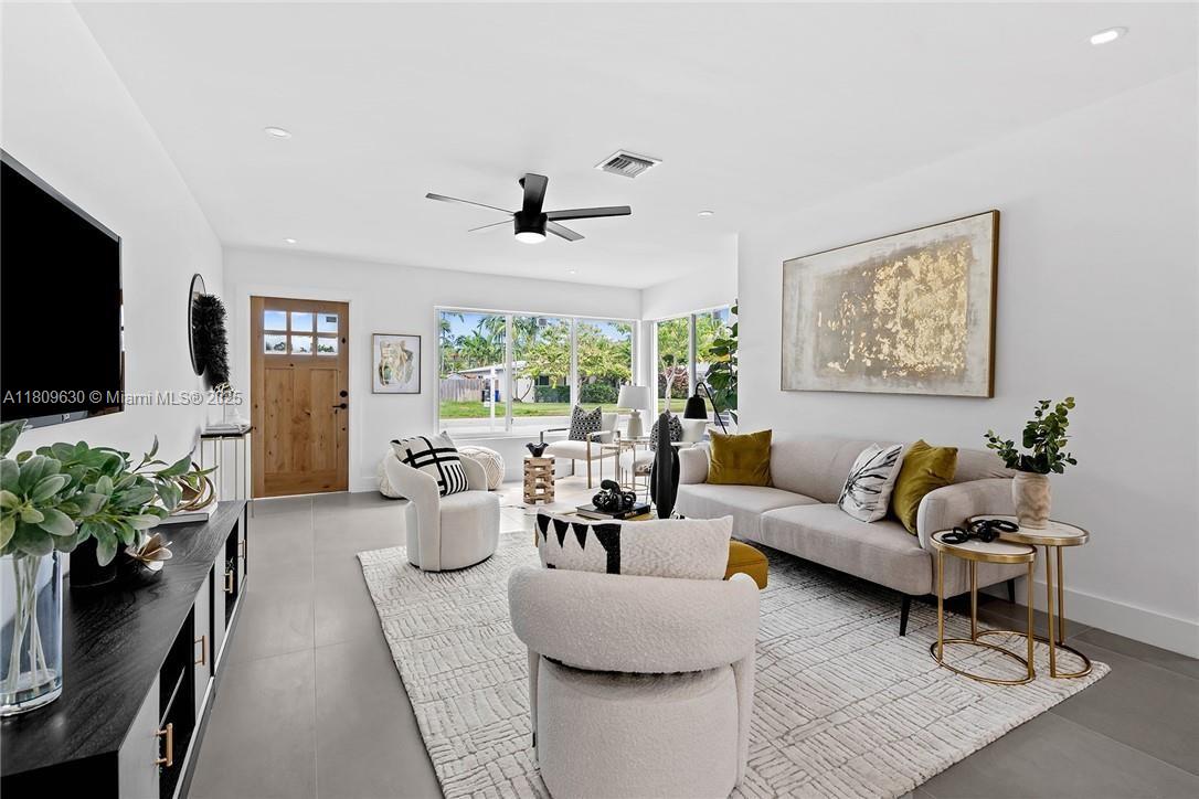Reimagined Modern Living in East Fort Lauderdale. Designed with today’s lifestyle in mind, this 4BD/2BA home was thoughtfully rebuilt from the studs up in 2022. The open split floor plan flows across large-format tile into a chef-inspired kitchen with sleek cabinetry, gas stove, and quartz waterfall island. The luxe primary suite features dual showers and a floating vanity, while impact windows, new roof, double French doors, and modern finishes elevate the home’s style. Enjoy a landscaped yard with room for a pool, boat/RV parking, and covered patio for seamless indoor-outdoor living. Walk to Whole Foods, Trader Joe’s, Pura Vida, schools, and shops—just minutes to Las Olas, Victoria Park, beach, and waterfront park with community boat ramp. Exterior photos coming soon.
