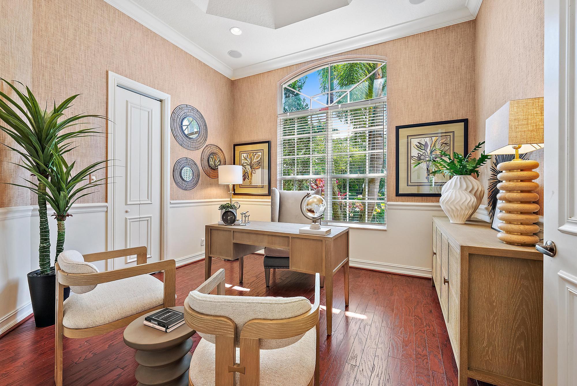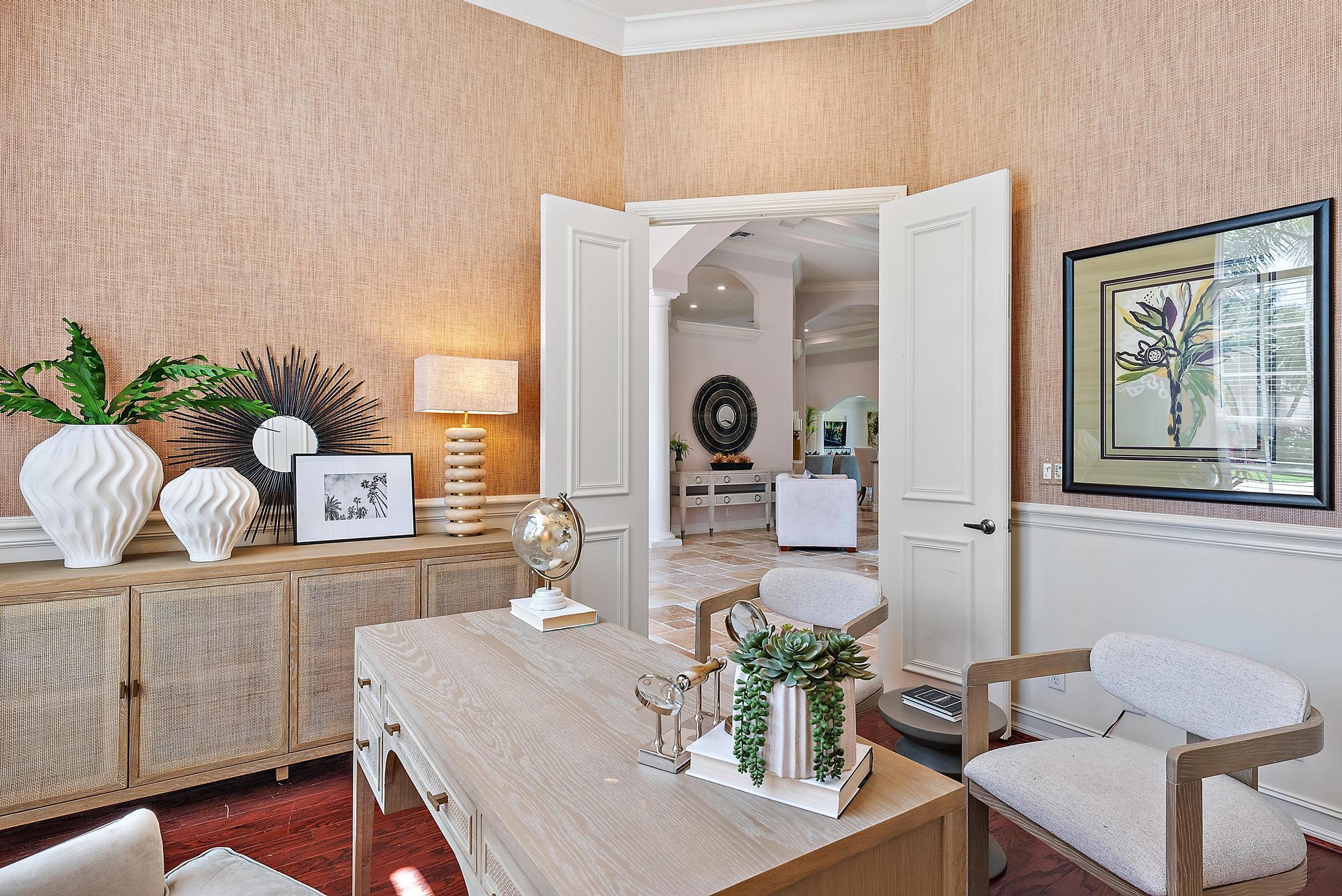 Sprawling Estate on One of the Largest Lots in Wildcat Run at The Club at Ibis. Designed for both luxury and functionality, this residence offers 4 bedrooms, 4.5 baths, a den, a billiard room, and a sitting room--an expansive and versatile floor plan ideal for elegant living and entertaining. Enjoy peace of mind with a NEW 2024 ROOF and IMPACT GLASS windows and doors throughout. The home seamlessly blends indoor and outdoor living with a spacious screened lanai (2017) that opens to lush landscaping and serene natural surroundings. Interior highlights include Jerusalem stone flooring, Brazilian Rosewood in the primary suite, extensive custom millwork, and coffered ceilings. Enjoy a spacious and true THREE-CAR GARAGE.