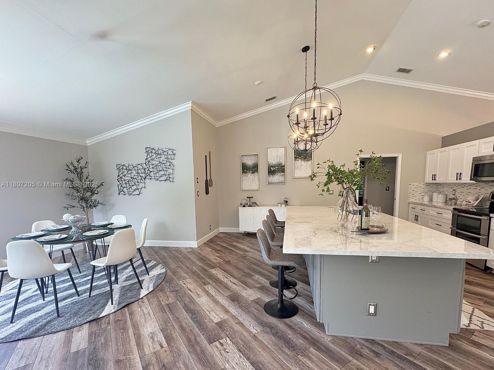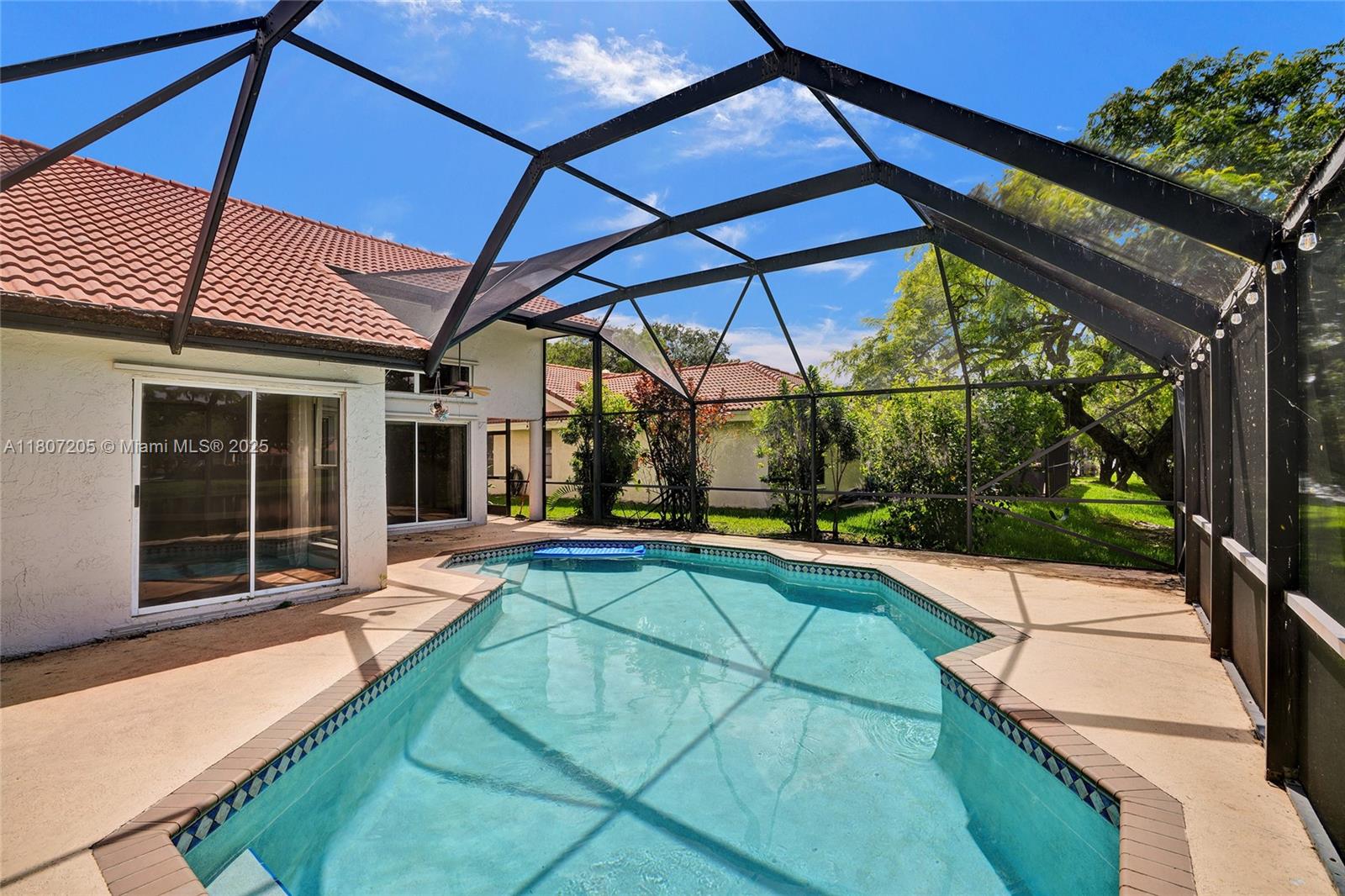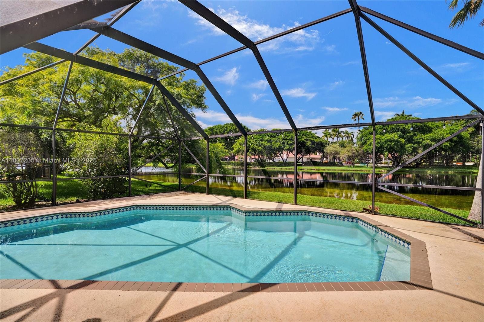 Enjoy serene lake views from this renovated 4 BD, 2.5 BT home in The Oaks II at Country Isles. The home features a screened-in pool and spa, set on an oversized lot, perfect for outdoor relaxation. The gourmet kitchen, updated in 2021, 10x5 center island, porcelain countertops, SS appliances, and a wall oven. Vaulted ceilings and luxury vinyl wood-look flooring flow through the open-concept living areas. Split floor plan offers privacy, with wood flooring in all bedrooms. Additional highlights include new AC (2025), plantation shutters, crown molding, and renovated bathrooms featuring double sinks and stone countertops. Home’s interior is bright and airy, with views of the pool, lake, and lush landscaping. Located within walking distance to Weston Town Center, parks, and local schools.
