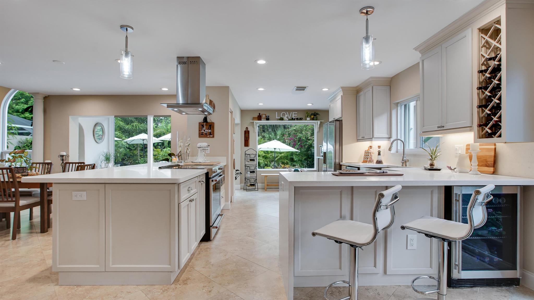 Gorgeous 4-bedroom, 2.5-bath pool home in the gated Ventura section of Mission Bay! From the moment you step inside, you'll be swept away by the open-concept design, soaring ceilings, large picturesque window and the perfect flow that makes this home ideal for both everyday living and entertaining. At the heart of the home is the chef's dream kitchen--featuring stainless steel appliances, prep stations, a walk-in pantry, and stunning quartz counter tops and elegant cream-toned cabinetry. A huge picture window floods the space with light and offers a serene view of the private backyard oasis and pool. Step outside into your tropical paradise, complete with a sparkling pool, travertine patio floor, and lovingly designed landscaping with a custom pergola and adorning bougainvillea.