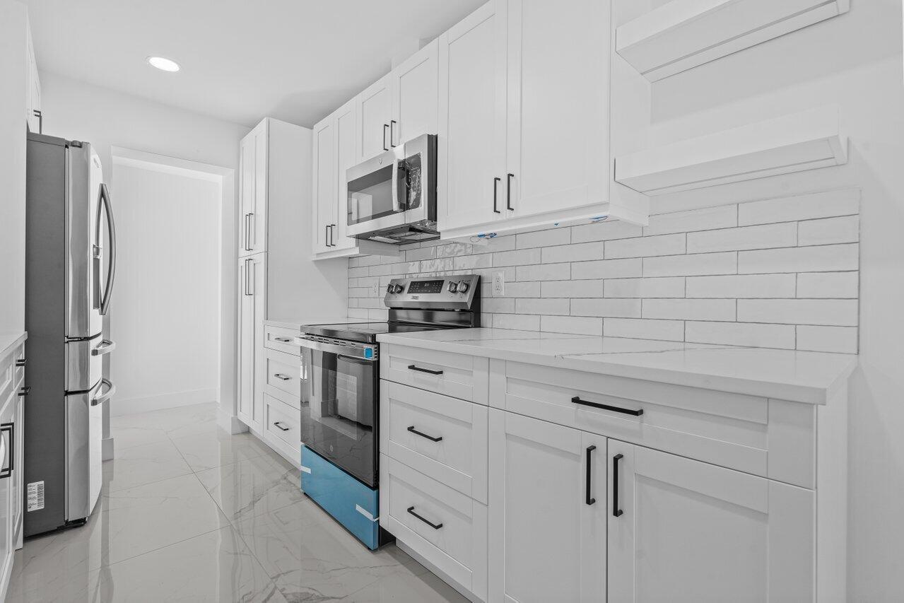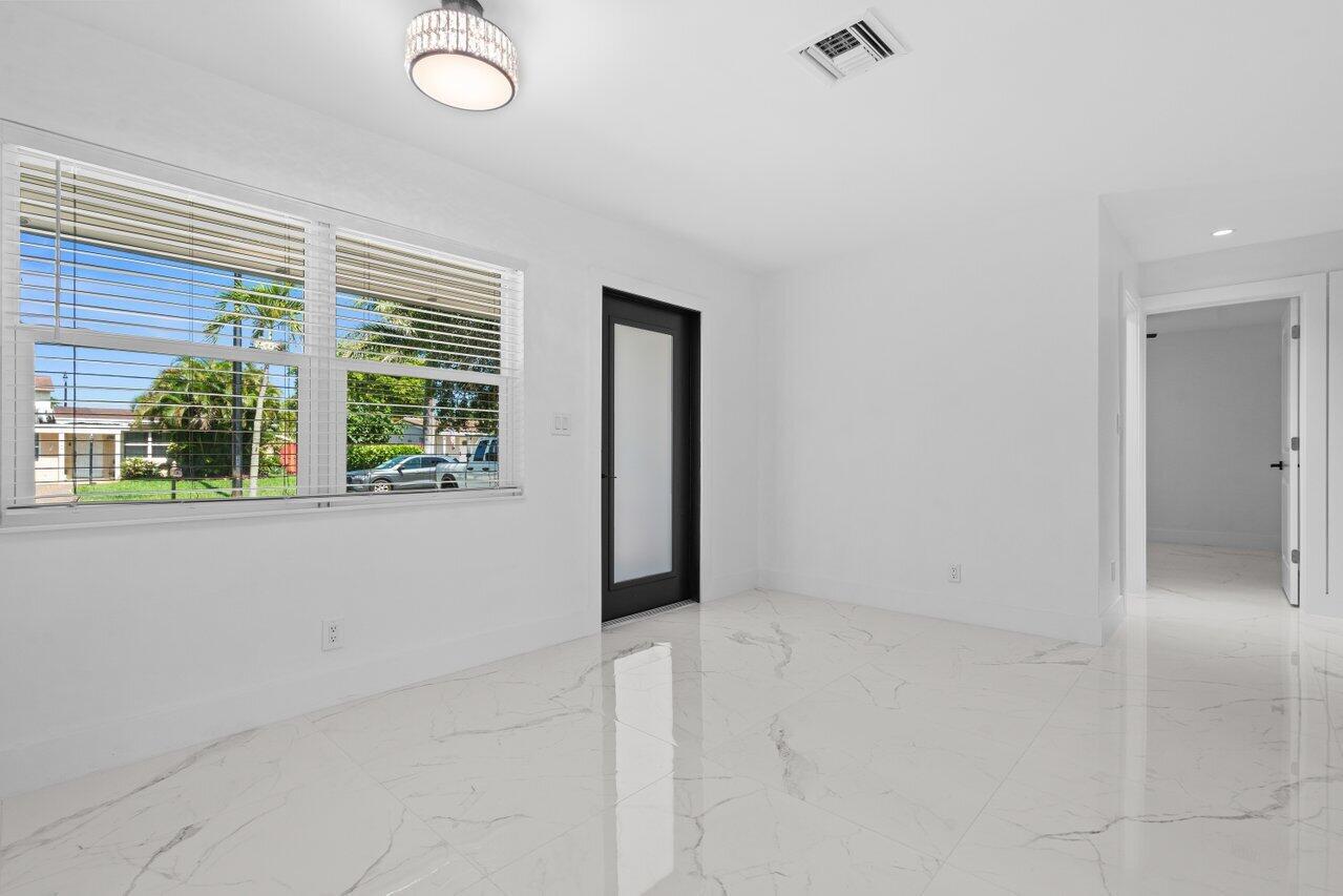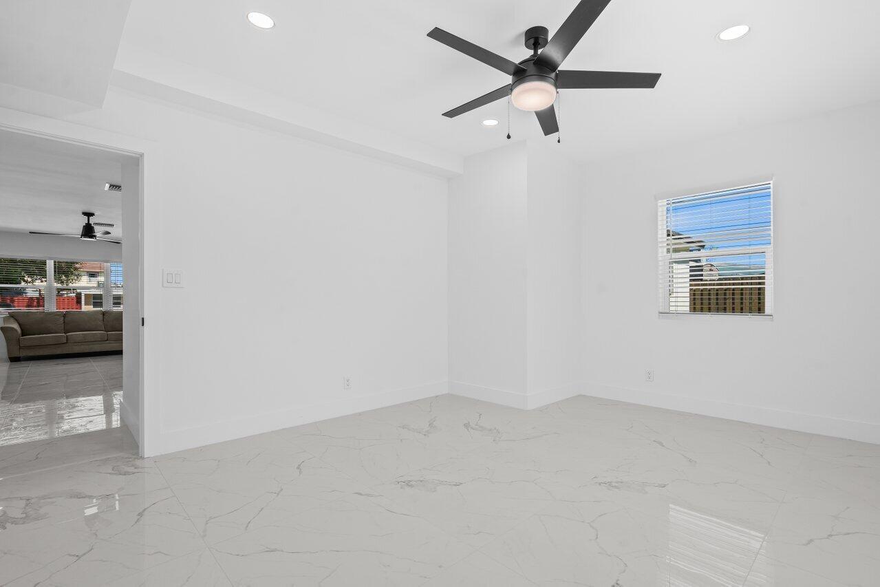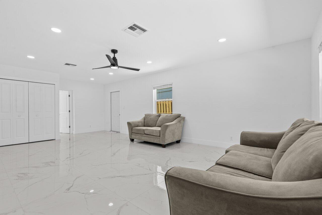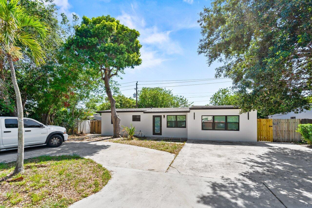 Beautifully updated and modern 4 bedroom, 2 bath single-family home located in a prime area just minutes from stunning beaches. Boasting modern finishes throughout, this home features a brand new roof (installed just one month ago), impact windows and doors, and a new AC system for year-round comfort. The sleek 32x32 ceramic tile flooring flows seamlessly through the entire home, enhancing its contemporary appeal. The chef's kitchen is a true showstopper with white shaker cabinets, quartz countertops, subway tile backsplash, brand new stainless steel appliances, and stylish black hardware. LED recessed lighting throughout provides a clean and bright