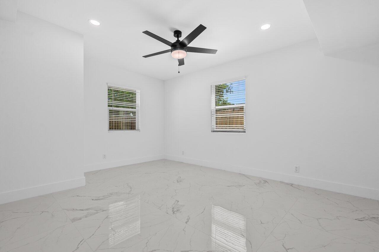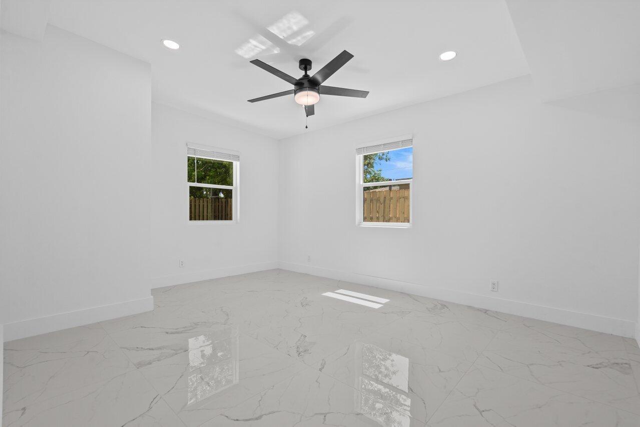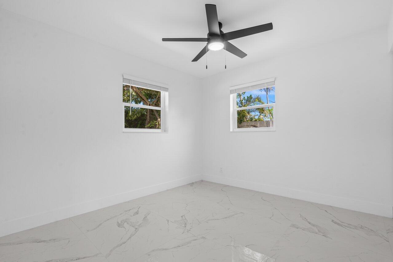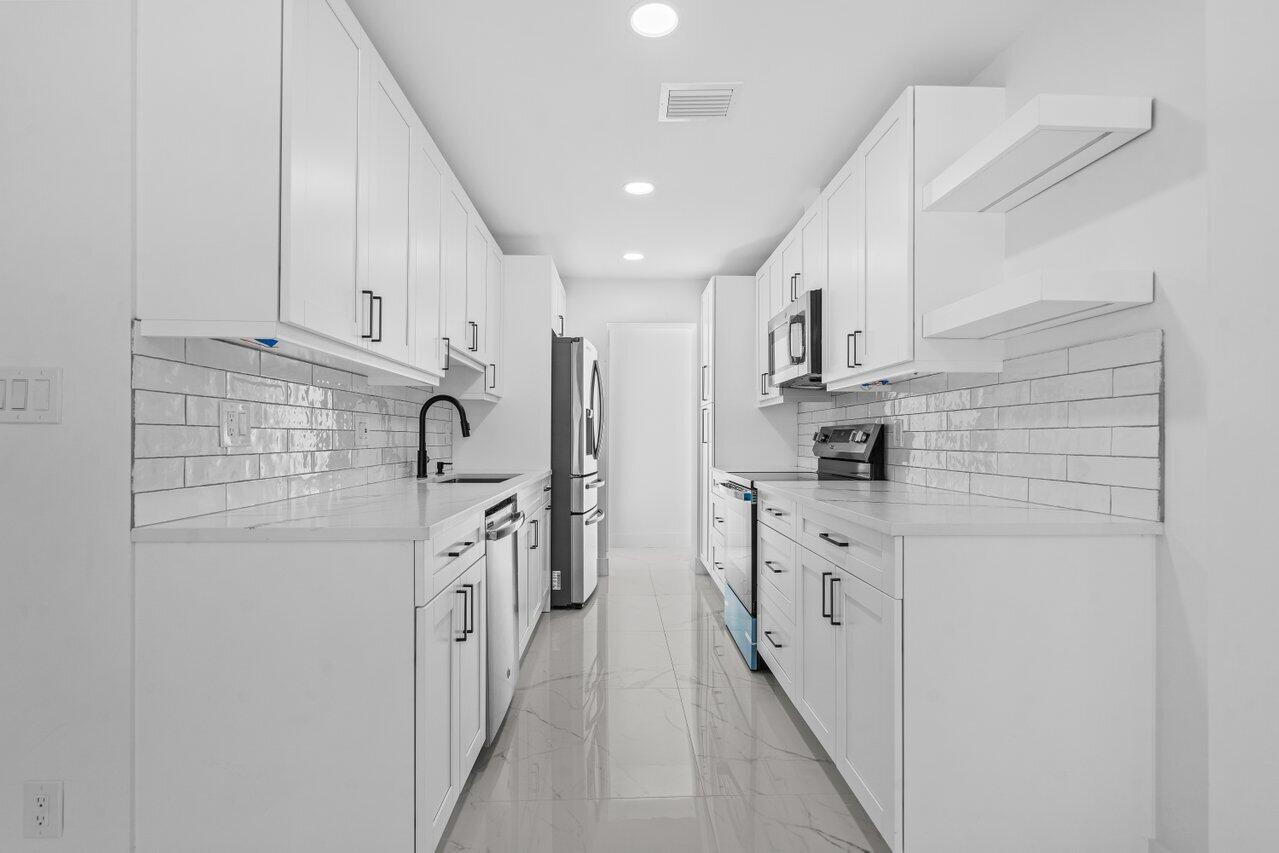 Beautifully updated and modern 4 bedroom, 2 bath single-family home located in a prime area just minutes from stunning beaches. Boasting modern finishes throughout, this home features a brand new roof (installed just one month ago), impact windows and doors, and a new AC system for year-round comfort. The sleek 32x32 ceramic tile flooring flows seamlessly through the entire home, enhancing its contemporary appeal. The chef's kitchen is a true showstopper with white shaker cabinets, quartz countertops, subway tile backsplash, brand new stainless steel appliances, and stylish black hardware. LED recessed lighting throughout provides a clean and bright