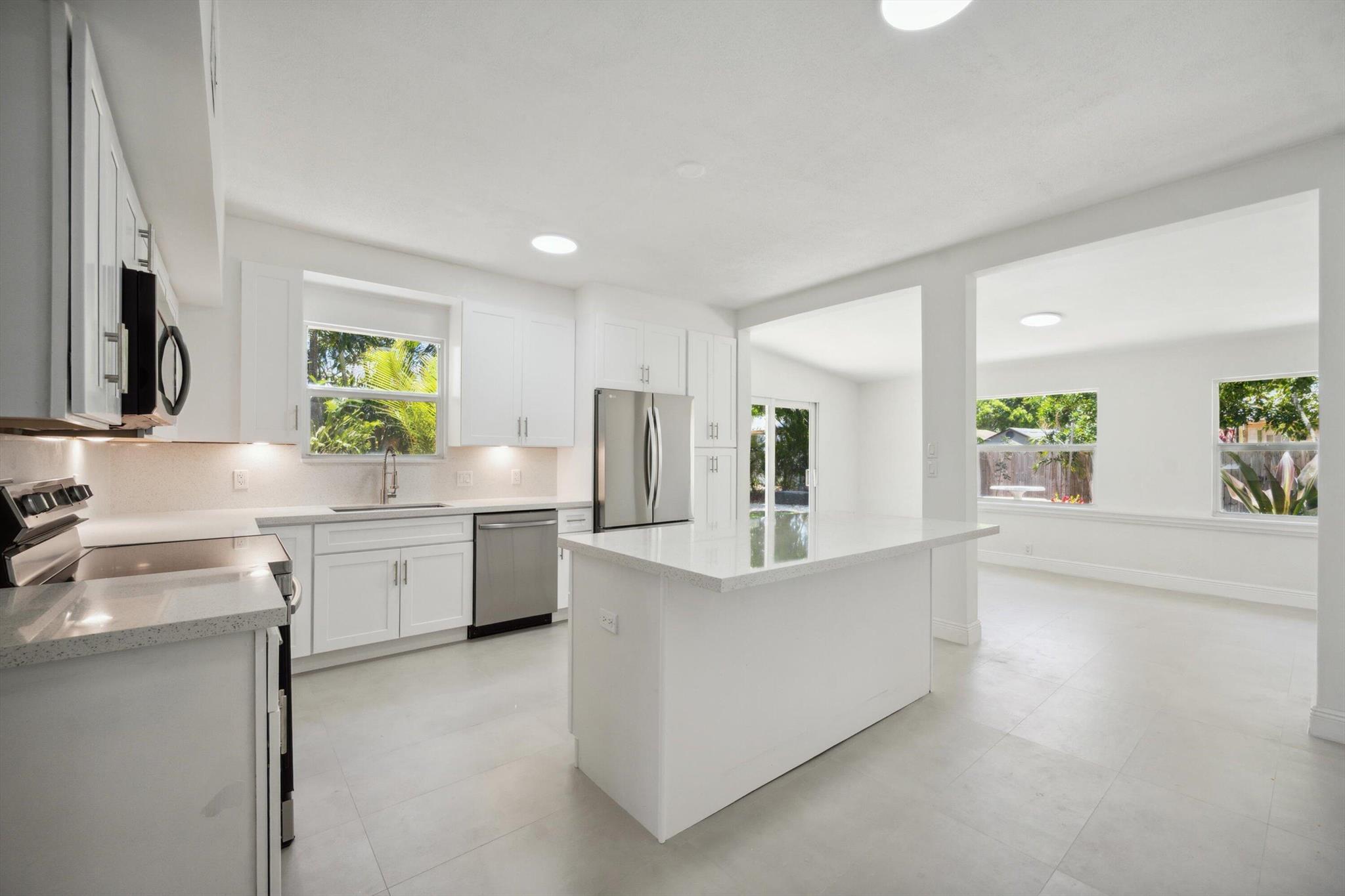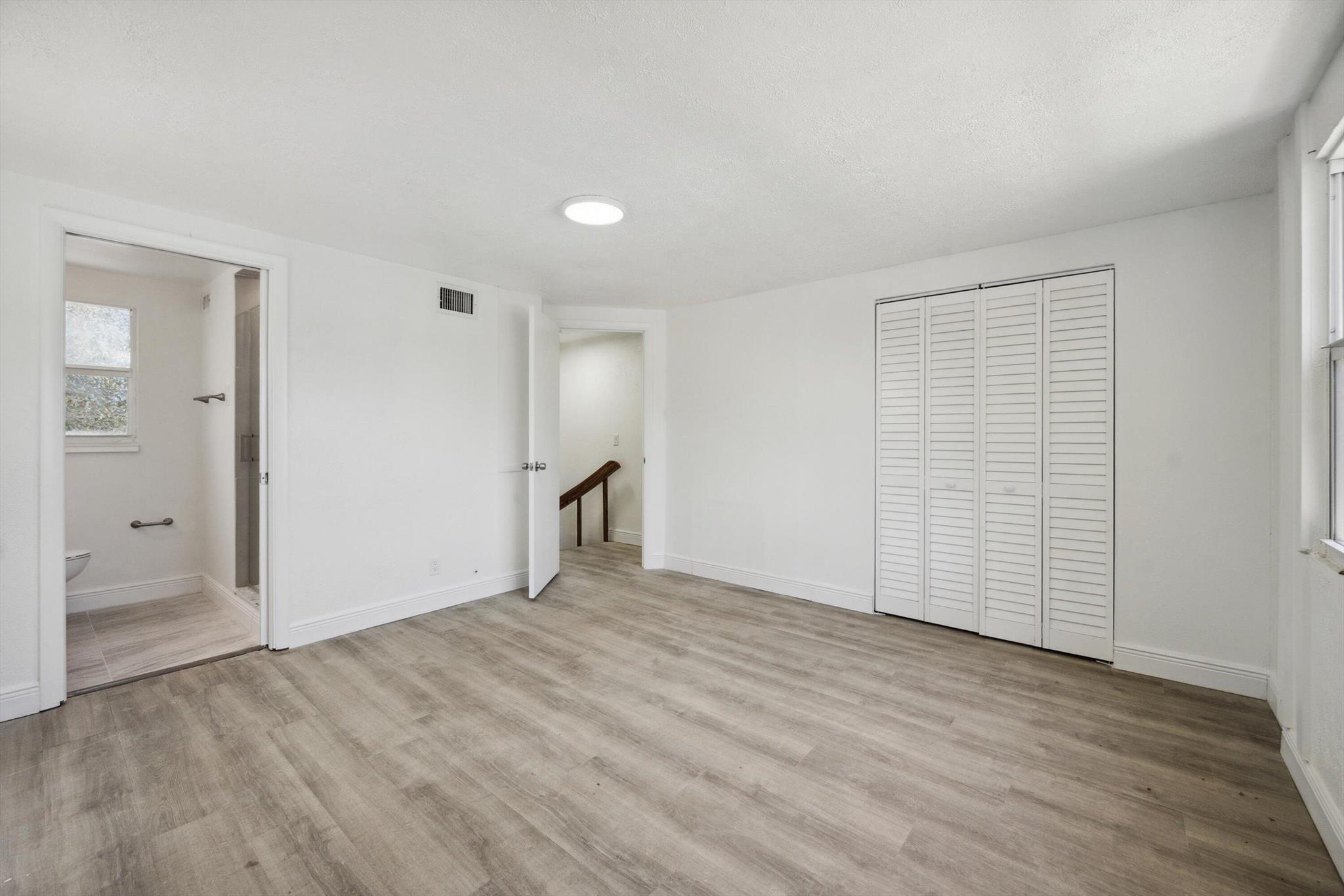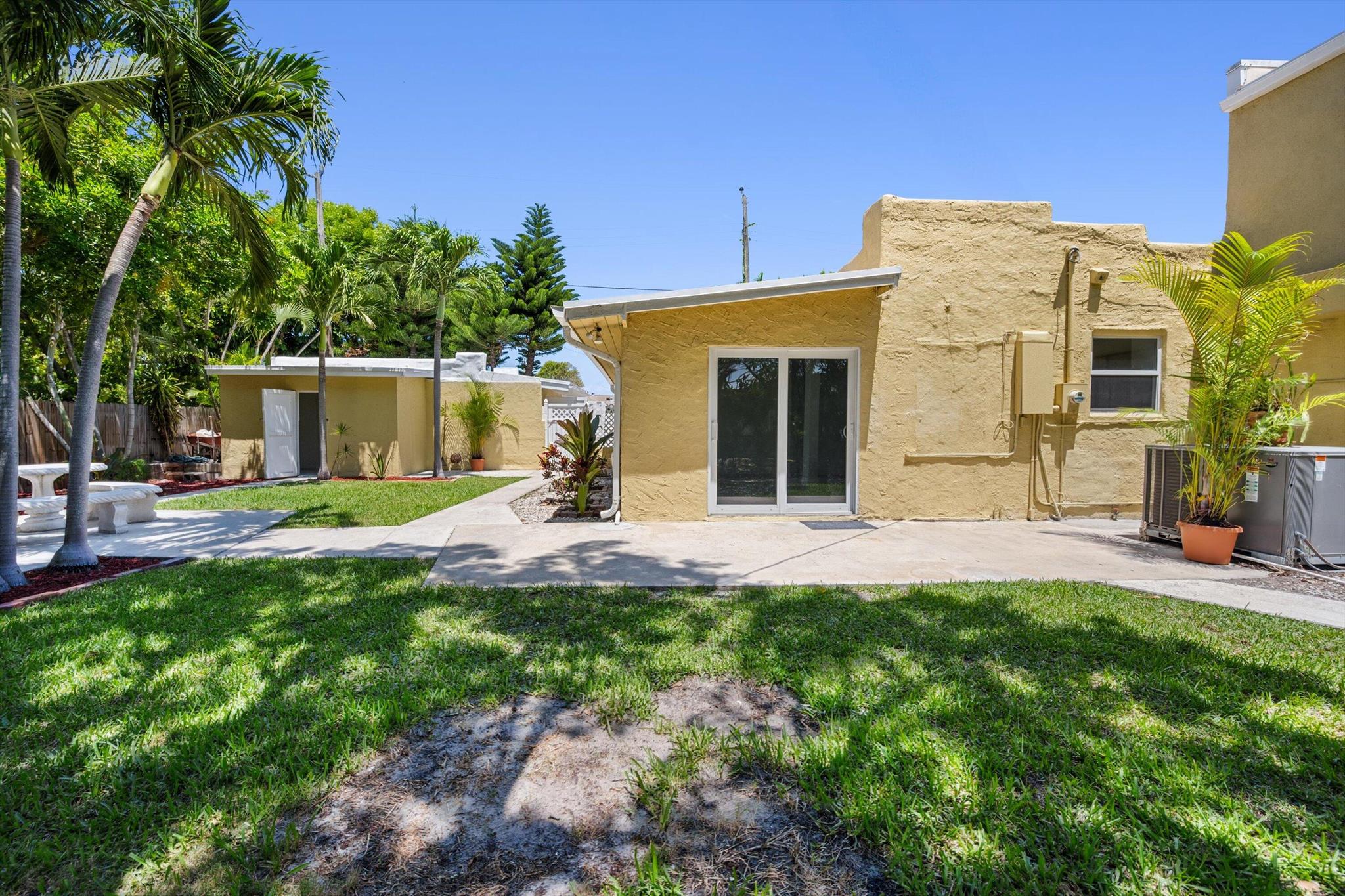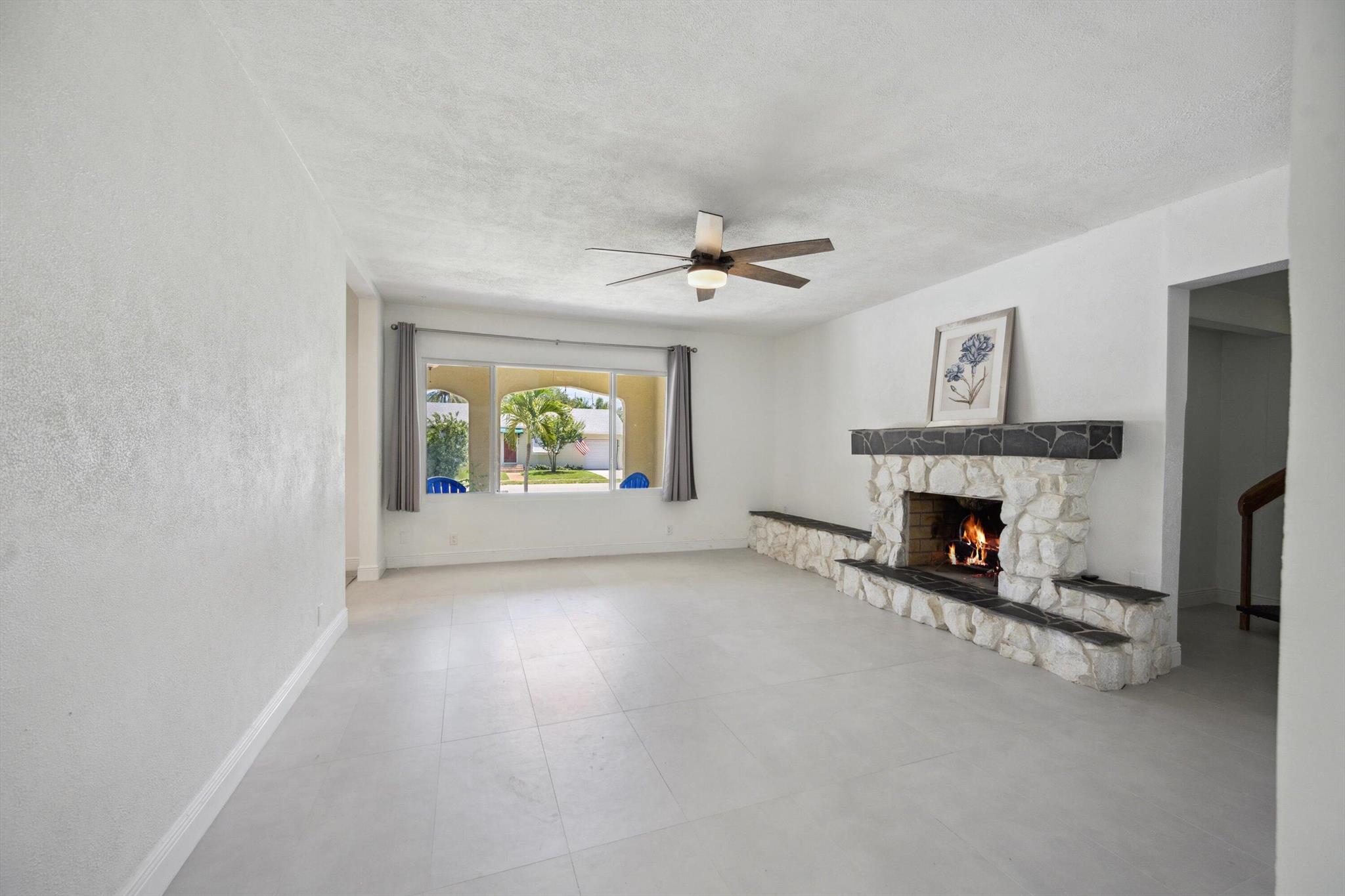 Meticulously remodeled to blend historic charm with modern luxury, this home features a quaint front porch, hurricane impact windows, a unique spiral staircase, fireplace, updated bathrooms and flooring, a renovated kitchen with stainless steel appliances. Each bedroom feels like a master suite with its own bath. The large master suite's bath includes a double sink vanity, and a separate tub and shower.Updated bathroom features a modern, clean design with white shaker-style vanity cabinetry, elegant marble countertops, and spacious walk-in glass showers.A private exotic and relaxing fenced backyard with a large courtyard, mature trees and a fire pit area. A detached garage with electricity, offering potential for a guest suite, creative studio, or home office.