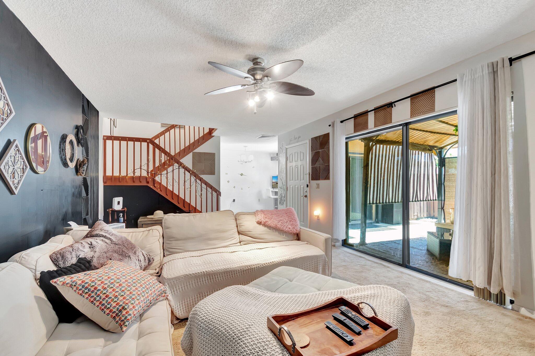 Tucked away in Sandalwood Lakes South, this charming 2BR/2.5BA townhome offers comfort, style, and privacy. The spacious living area flows into a clean, open kitchen with a stainless-steel refrigerator. Step outside to your private fenced patio with a shaded pergola--ideal for relaxing or entertaining. Upstairs, two master suites feature balconies and en-suite baths, enhanced by a Rain Soft water treatment system. Enjoy resort-style amenities including 3 pools, playgrounds, sports courts, and walking trails. Just minutes from I-95, shopping, and downtown West Palm Beach--this home is the perfect blend of tranquility and convenience.