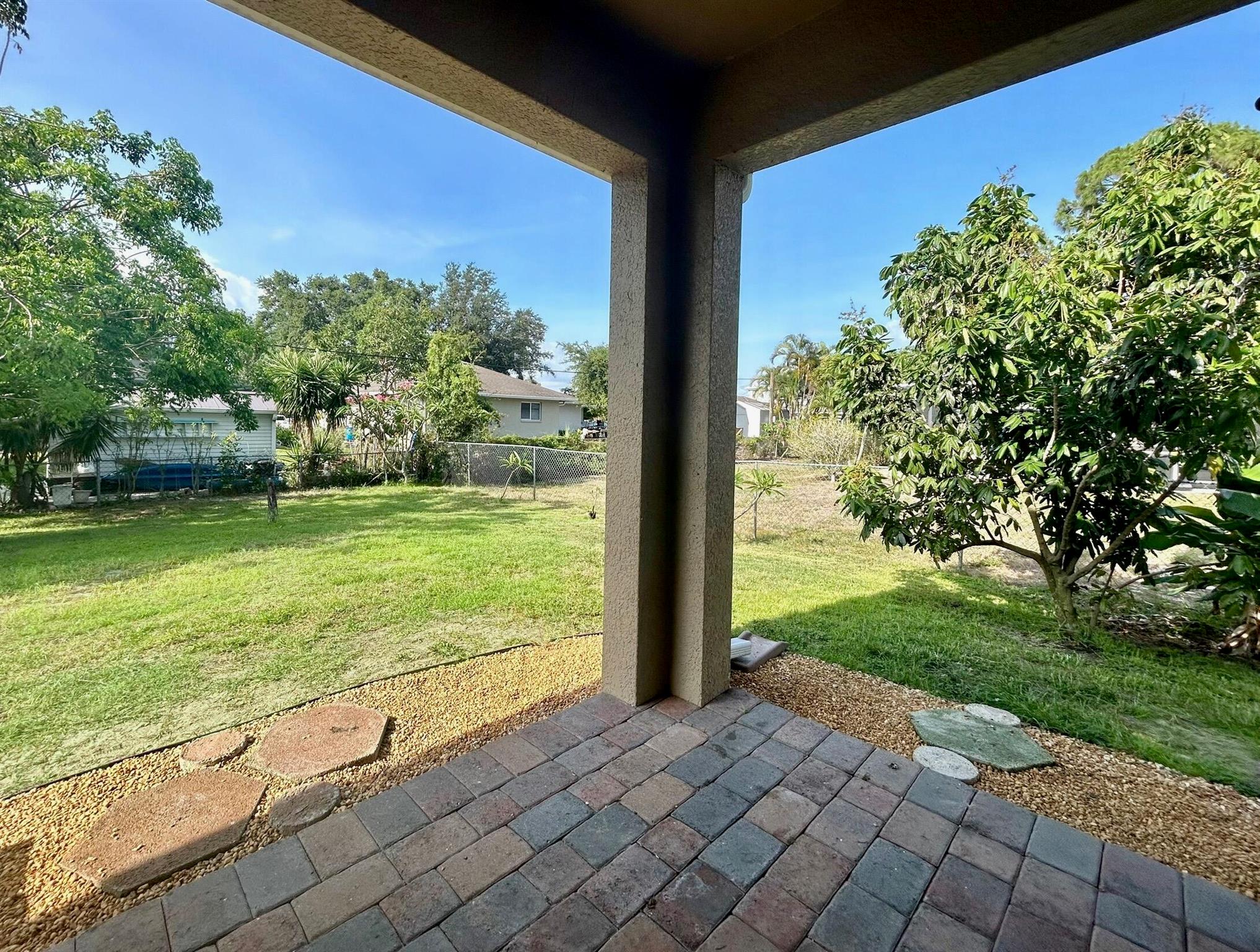 Beautiful single family home located in San Carlos Park! NO HOA OR CDD FEES!!! The popular CALI PLAN boasts 1828 square feet of living area. Featuring a large great room with living and dining adjacent to the beautiful island kitchen with a big corner pantry. Split bedroom plan with the owner's suite enjoying a view of the back yard and a spacious walk in closet. Lots of space in a floor plan with 2 linen closets, a separate laundry room, mechanical room and covered patio. New roof in 2023, Impact windows and storm shutters, generator hookup, security system that includes smart home. Yard also has multiple mature fruit trees! Community pool and playground within walking distance. 30 mins to the beautiful beaches in the Gulf and close to multiple Spring Training Facilities! Welcome Hom