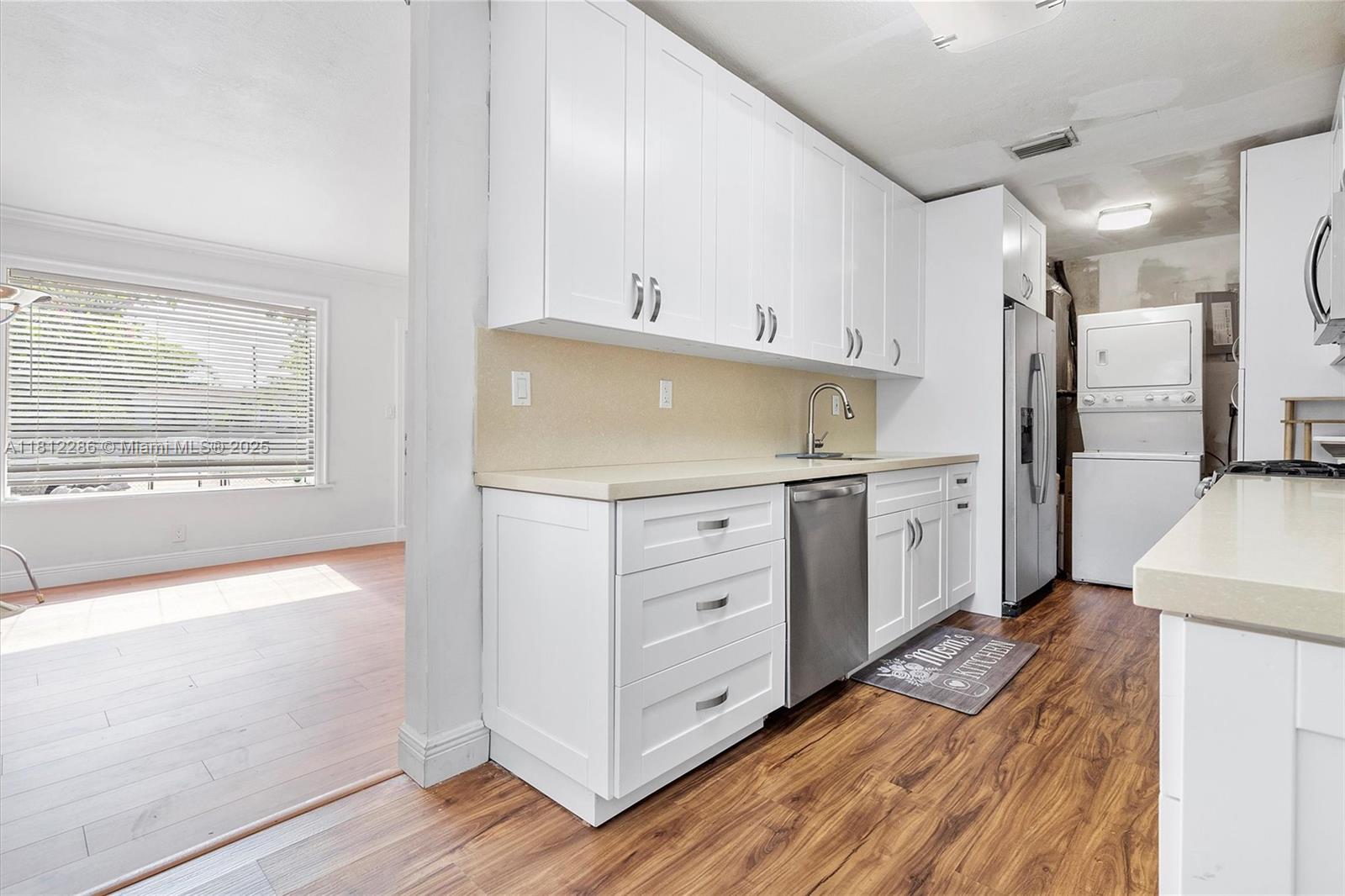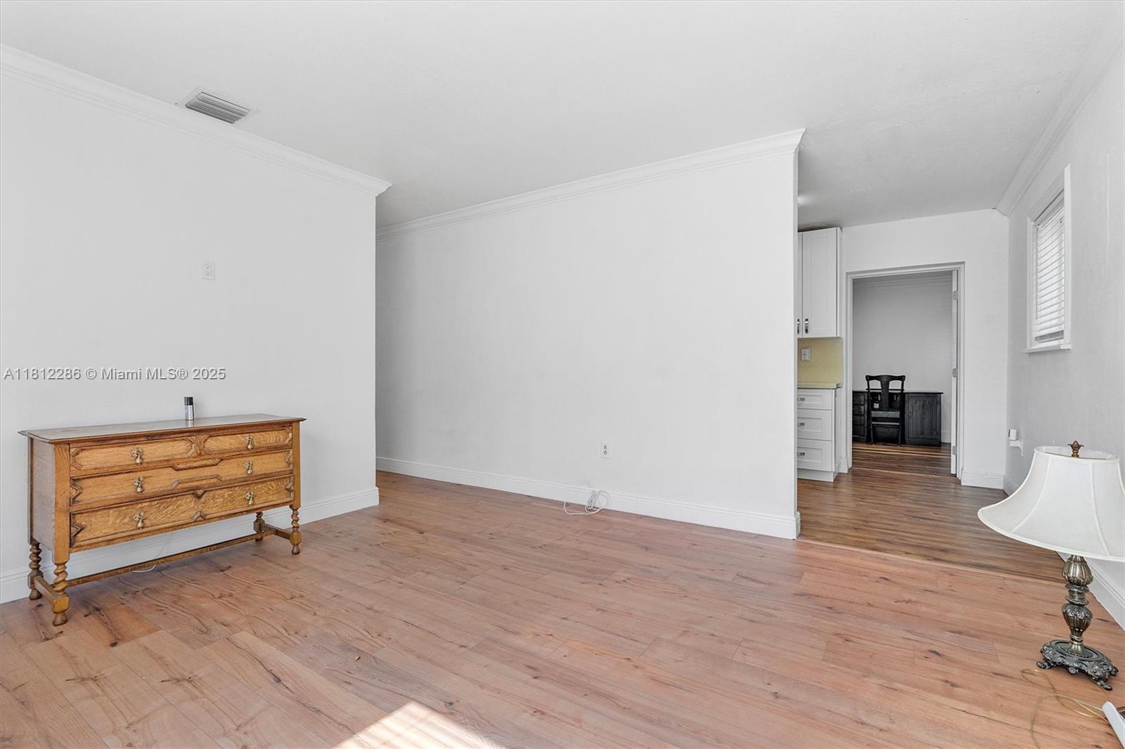 SINGLE FAMILY HOME IN HOLLYWOOD - Recently updated kitchen with gas stove, high-end countertops, and cabinets. Renovated bathroom. Features include laminate wood flooring throughout, crown molding, and impact windows. No popcorn ceiling! The spacious layout features both a family room and a living room. Fully fenced yard provides privacy and includes a large workshop. Central location with convenient access to local amenities and major roads. Functional updates throughout. Located in an established Hollywood neighborhood with easy commute options. Ready for occupancy. Contact for viewing.