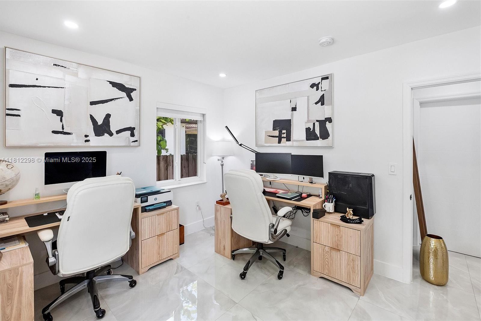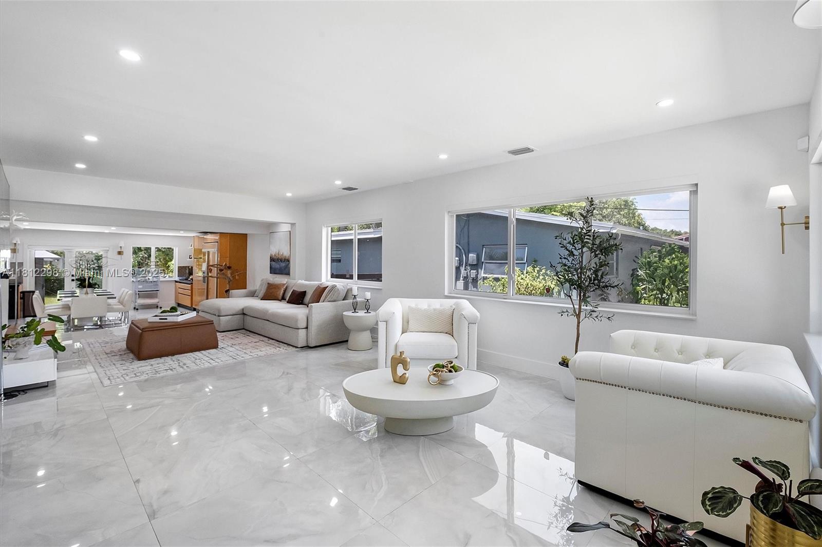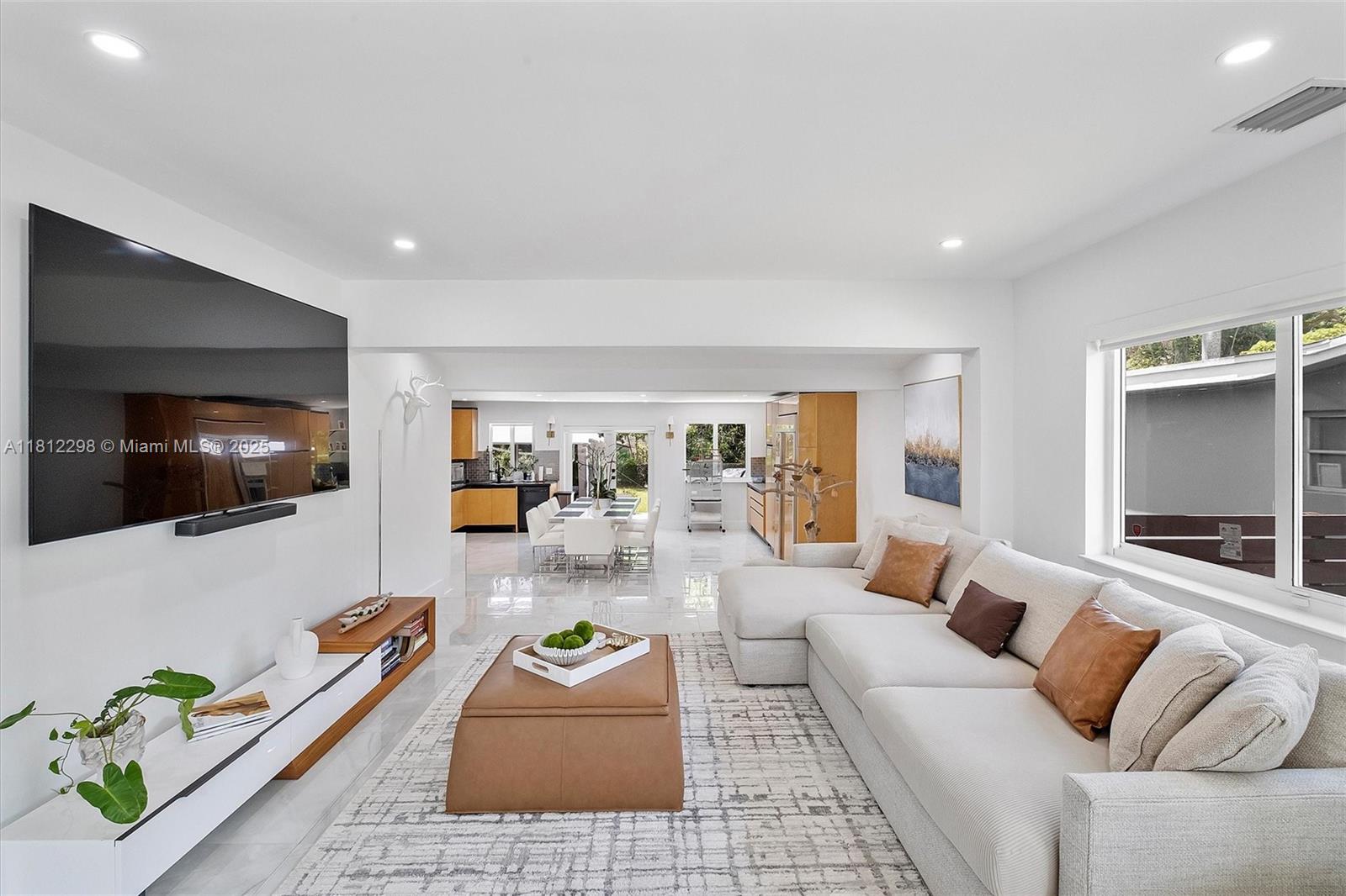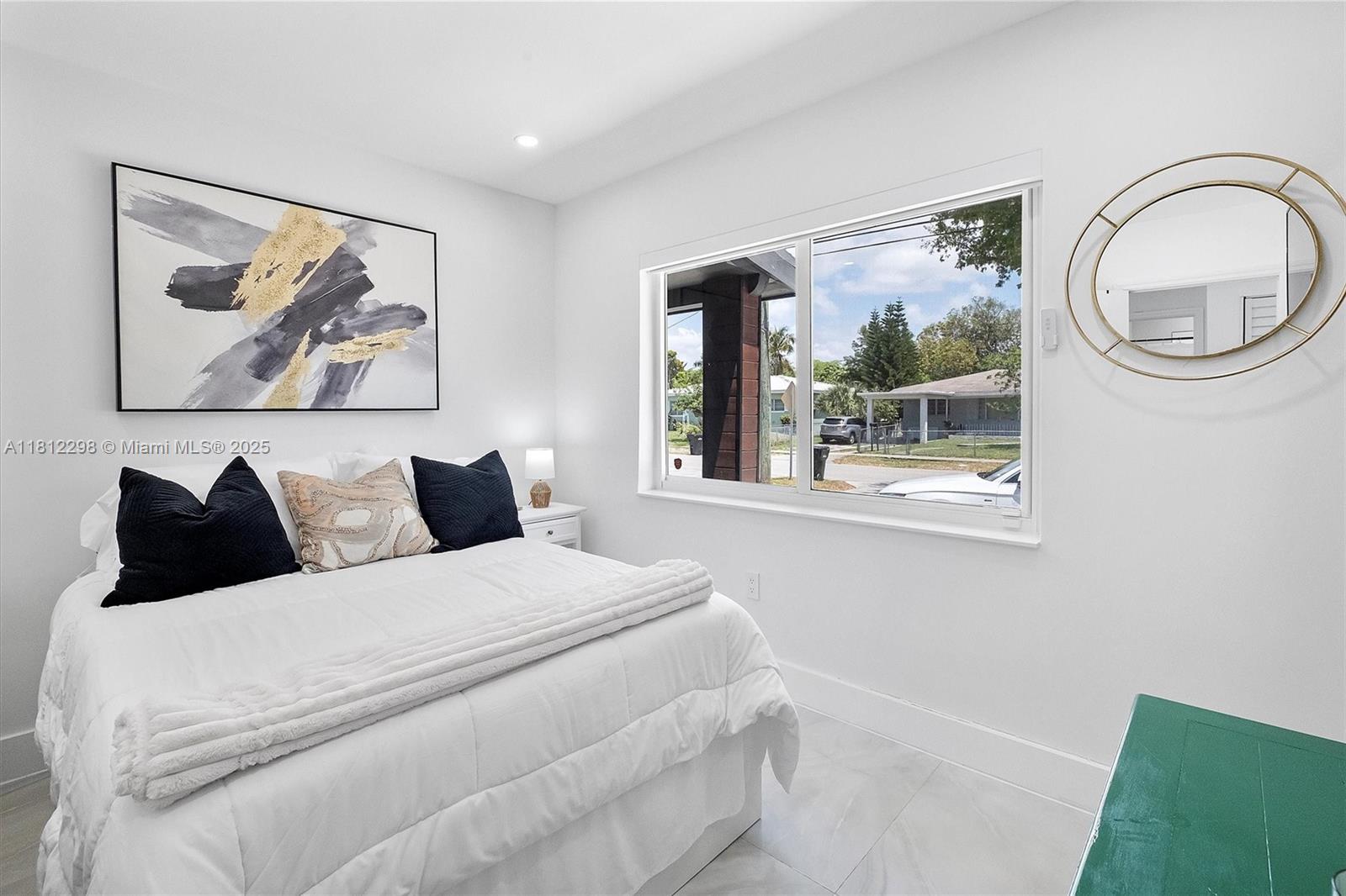 Stunning modern home in North Miami w/3 bedrooms, 2 bathrooms plus office space or extra room. Fully remodeled, with no expense spared! Features a unique modern design, open floor-plan, high-end finishes, remote controlled electric blinds, gorgeous chef’s kitchen with custom cabinetry & top of line stainless steel appliances, gorgeous 30" white porcelain tiled floors throughout, new hurricane impact windows & doors, new modern driveway with artificial grass, beautiful custom cedar wrap around the house, keyless entry, security system, new central a/c &, a huge backyard designed to entertain! Perfect for a new pool! Roof was replaced in 2019. Quiet street in great neighborhood, minutes to shopping plazas, schools, & the beach. You have to see it!