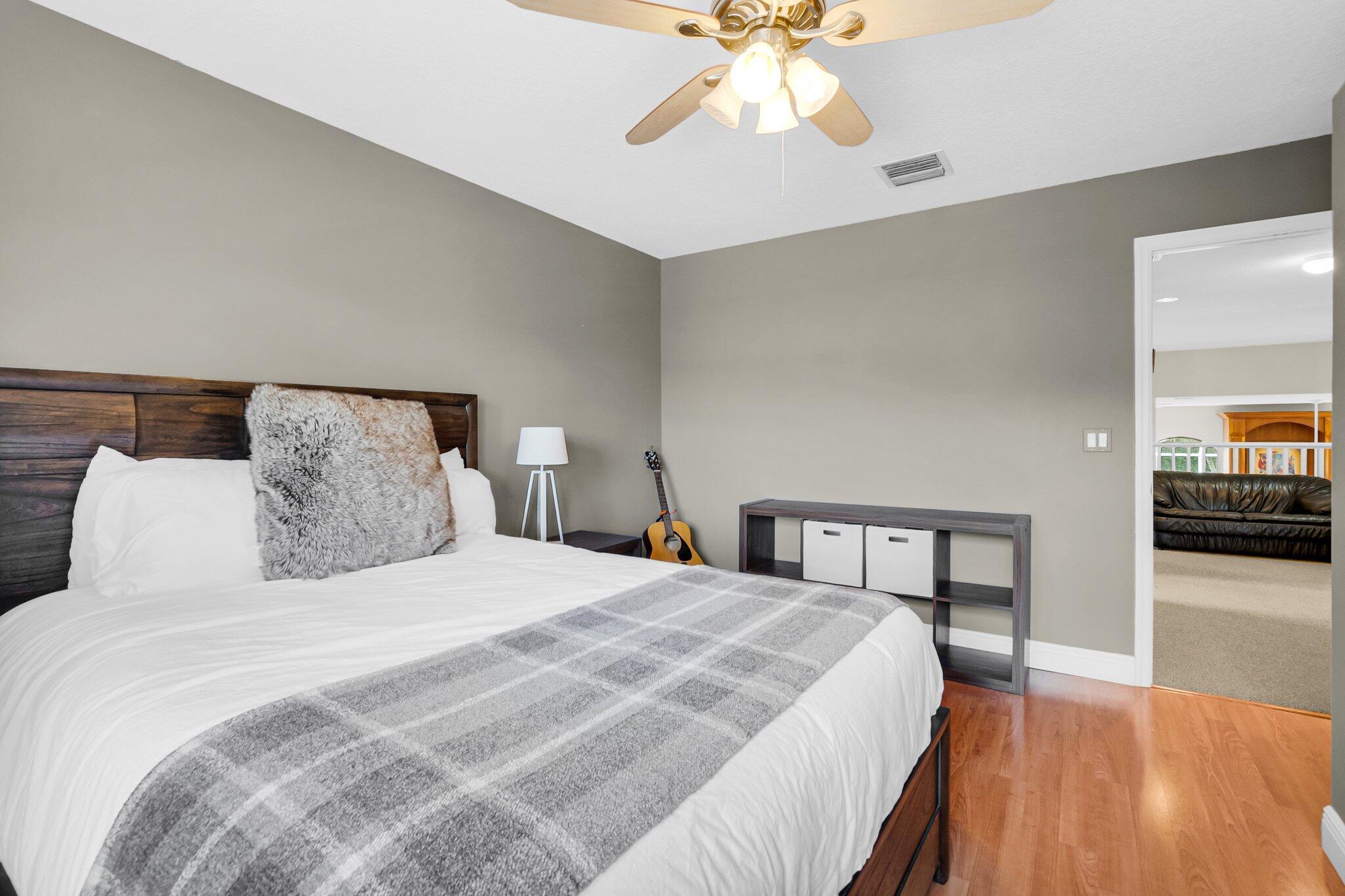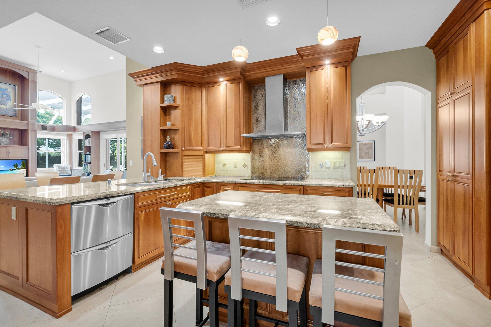 PRICED TO SELL! Amazing 5 bedroom with loft, 3 full bathrooms, 3 car garage home with pool and gorgeous lake views in most desirable Boca Falls. Expanded screened pool area features an outdoor bar with a grill and seating area. Open plan with 20'' tile floors. Beautifully appointed kitchen with double dishwashers with ''dish drawers'', double oven, warming drawer, walk in pantry... Large downstairs primary suite, plus guest suite, currently used as office & cabana bath. AC 2024. Accordion shutters, impact front door and garage doors. Clubhouse includes: fitness room, resort-style pool, pickle ball courts, tennis courts, playground & full basketball court. Hotwire fiber-optic TV and high-speed Internet included in HOA fees.South County Regional Park and Osprey Point Golf Course nearby.