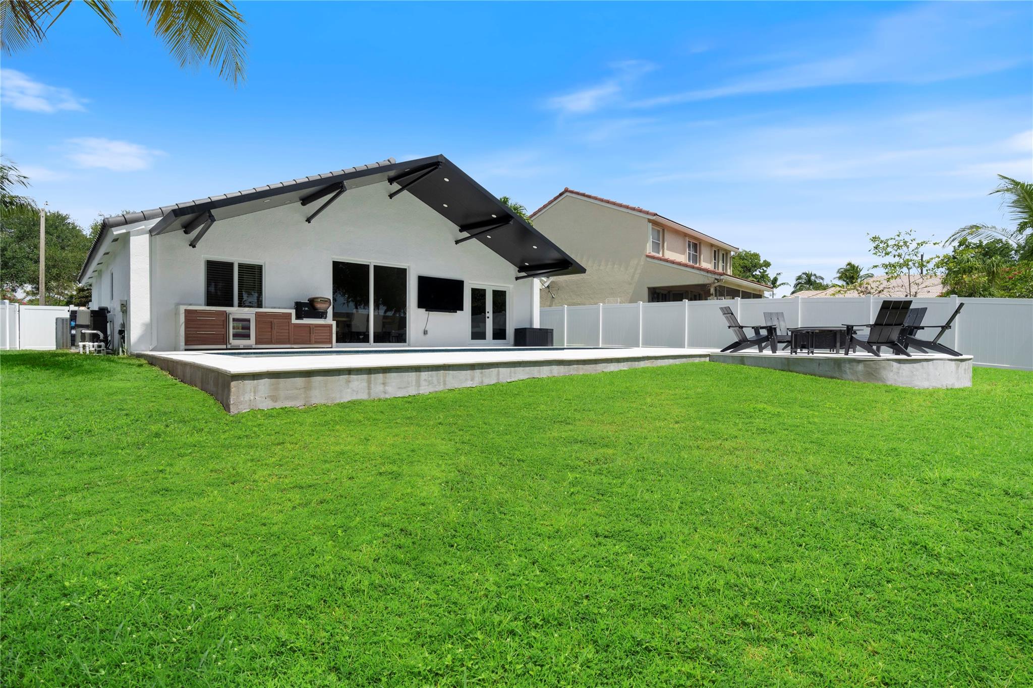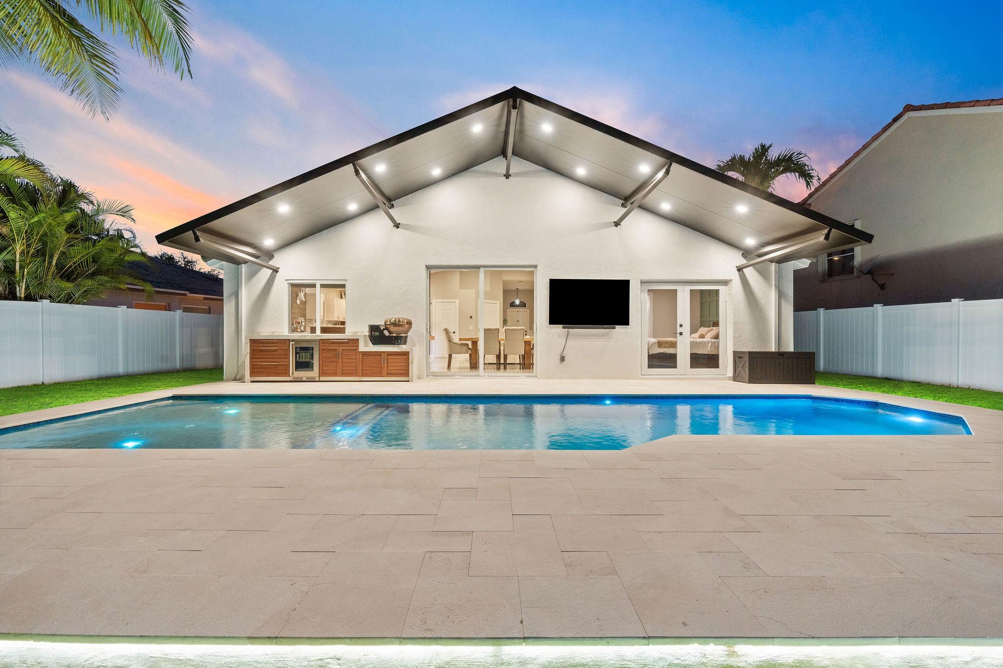 Discover one of the nicest turnkey homes in Stirling Palm Estates, fully renovated and move-in ready. This 3 bed 2 bath gem sits on one of the largest and most private lots with no through traffic. Upgrades include a new roof, impact windows and doors, a remodeled pool and deck with fire pit, outdoor kitchen, Tesla PowerShare home battery back-up, patio awning, and exterior lighting. Inside, enjoy custom wainscoting, LED lighting, an open-concept layout, updated appliances, and a built-in bar perfect for entertaining. The home also features a/c garage, Tesla charger, and modern finishes throughout. Located in a quiet, family-friendly community of just 70 homes with top-rated schools, scenic parks, and nearby police and fire services ideal for those seeking comfort, and peace of mind.