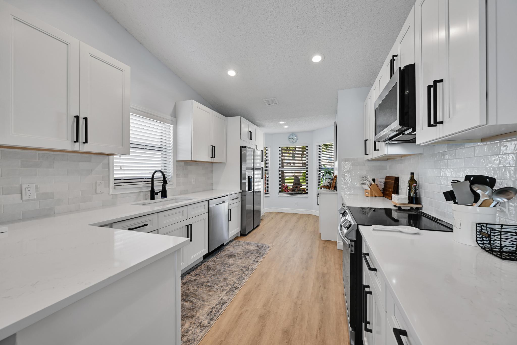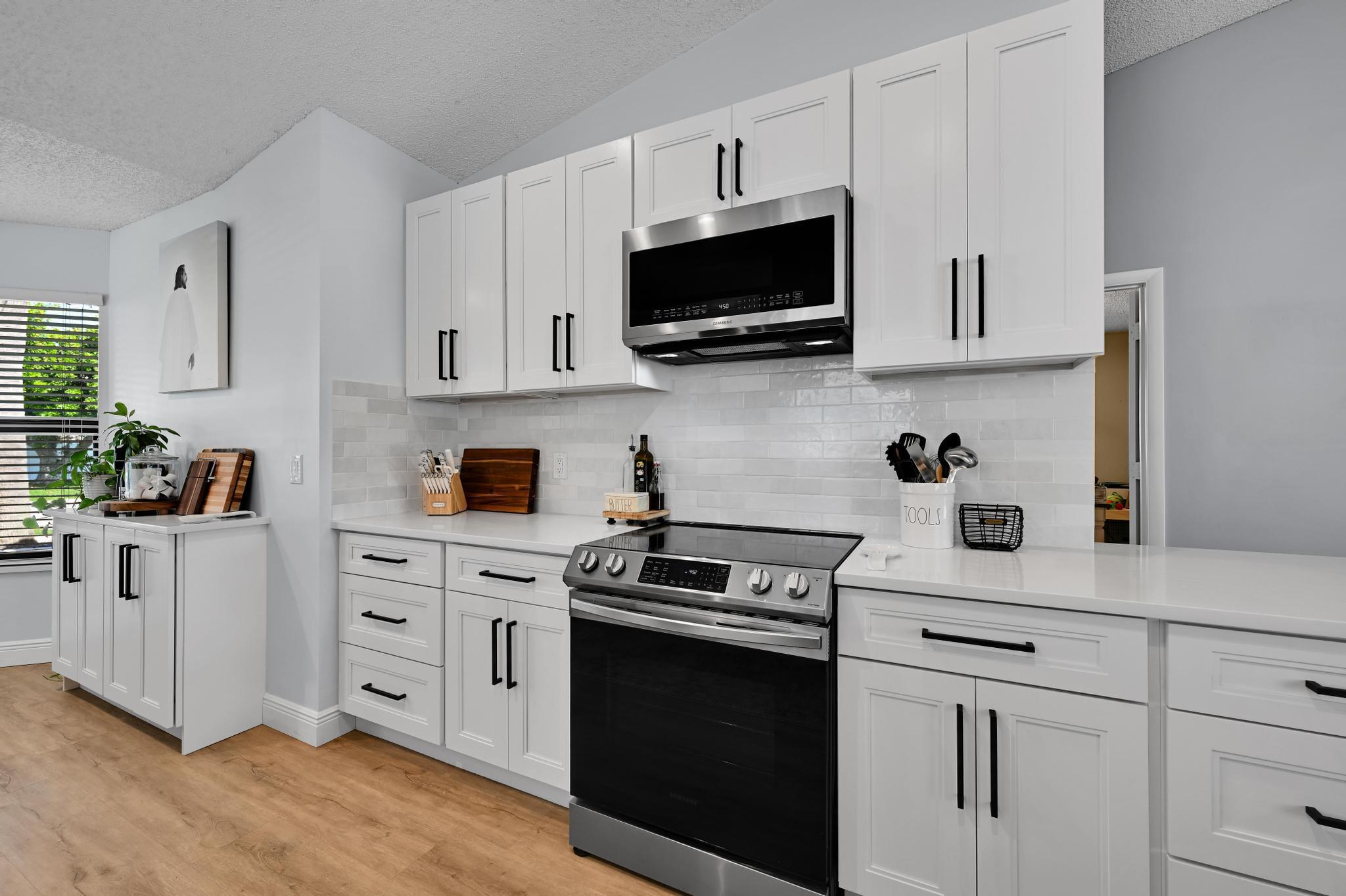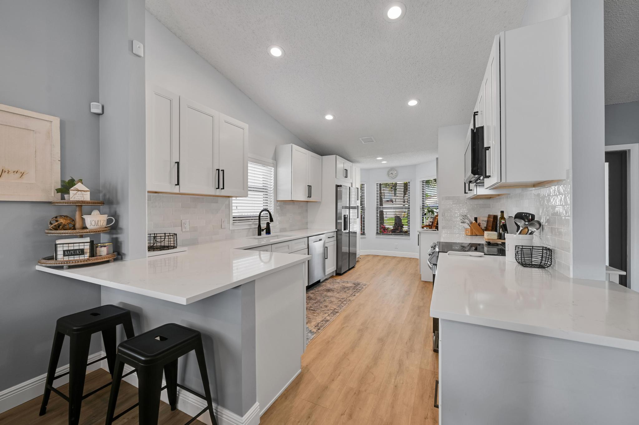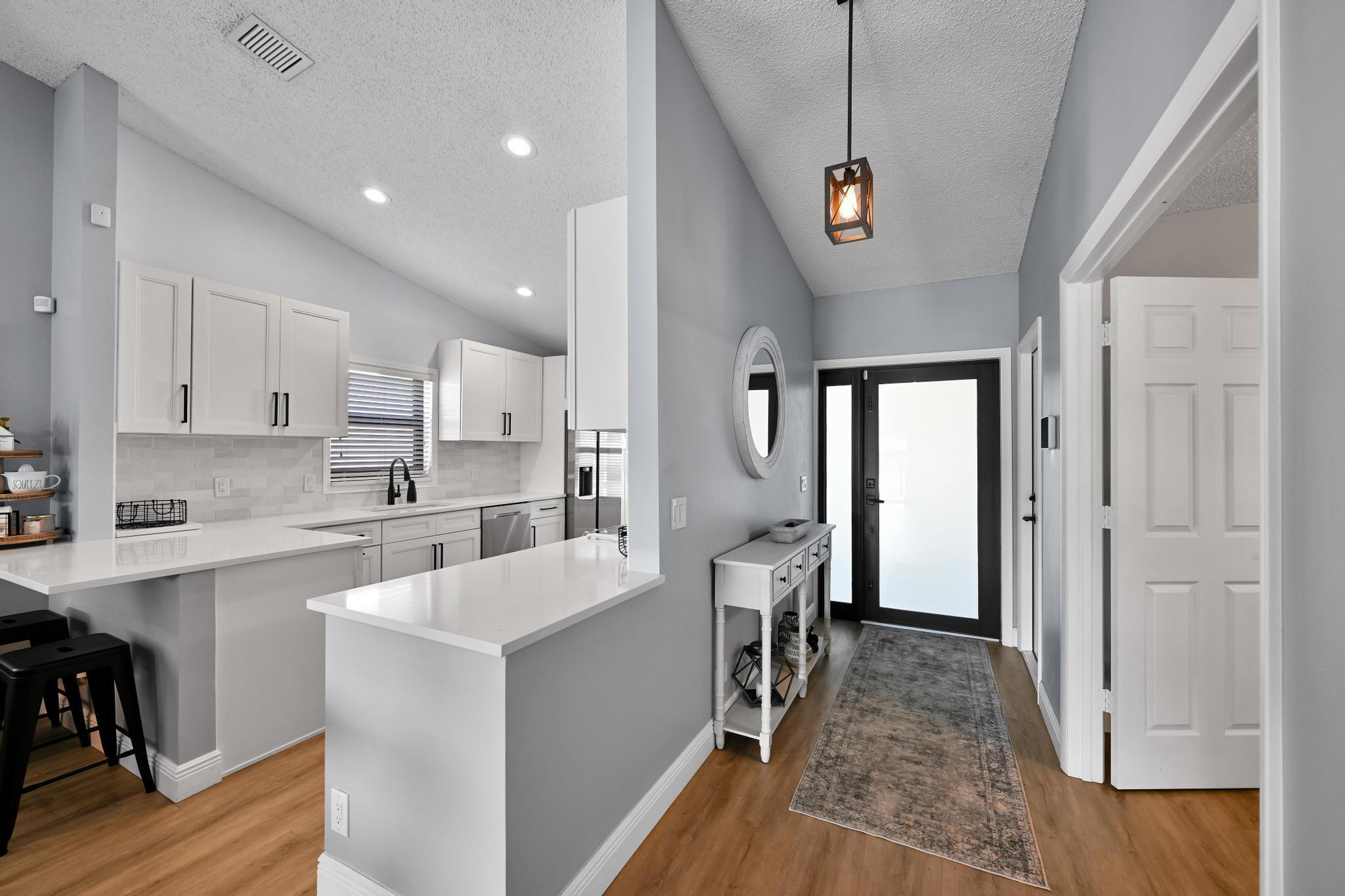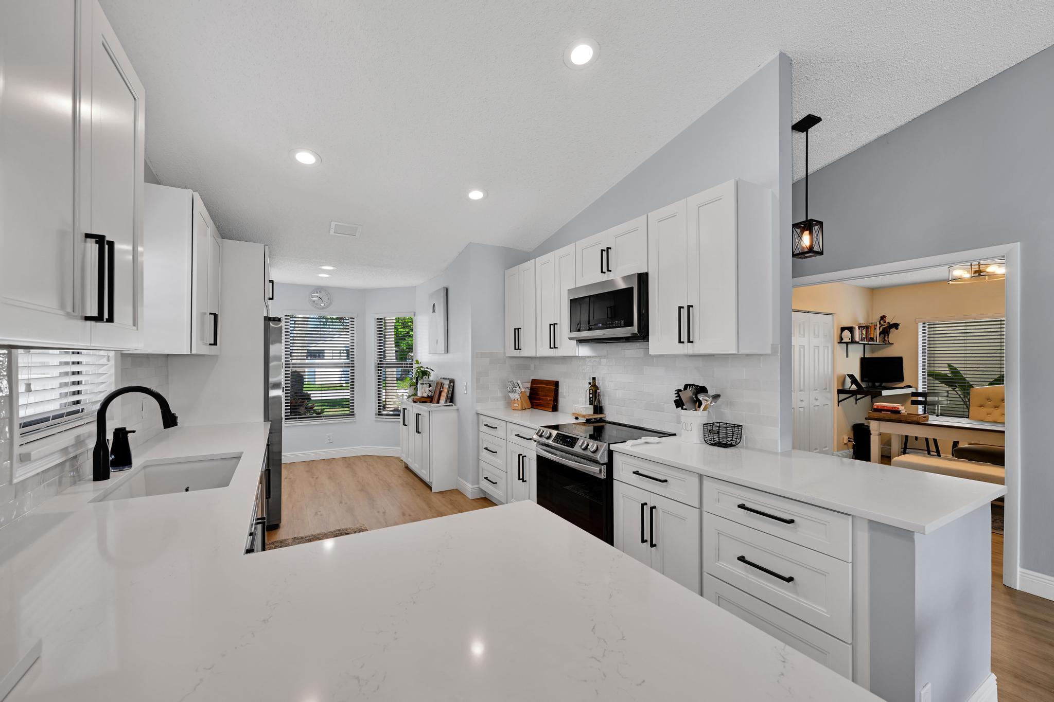 Welcome to your dream home in Boca Raton --no age restrictions, no mandatory membership fees! Enjoy stunning lake views and sunsets from this fully renovated 3-bed, 2-bath gem. Features include marble mosaic and LVT flooring, a sleek white kitchen with quartz counters, soft-close cabinets, and SS appliances. Vaulted ceilings add elegance, while the split floor plan ensures privacy. The primary suite boasts a luxe vanity and modern shower. Complete with impact windows/doors, newer AC (2020), water heater (2020), and more updates through 2023. Top-rated schools. Paradise awaits--book your private showing!