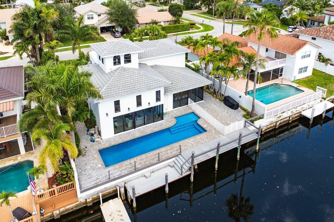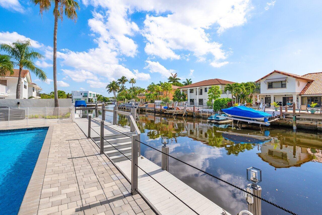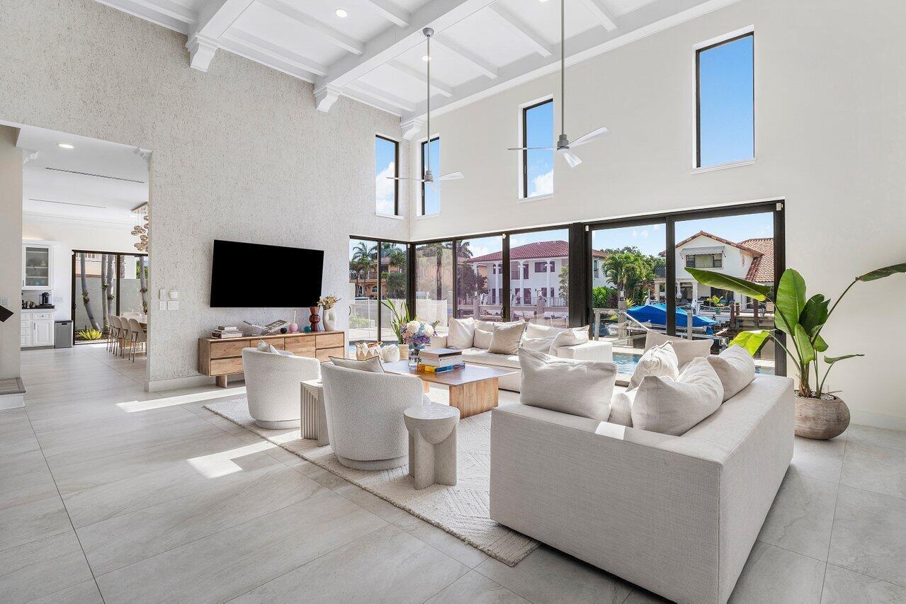 Enjoy Luxury Waterfront living in this Mediterranean Estate home in East Boca Raton. This extraordinary fully renovated 4/4 home features a new roof & impact windows & doors. Walk thru the lushly landscaped private courtyard and as you enter the home you will immediately notice the natural light streaming in, the 2 story living room ceiling & the expansive water views. This home is made for entertaining with a fantastic new wet bar complete w/a built in wine cooler & ice maker & the all white eat in kitchen w/ gorgeous quartz counter tops and bar & new highly upgraded Monogram kitchen appliances. As you step out to the oversized pool & patio you can imagine using your summer kitchen under the pergola & docking your boat at your own private 70 ft. dock.