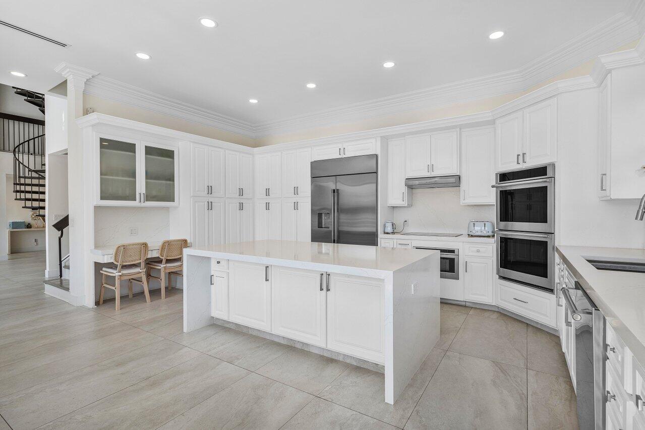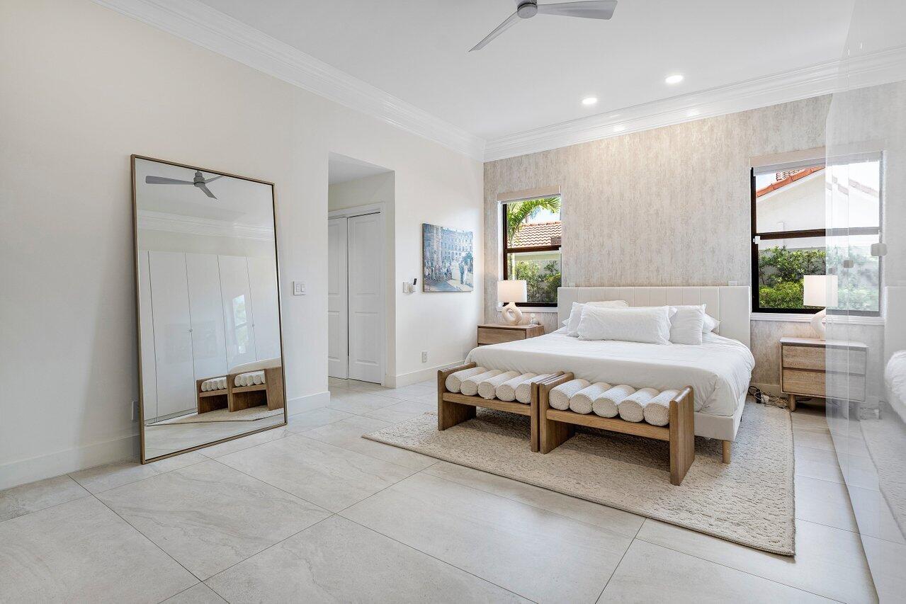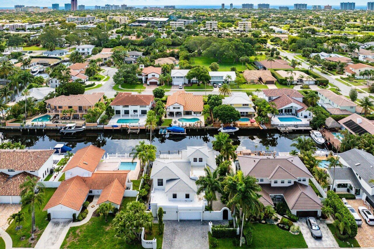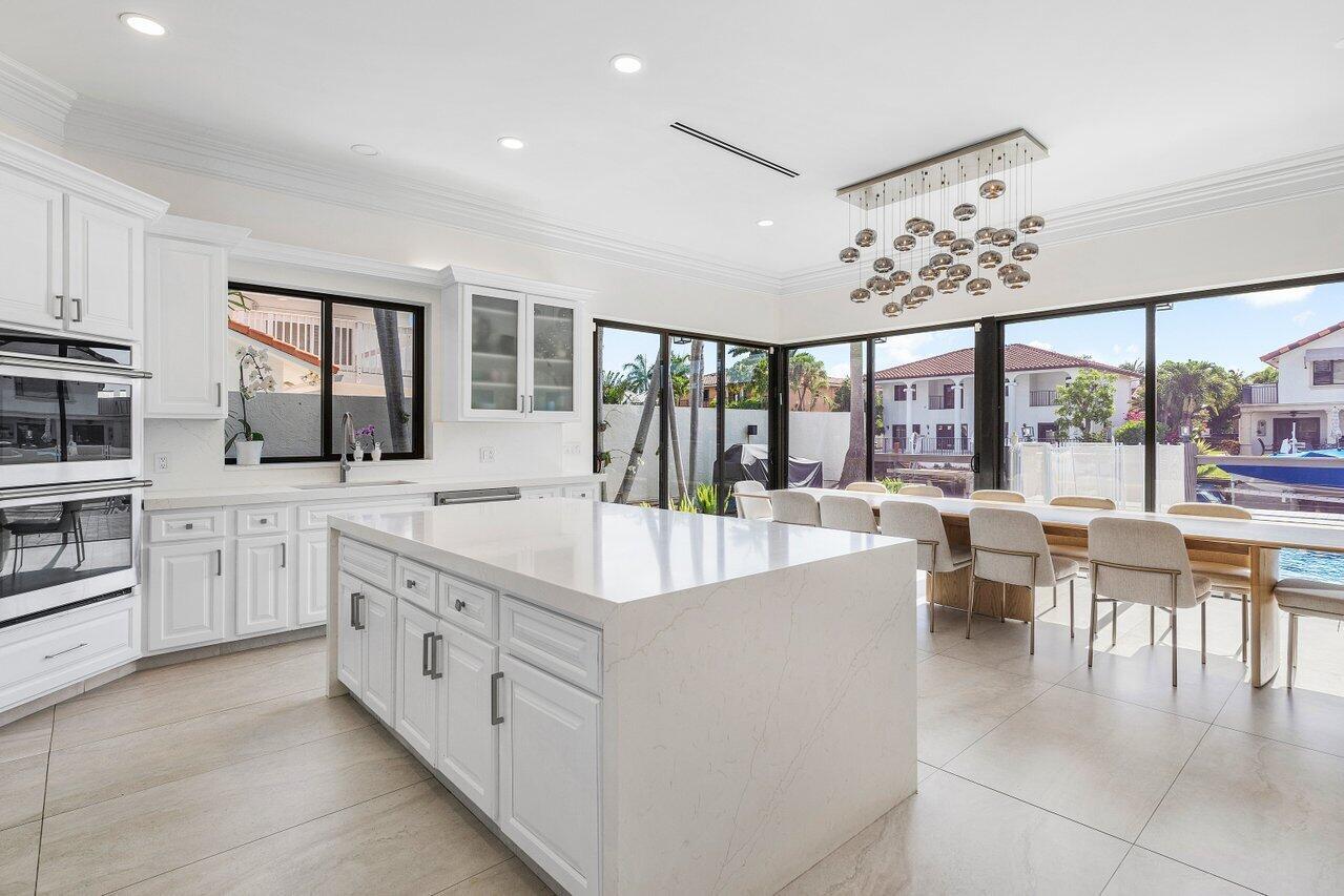 Enjoy Luxury Waterfront living in this Mediterranean Estate home in East Boca Raton. This extraordinary fully renovated 4/4 home features a new roof & impact windows & doors. Walk thru the lushly landscaped private courtyard and as you enter the home you will immediately notice the natural light streaming in, the 2 story living room ceiling & the expansive water views. This home is made for entertaining with a fantastic new wet bar complete w/a built in wine cooler & ice maker & the all white eat in kitchen w/ gorgeous quartz counter tops and bar & new highly upgraded Monogram kitchen appliances. As you step out to the oversized pool & patio you can imagine using your summer kitchen under the pergola & docking your boat at your own private 70 ft. dock.