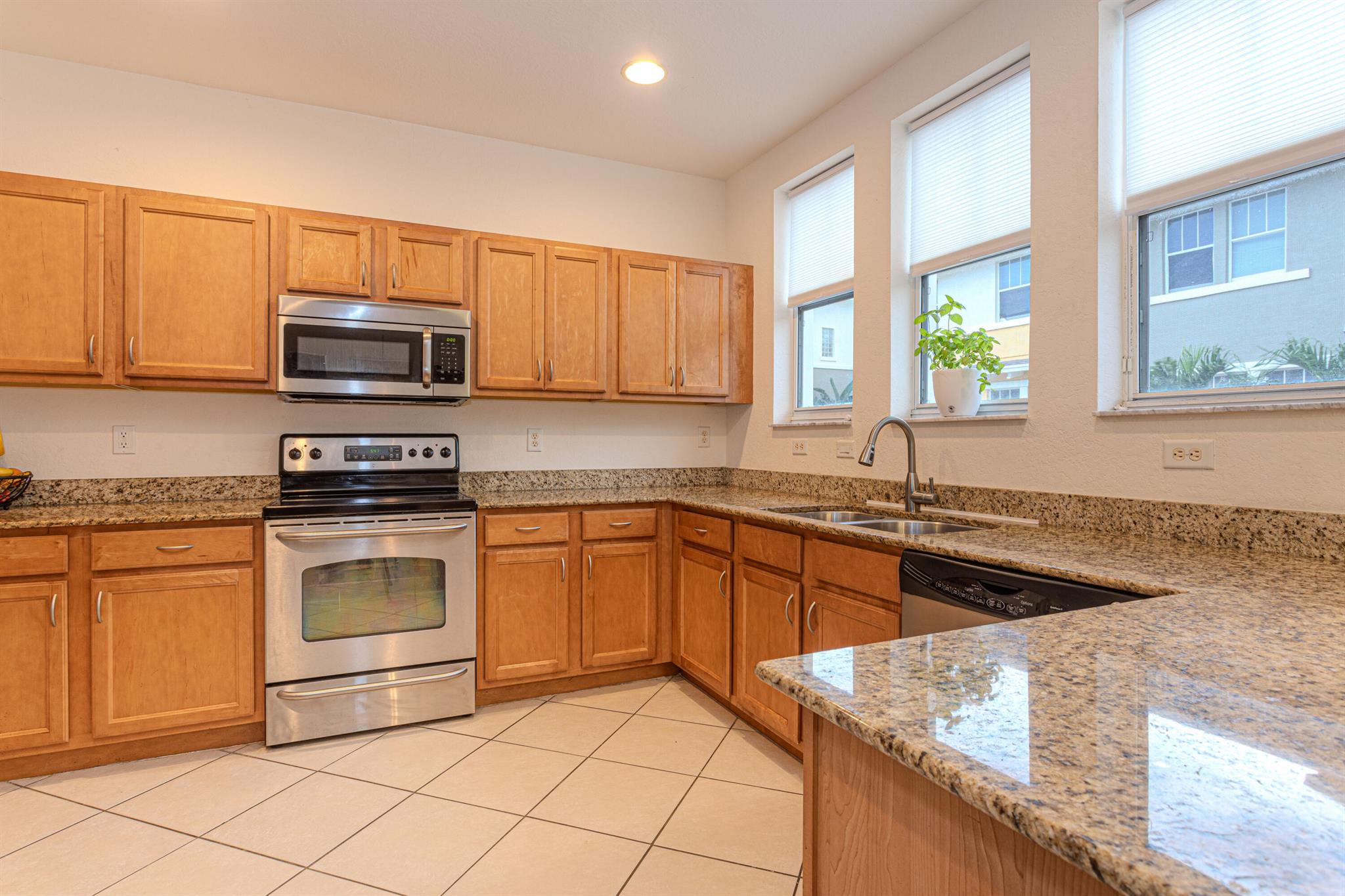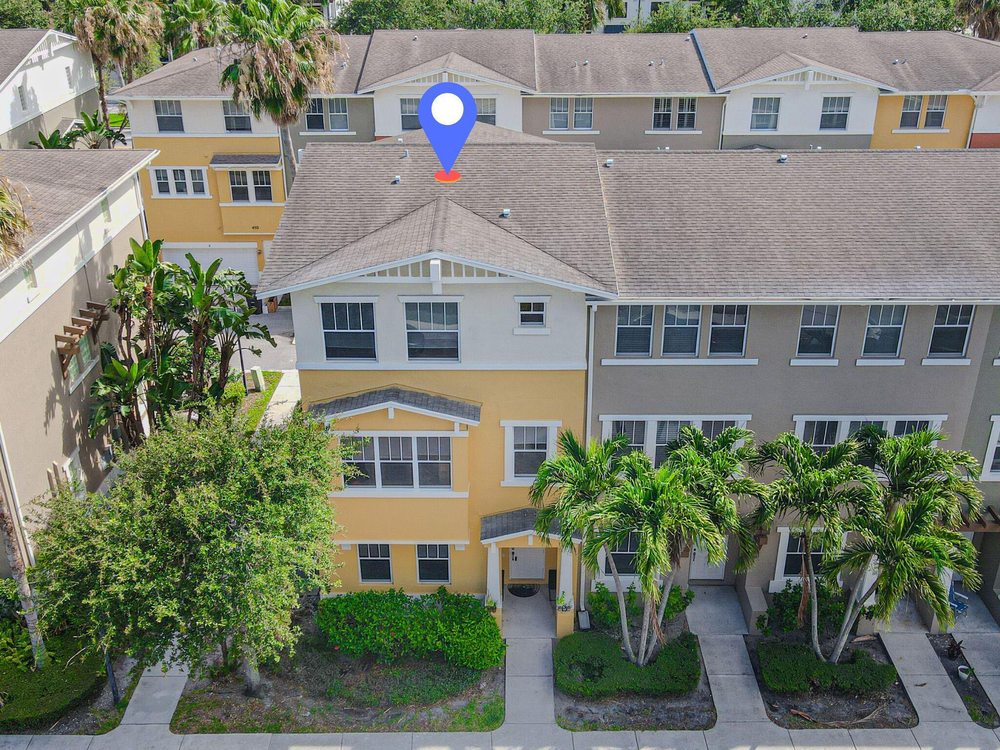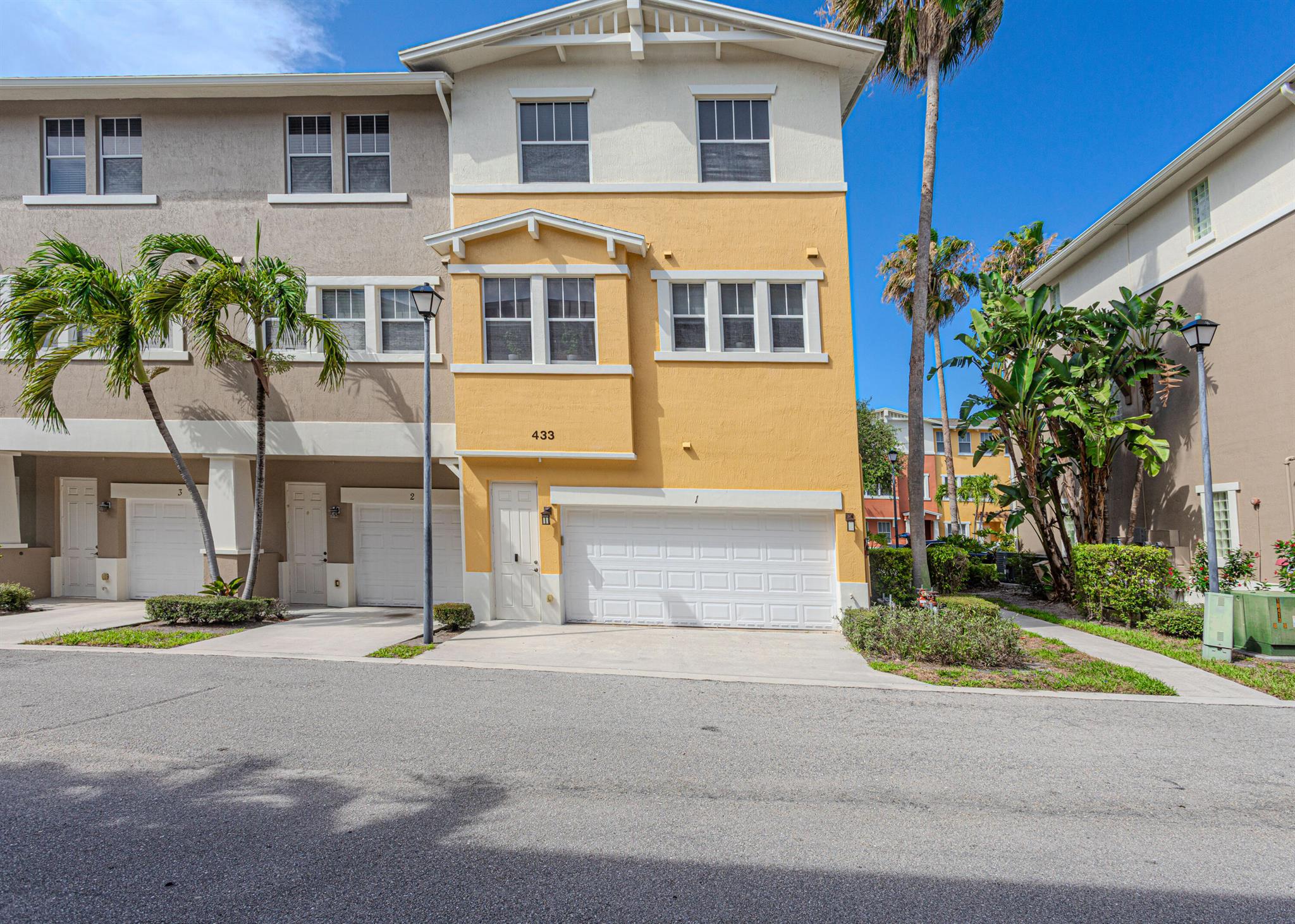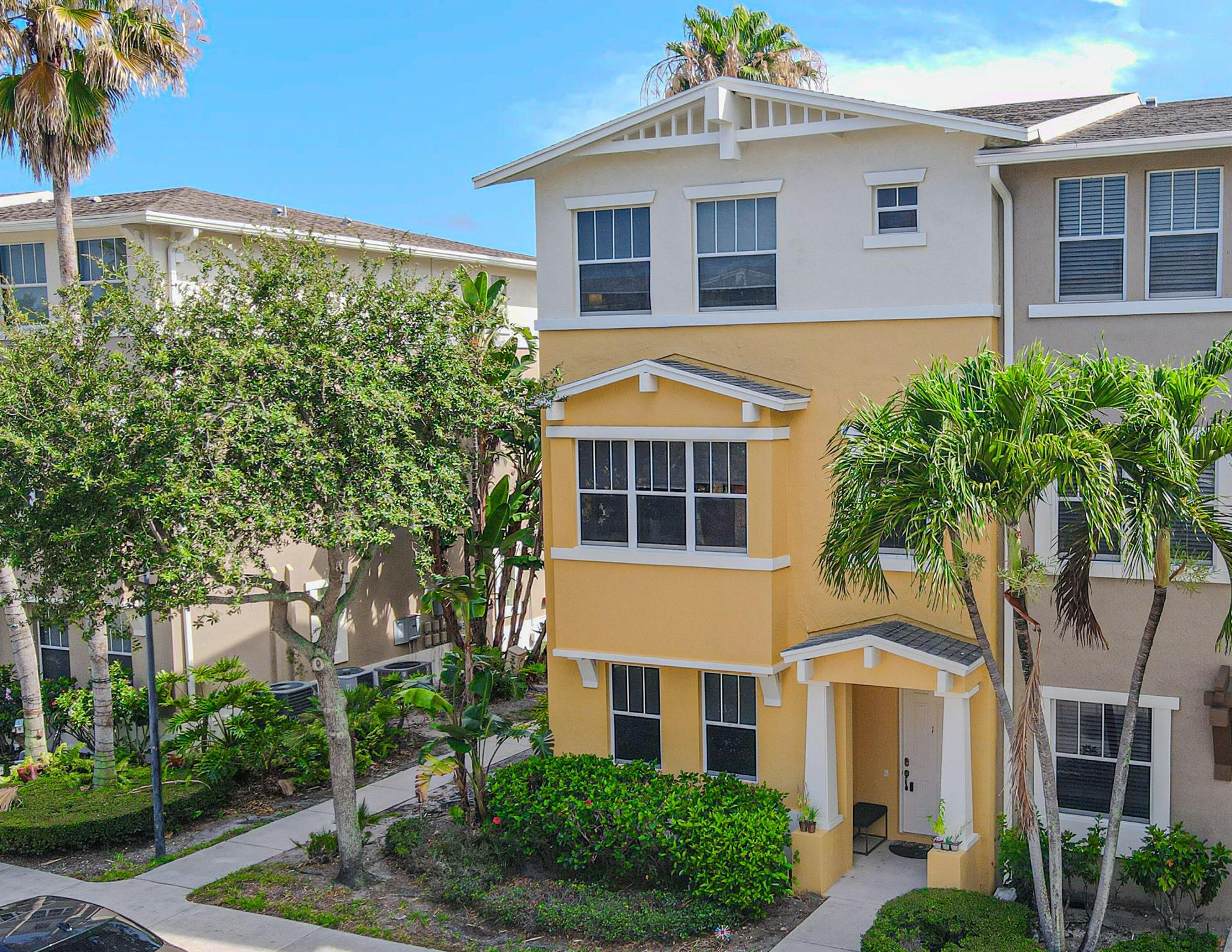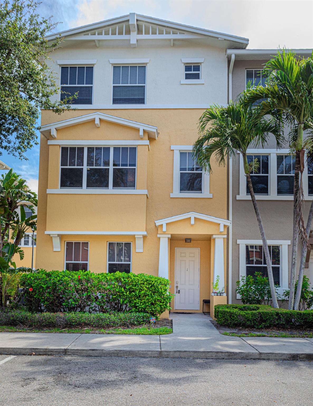 Spacious 4BR/3.5BA corner townhome with 2-car garage in a beautifully maintained guard-gated community offering 24-hour security and resort-style amenities. Natural light fills the home, with high ceilings and unique glass block accents in the living room. The upgraded kitchen features granite countertops, maple cabinetry, and stainless-steel appliances. A first-floor bedroom with en suite bath adds flexibility. Freshly painted exterior and ground-level access make this home live like a single-family residence. Enjoy the community pool, fitness center, clubhouse, and scenic lakeside trail. Ideally located just minutes from Downtown West Palm Beach, I-95, PBI Airport, beaches, shopping, dining, Whole Foods, and Palm Beach Ou
