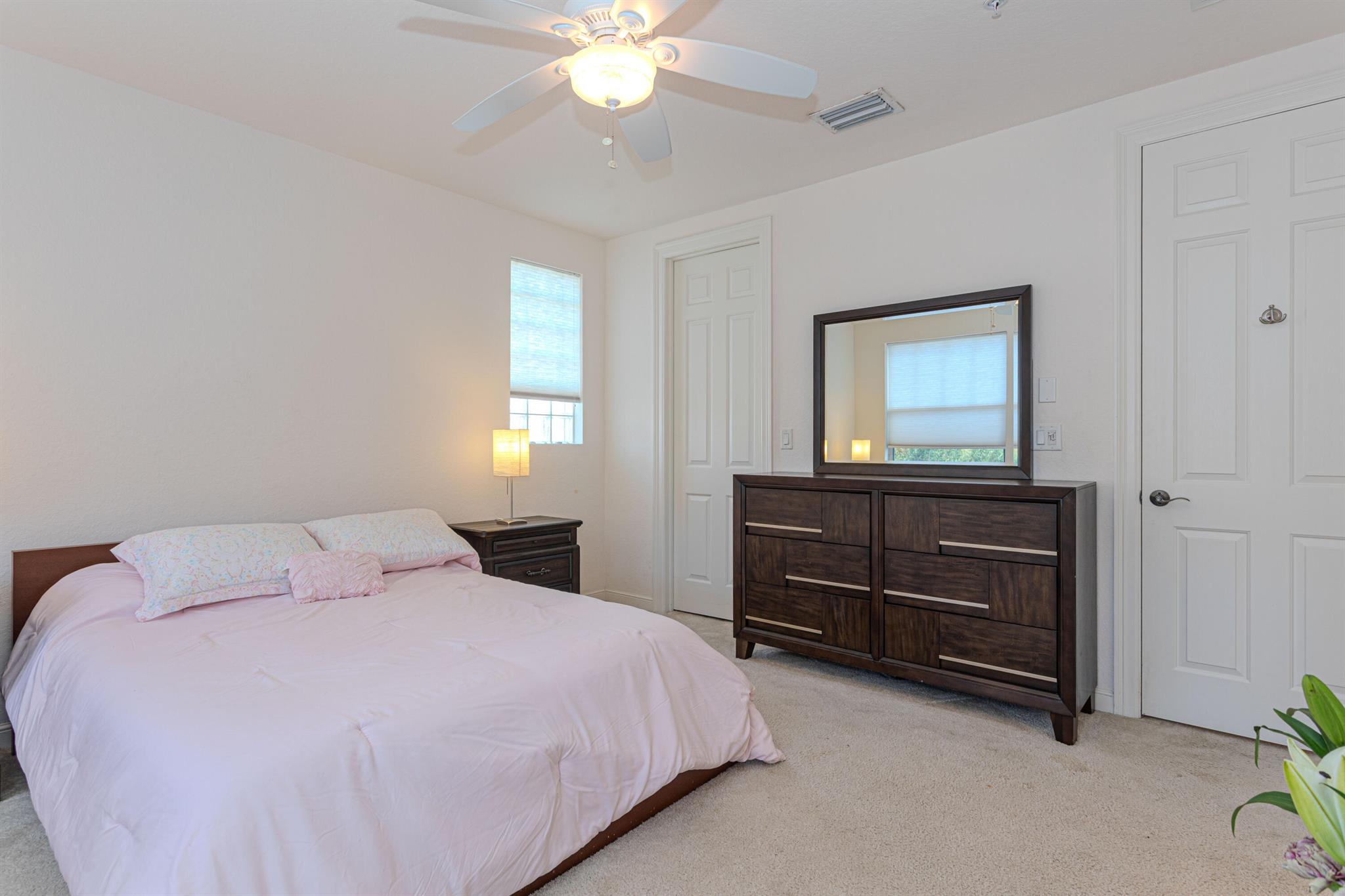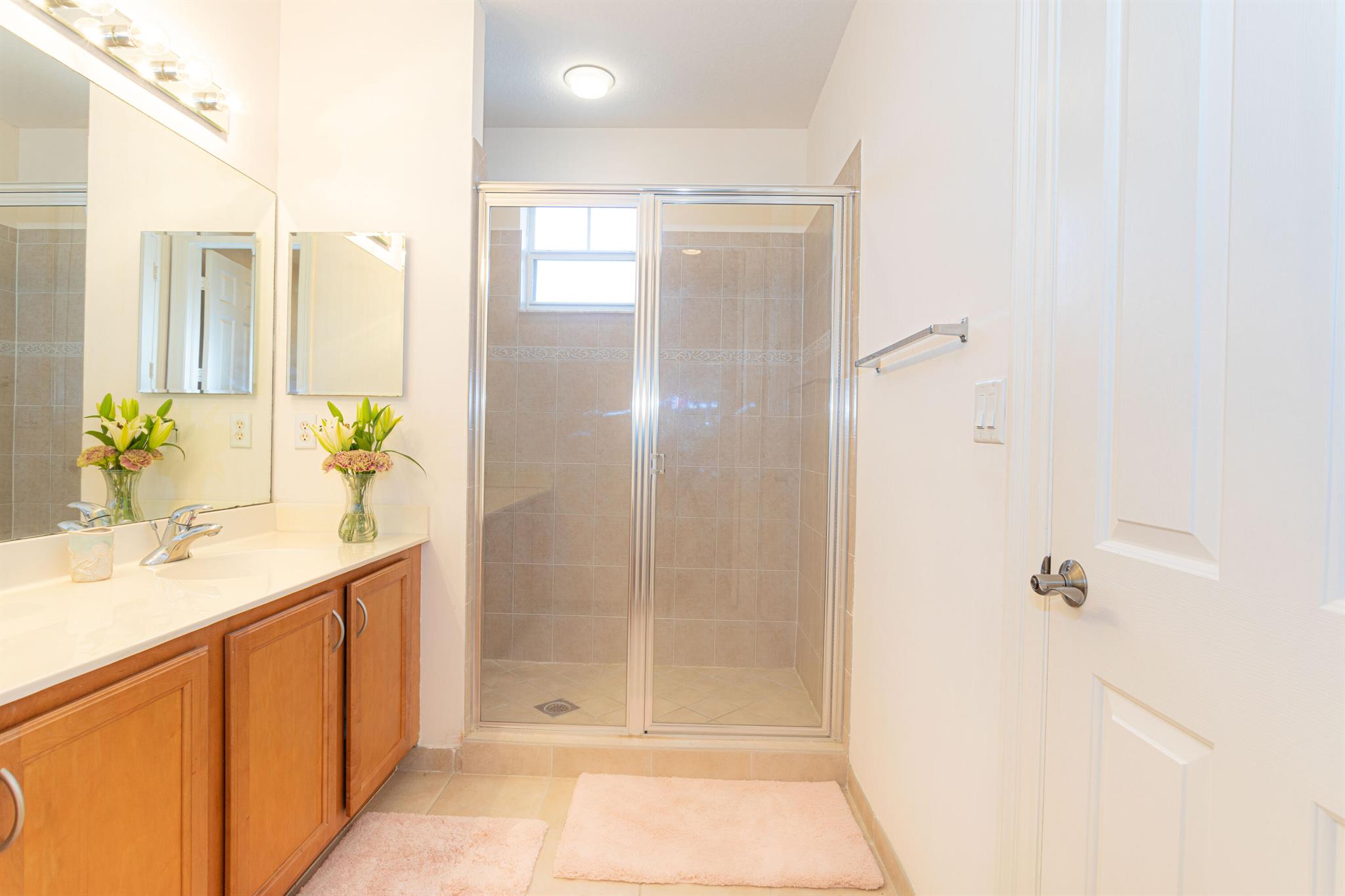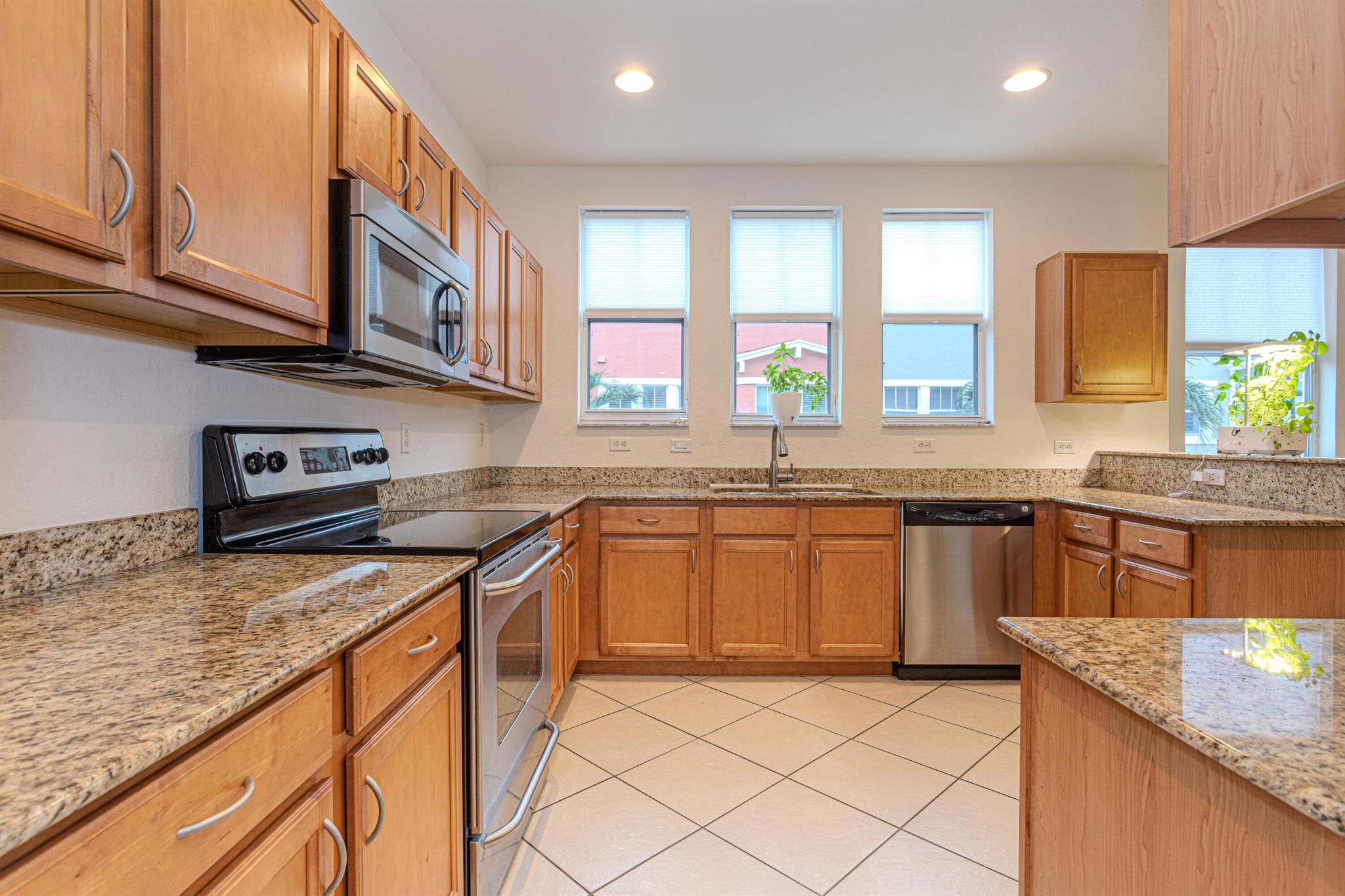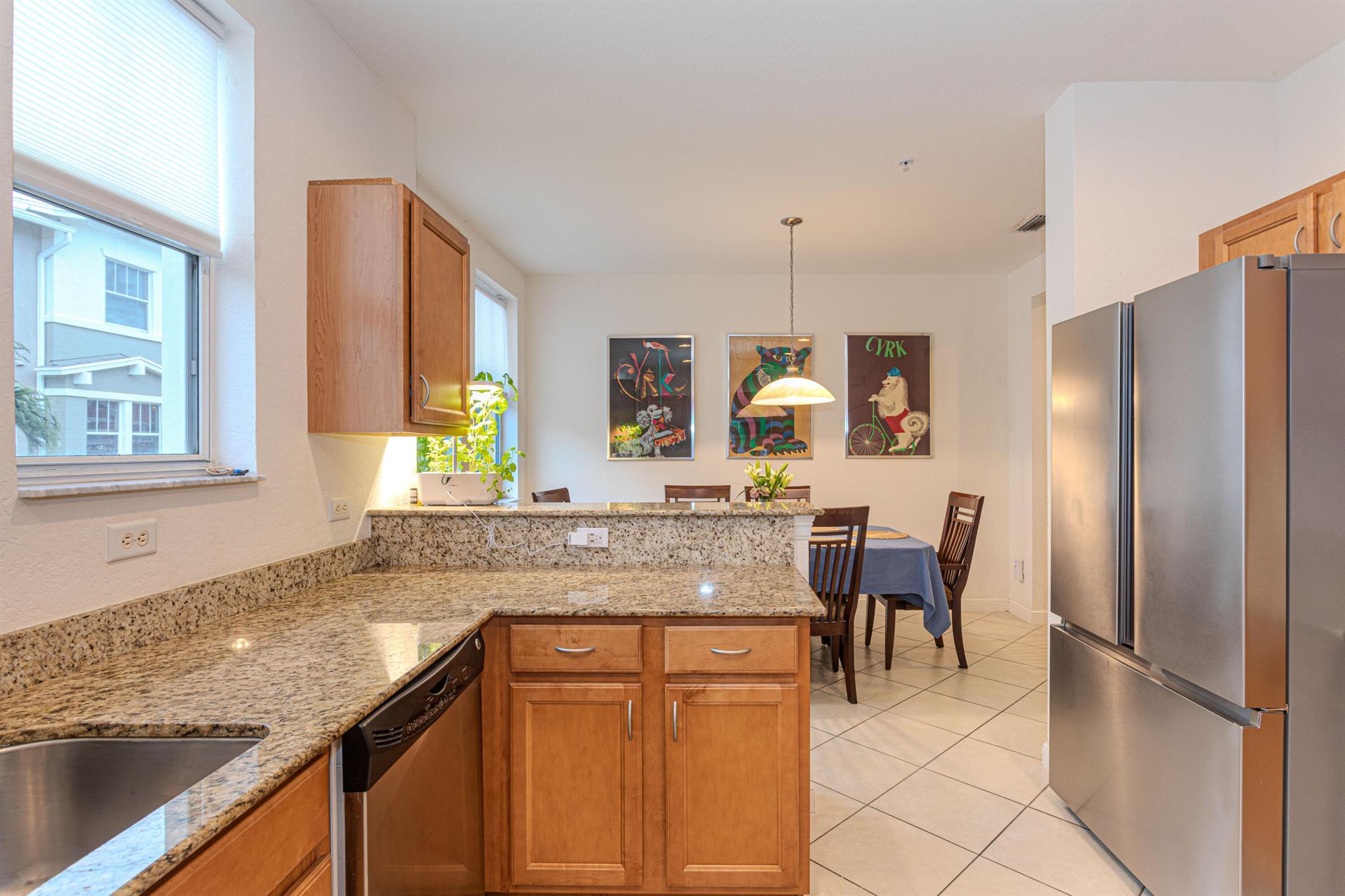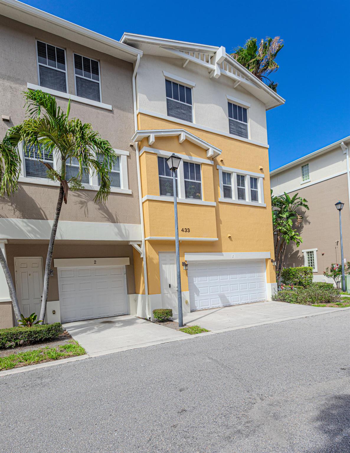 Spacious 4BR/3.5BA corner townhome with 2-car garage in a beautifully maintained guard-gated community offering 24-hour security and resort-style amenities. Natural light fills the home, with high ceilings and unique glass block accents in the living room. The upgraded kitchen features granite countertops, maple cabinetry, and stainless-steel appliances. A first-floor bedroom with en suite bath adds flexibility. Freshly painted exterior and ground-level access make this home live like a single-family residence. Enjoy the community pool, fitness center, clubhouse, and scenic lakeside trail. Ideally located just minutes from Downtown West Palm Beach, I-95, PBI Airport, beaches, shopping, dining, Whole Foods, and Palm Beach Ou