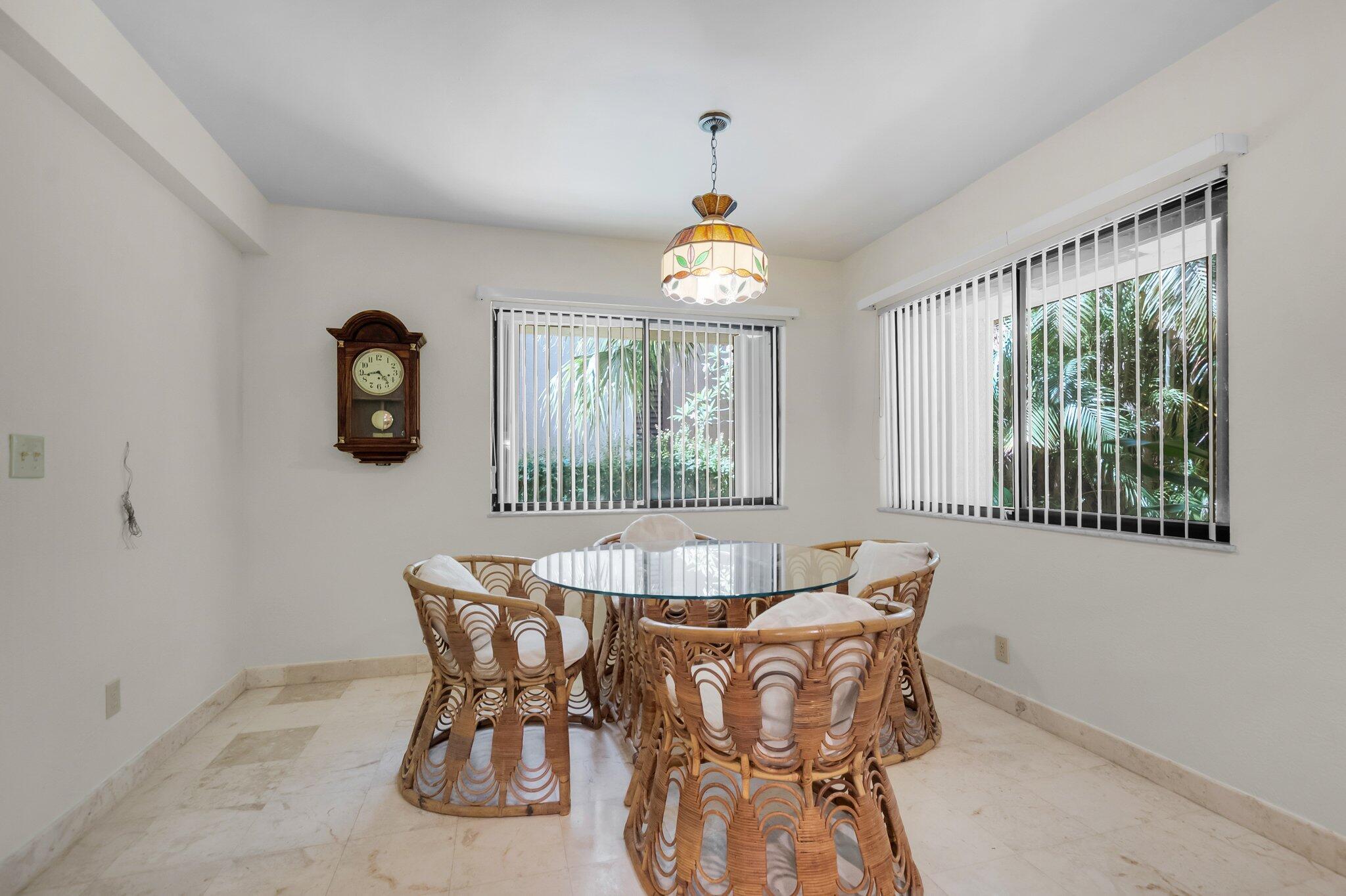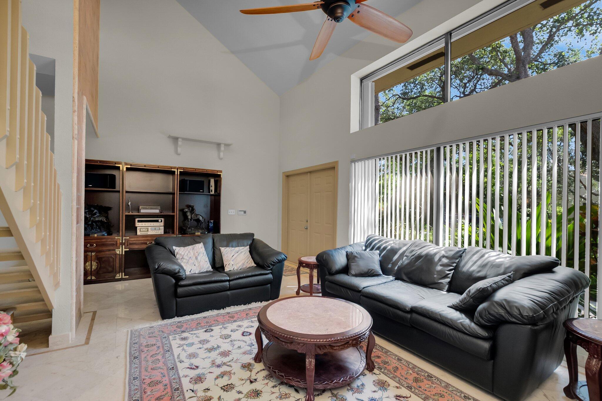 Free-standing townhouse with no attached neighboring walls. Spacious rooms and high ceilings. Extensive use of limestone, granite & marble throughout. Eat-in kitchen with newer refrigerator. Primary bath has walk-in shower plus soaking tub and dual sinks. Accordion shutters and ''solar control film'' on all windows and sliding glass doors. Impact garage door. New garage door motor and 2 remotes (2025).Huge stone patio (24X12). Lands End is conveniently located to the beach, Boca Regional Hospital campus, FAU and the I95 ramp. Amenities include community pool, hot tub and sauna. Furniture is negotiable.