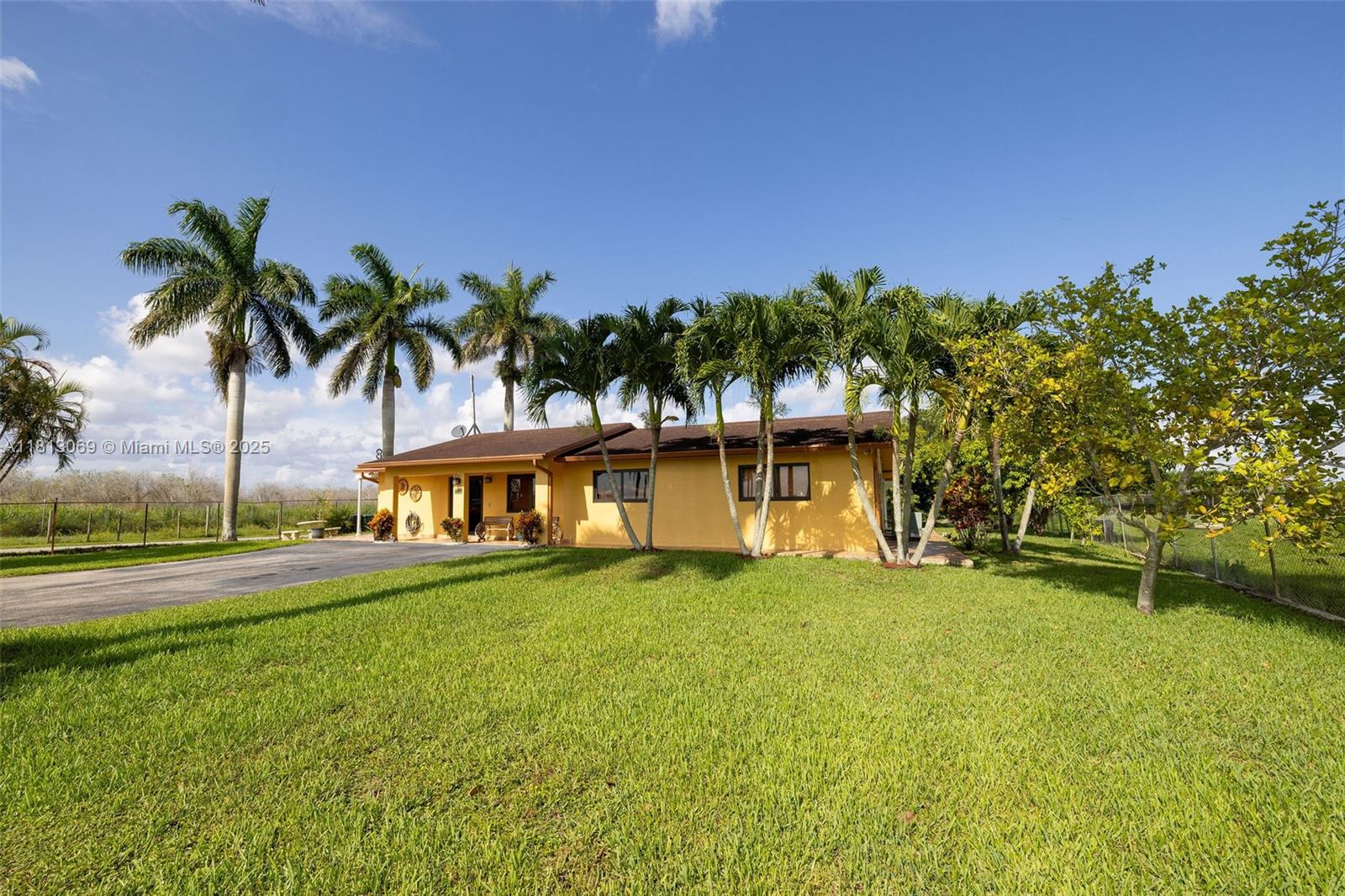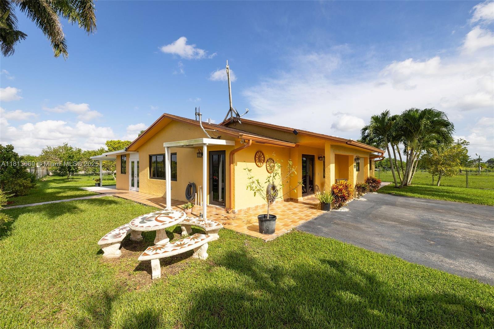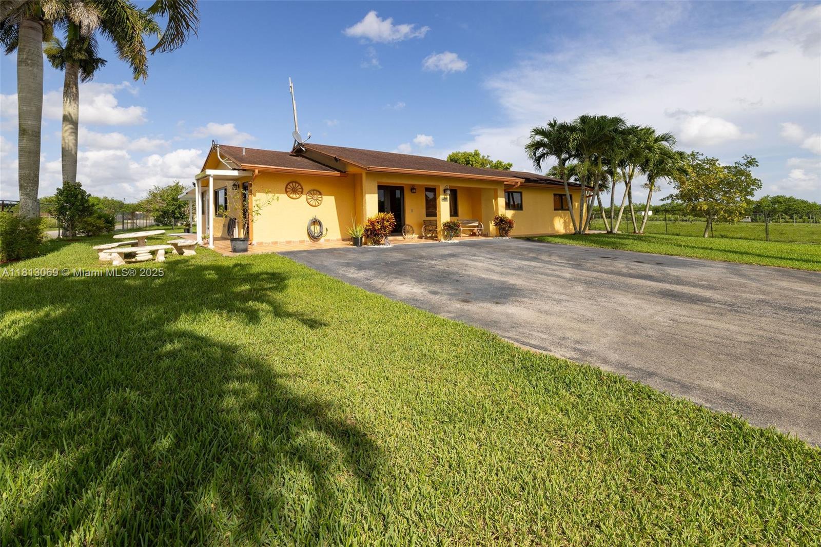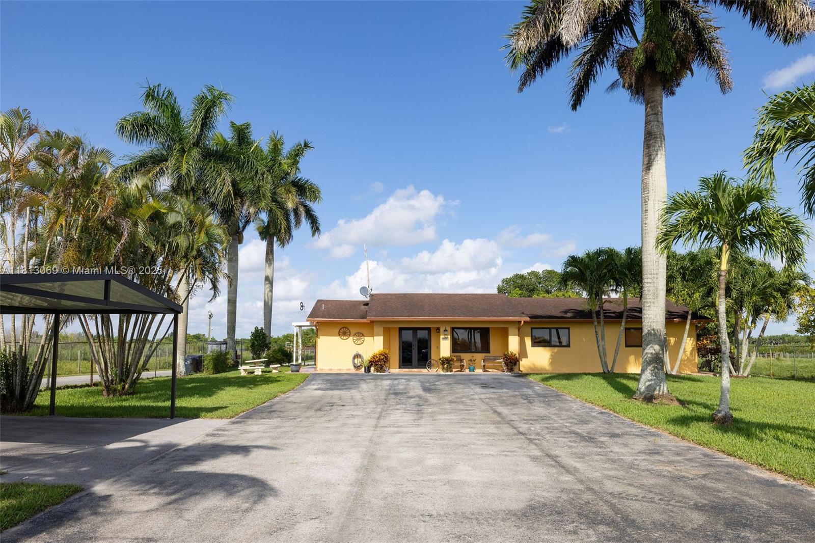 Welcome to El Rancho Mio over 4 acres of fruit trees, free-roaming livestock, and a charming 3-bedroom, 2-bathroom home. This property is perfect as a primary residence, income-producing farm or nursery, or even an Airbnb/vacation retreat.The main home features an open-concept ideal for entertaining guests & hosting family. The oversized kitchen island provides plenty of space for casual dining. Enjoy lunch in the dining area while taking in views of endless green pastures. Updated bathrooms with glass enclosures blend rural living with modern design. Spend your summer afternoons sipping lemonade on the covered rear patio, complete with an outdoor sink and food prep area.With over five species of fruit trees. Livestock is not included in the sale price but may be negotiable.