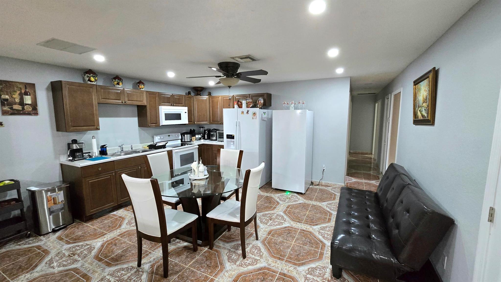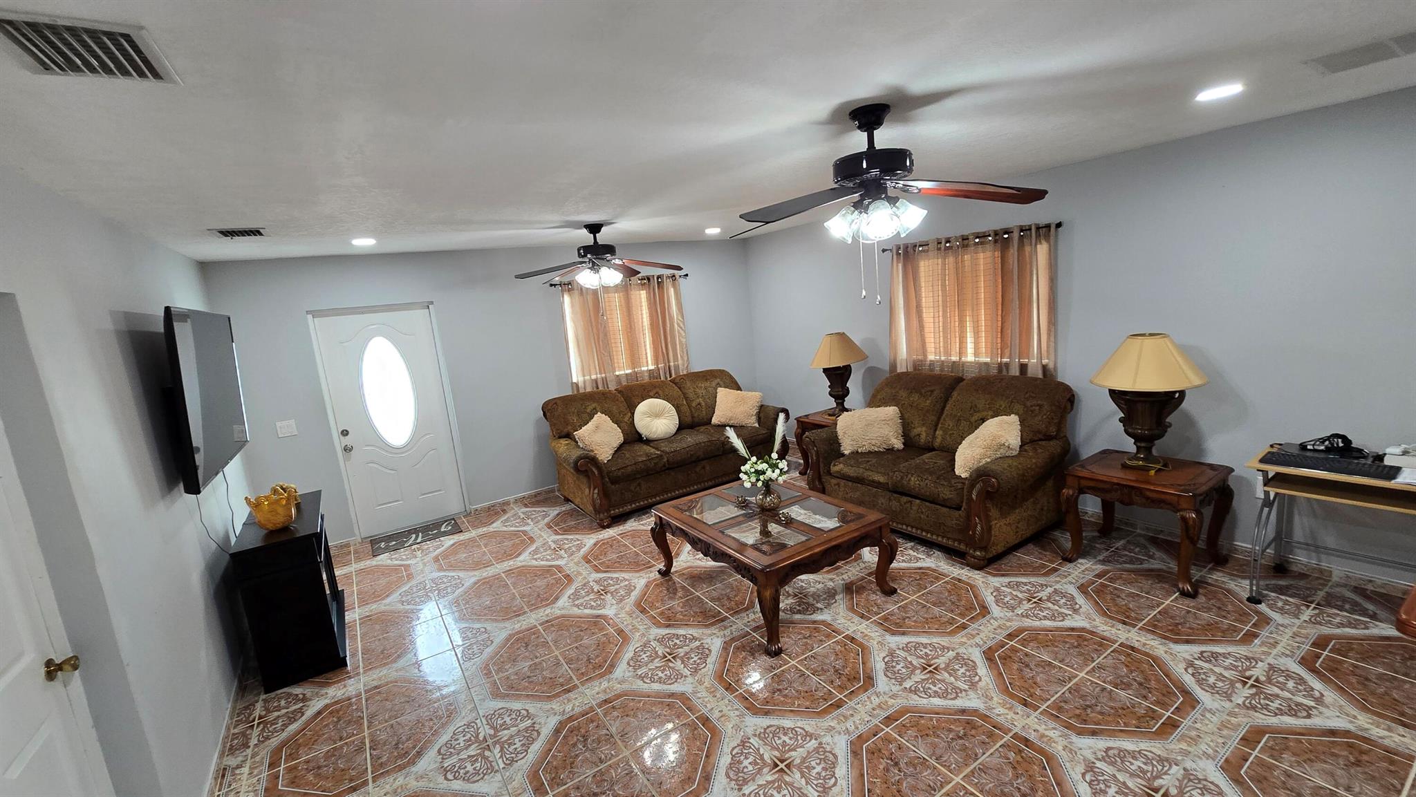 Beautiful starter or investment Single Family Home feauting 5 bedrooms / 4 baths with NO HOA. Two of the rooms and baths are being used as in-laws with independent entrance, which can be a great rental income. The third bedroom can also be used as an extra in-law, if wished.The roof was redone in 2023. Ceramic tiles throughout, remodeled kitchen, newer appliances, newer water heater and electric panel. Recently painted inside with neutral colors. No back neighbors. This property is in great shape and ready for new homeowners.Make an appointment to view it.