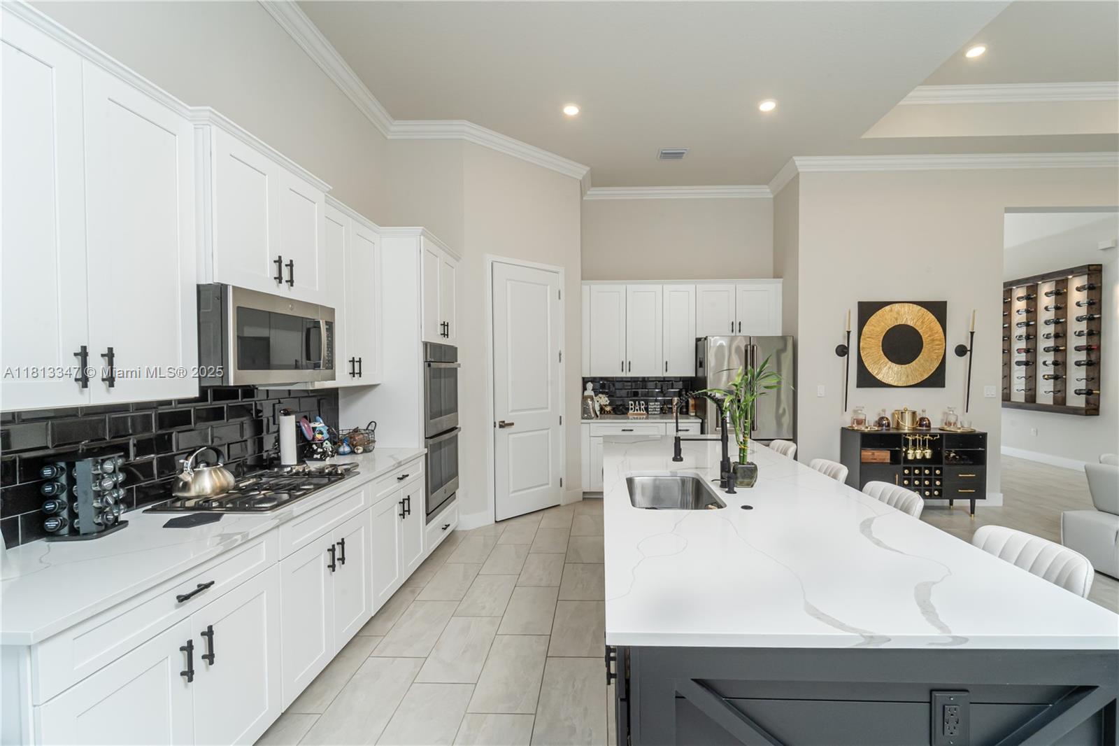 This stunning three bed, two and a half bath, two car garage house has been meticulously designed for comfort and is ready for you to call home! The home right bright with natural sunlight with plenty of windows and high ceilings. Enter the warm , inviting living area with paver lanai, Plenty of space for a pool and out door kitchen An ideal spot for entertaining and gatherings. Plenty of space for a pool. the kitchen has white quartz countertop island for plenty of seating , stainless steel GE appliances, refrigerator has built a built in Keurig Coffee machine. An island with sink, white cabinetry plus a walk in pantry closet for lots of storage. There is a cozy dinning alcove for more formal meals and gatherings. Cafe in the club house with food and drinks .