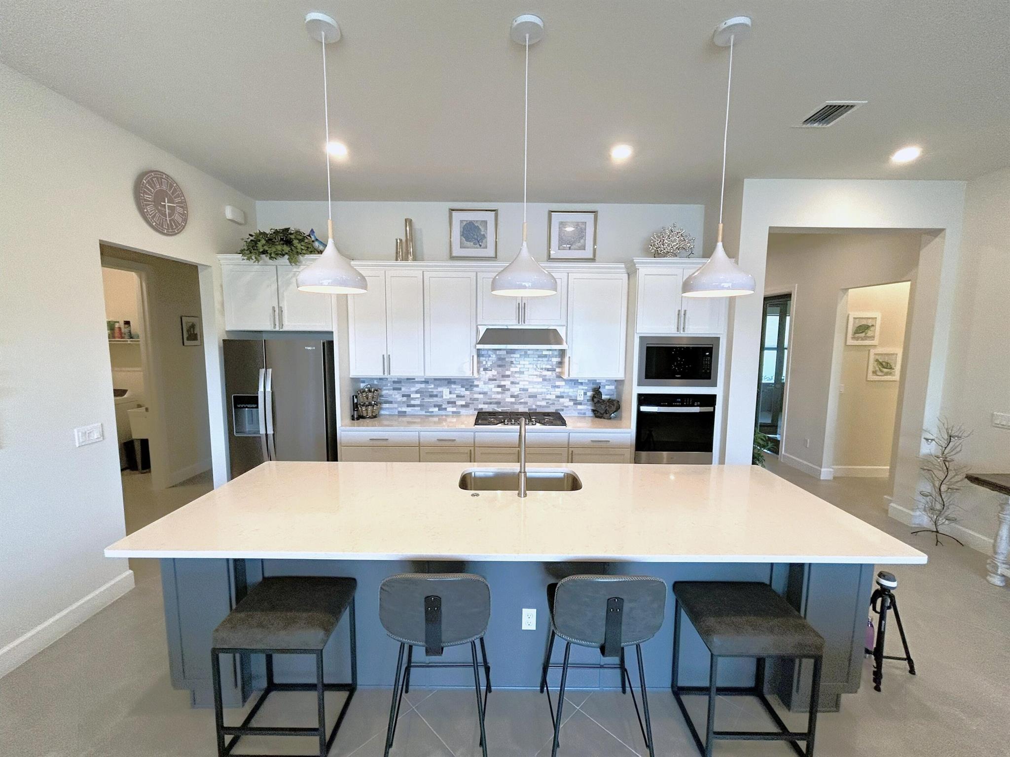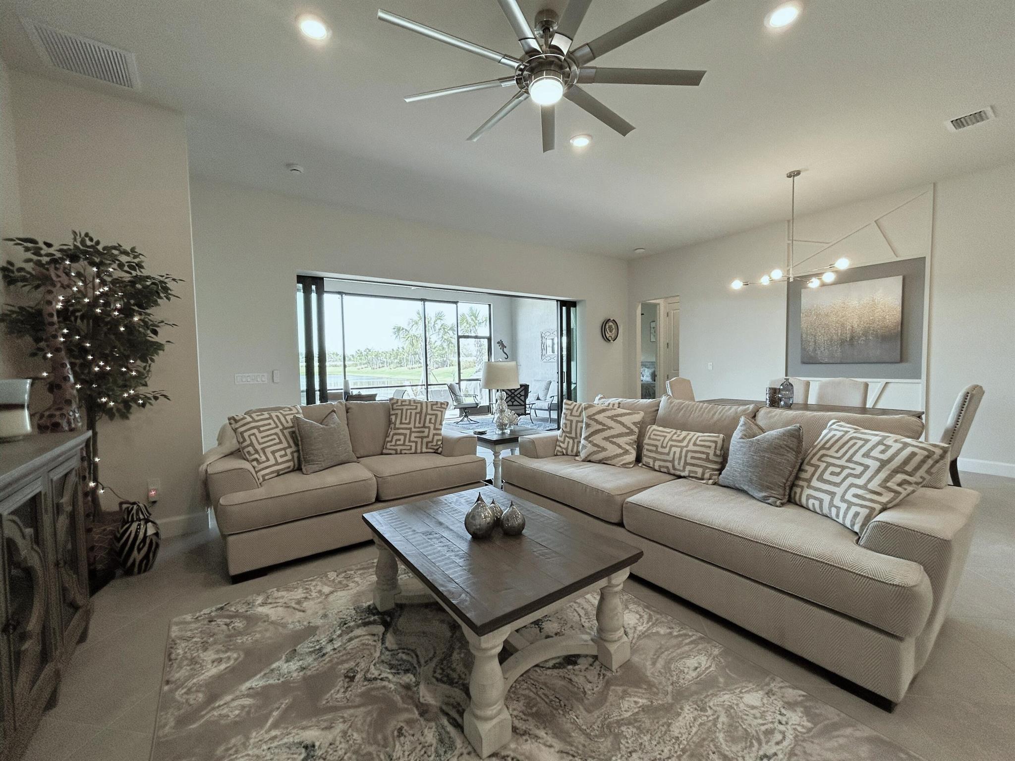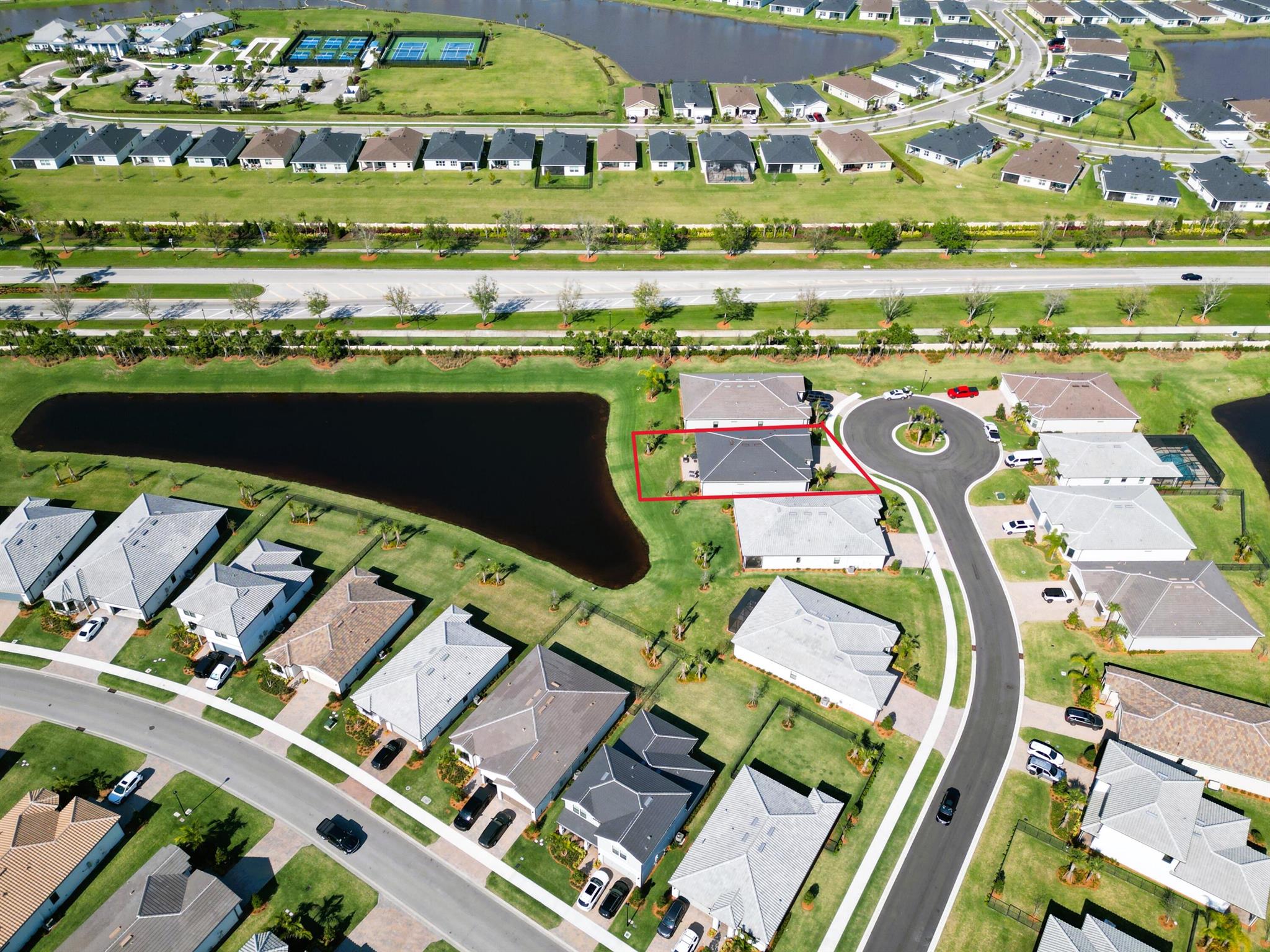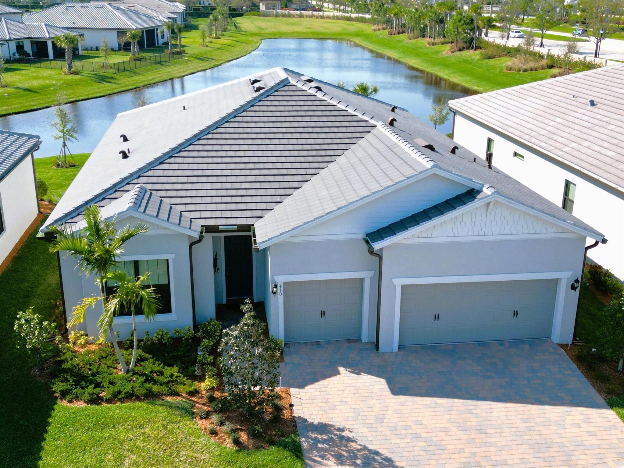 This ''ASHBY'' model home located in the highly sought after Veranda Gardens at the end of a very small, quiet and private cul-de-sac. Please come see this immaculate, like new, 2024, 3 bed, 2.5 bath home w/ office/den. Upon entering you will notice the 10' ceilings, 8' doors, abundant natural light and fabulous lake view thru the 20' wide pocket doors. The office/den is entered thru custom French doors, open concept living, spilt floorplan, large diagonal ceramic tile flooring, surrounded by high impact windows/doors. The kitchen boasts all SS appliances, gas cooktop, quartz and custom tile backsplash. Two tone soft-close cabinets/drawers, 11' island for entertaining. Lovely accent walls and custom paint. Pri suite provides space w/ a water view & tray ceiling.