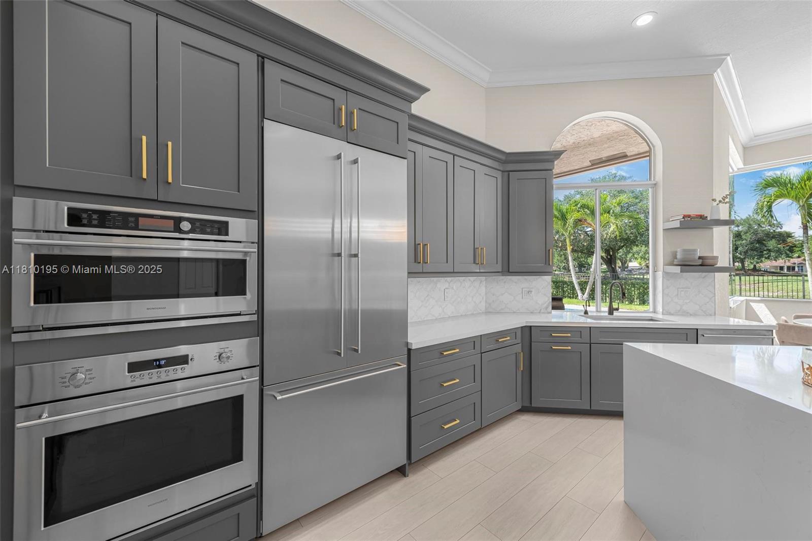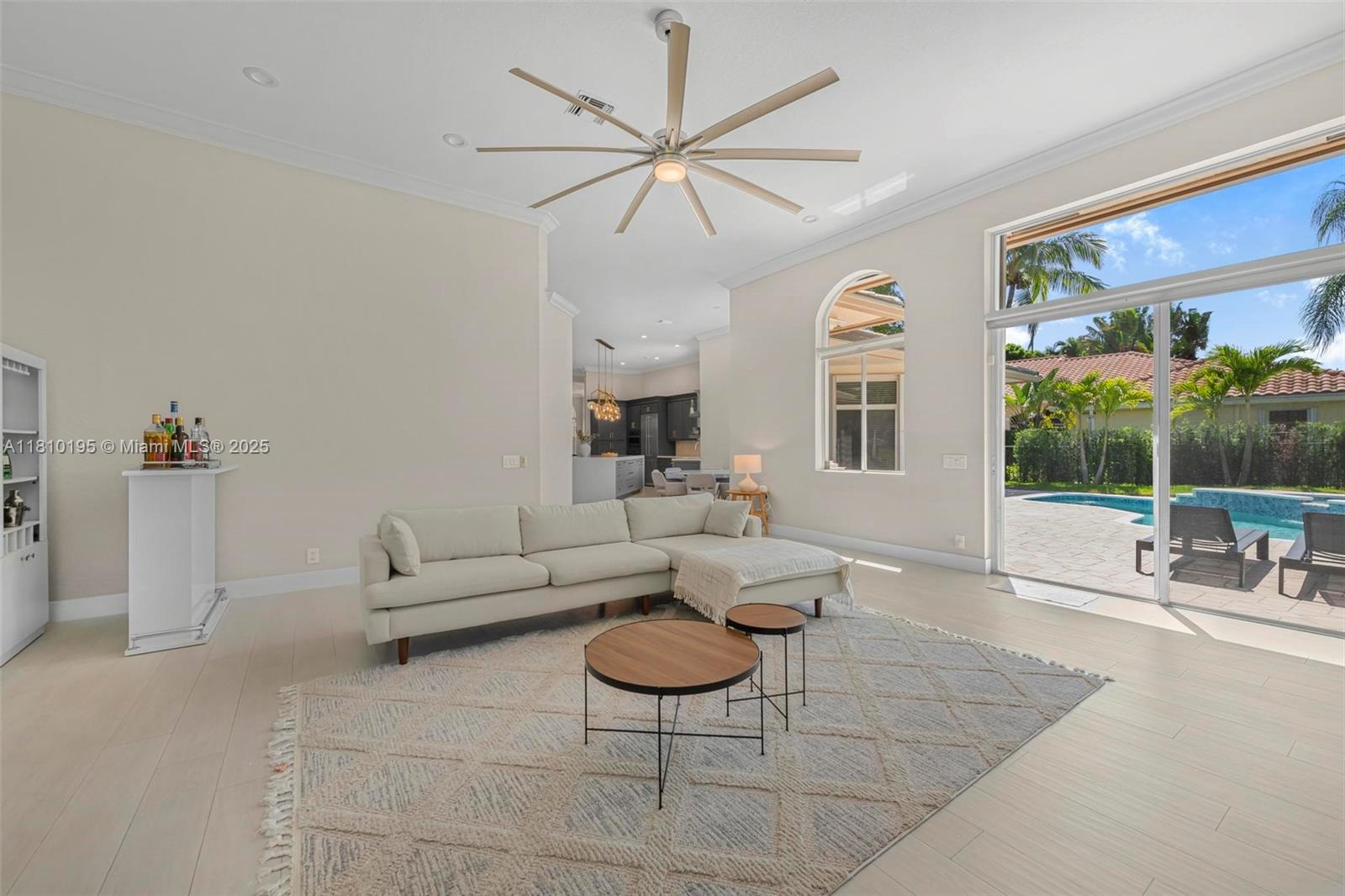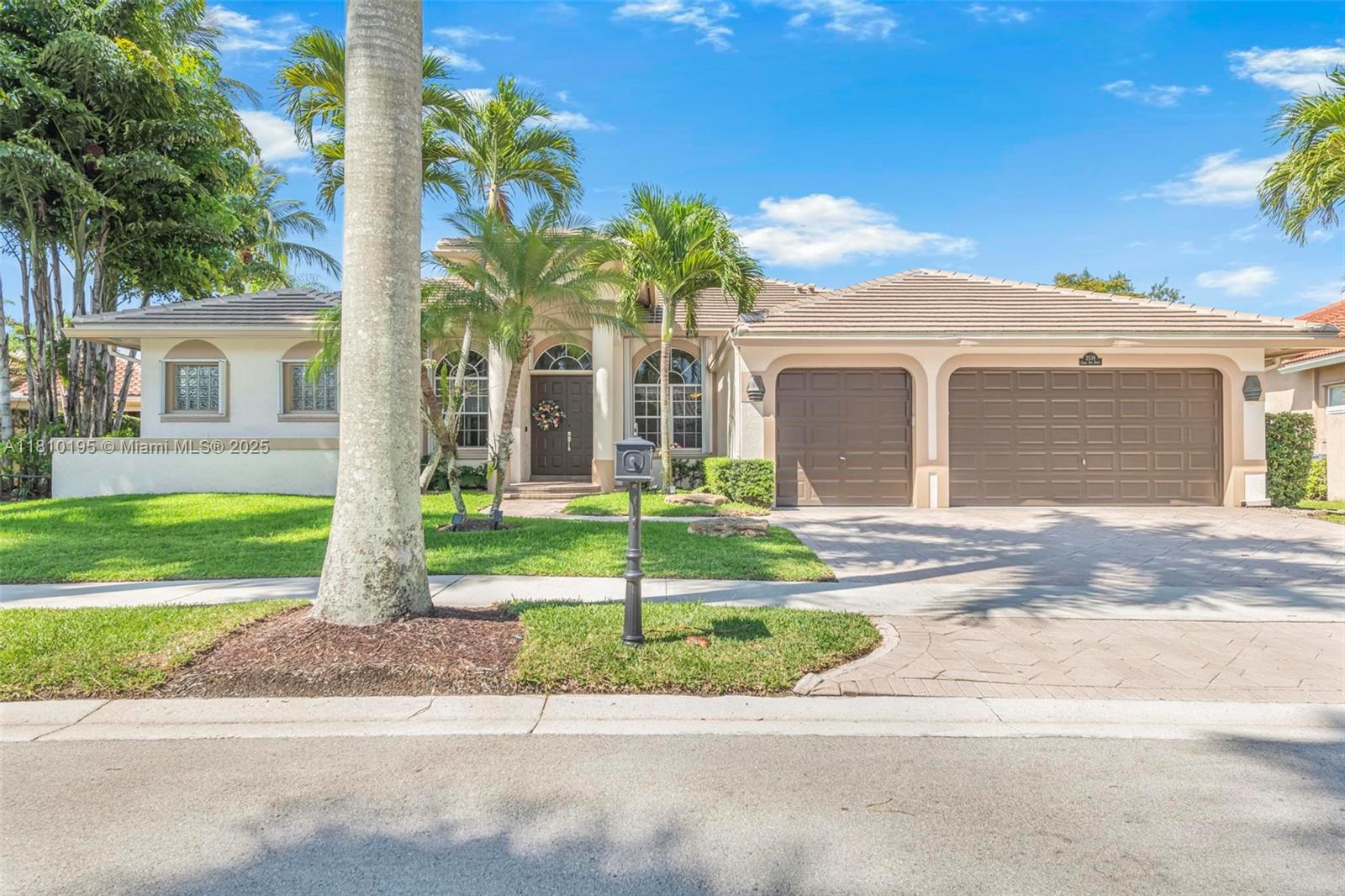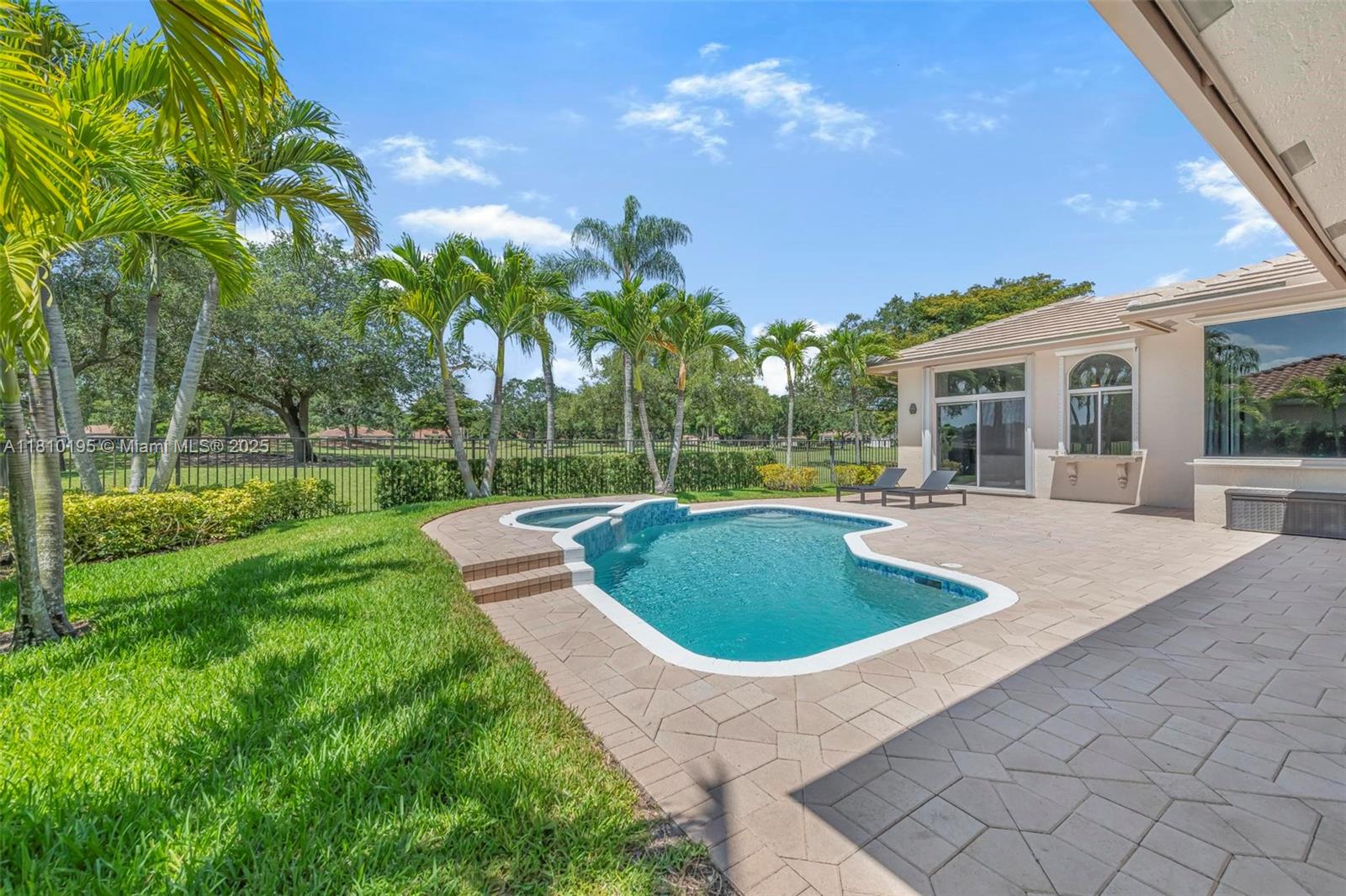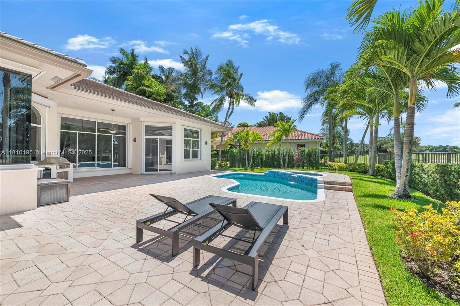 Luxury living awaits in this stunning one-story pool home on the golf course in Weston Hills Country Club. Featuring a brand new roof and 2-zone WiFi A/C, this home offers both style and peace of mind. Relax and enjoy the resurfaced pool & spa with an amazing salt water system and tranquil golf course views! The custom kitchen is truly a centerpiece and boasts quartz countertops, waterfall island, and premium Monogram & Gaggenau appliances. Enjoy expansive living spaces highlighted by updated flooring, a modern fireplace wall + freshly painted interior/exterior. The split 5-bedroom plan includes one room used as an office. The open layout boast natural lighting and space and is ideal for entertaining. 3-car garage! Excellent location with top-rated schools complete this exceptional home!