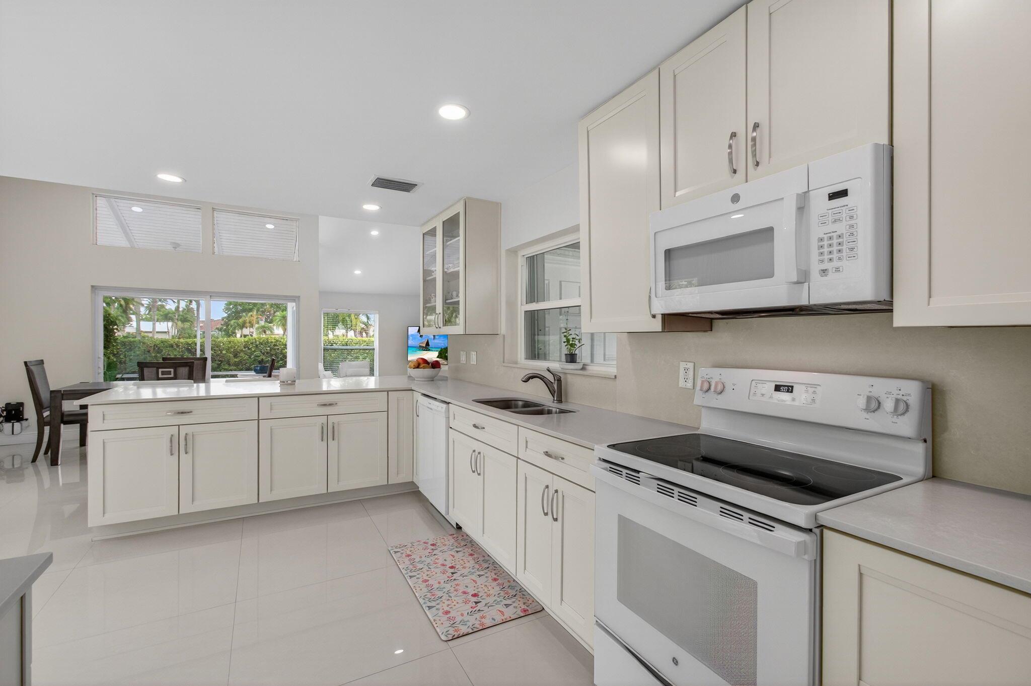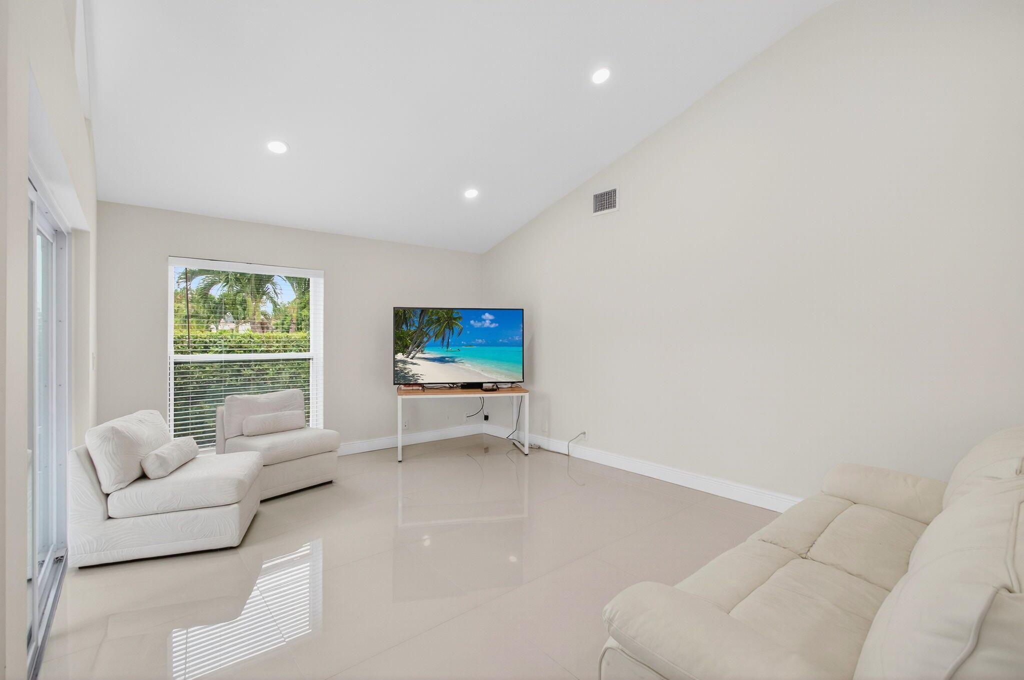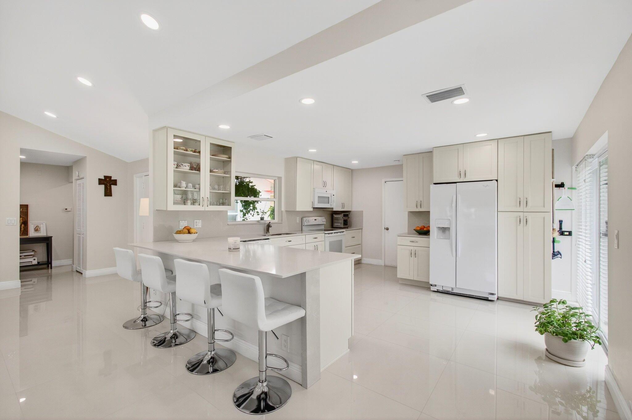 Beautifully renovated home with impact glass windows, new kitchen, new bathrooms, new flooring in the charming section of Indian Spring called ''THE MEWS''. New electric panel, new AC, new appliances. All work completed in the last 3 years. The community has a pool with a screened area or join the Indian Spring Country Club for more amenities.