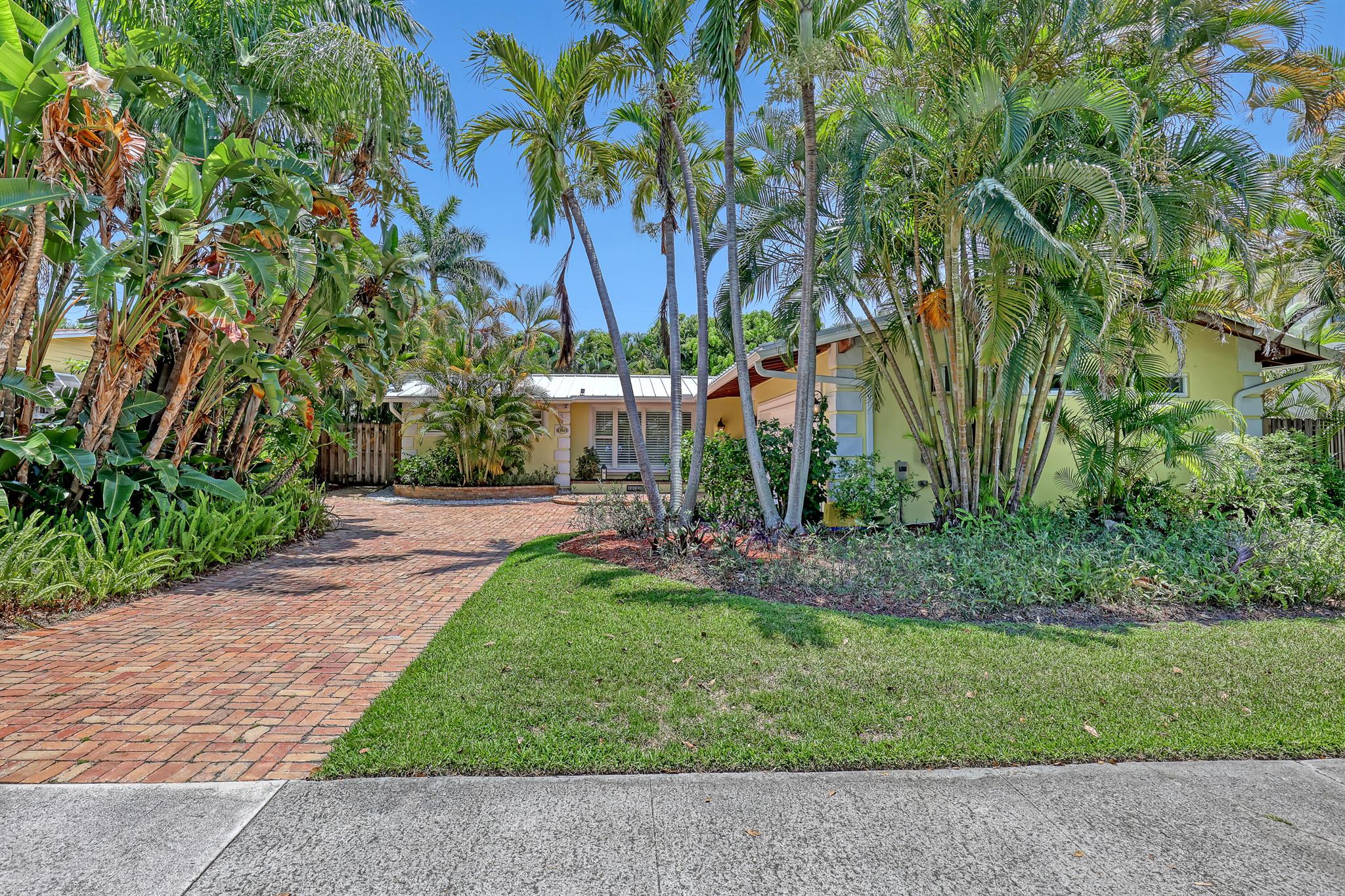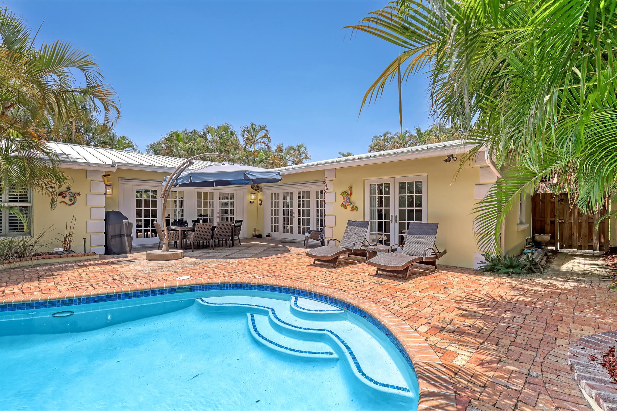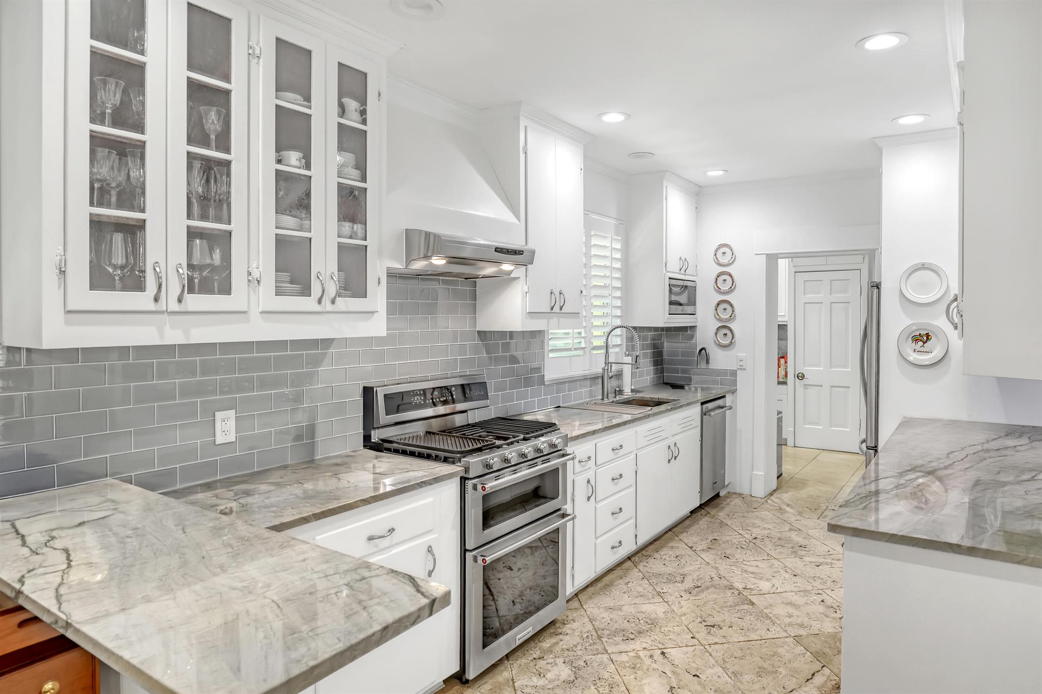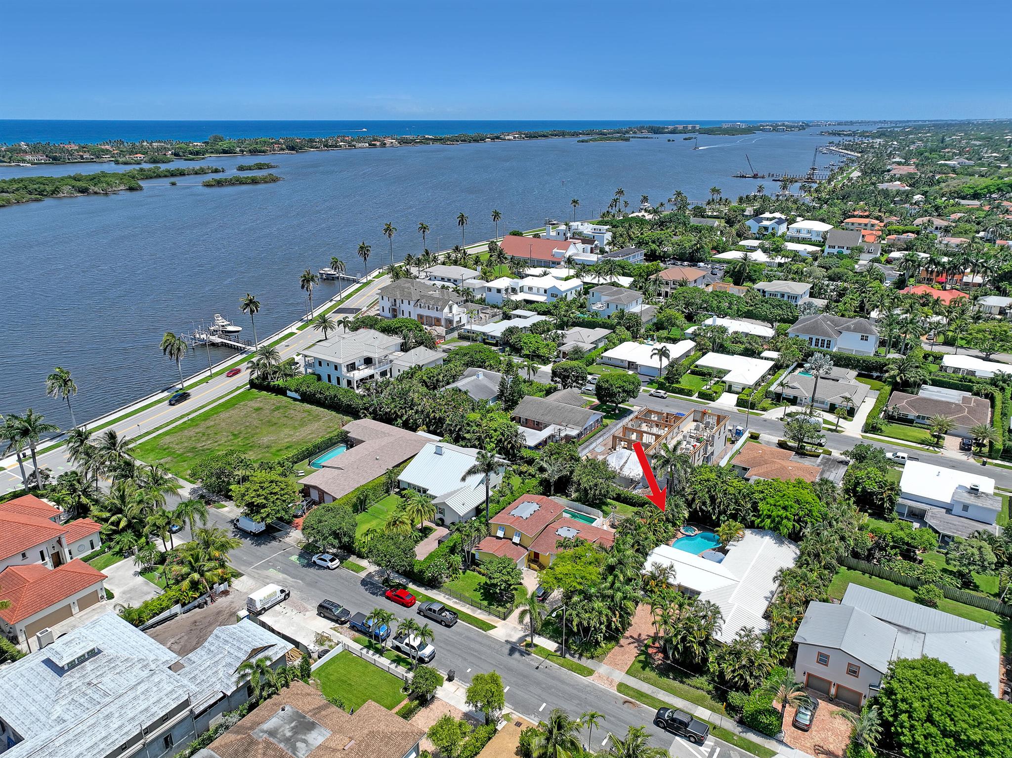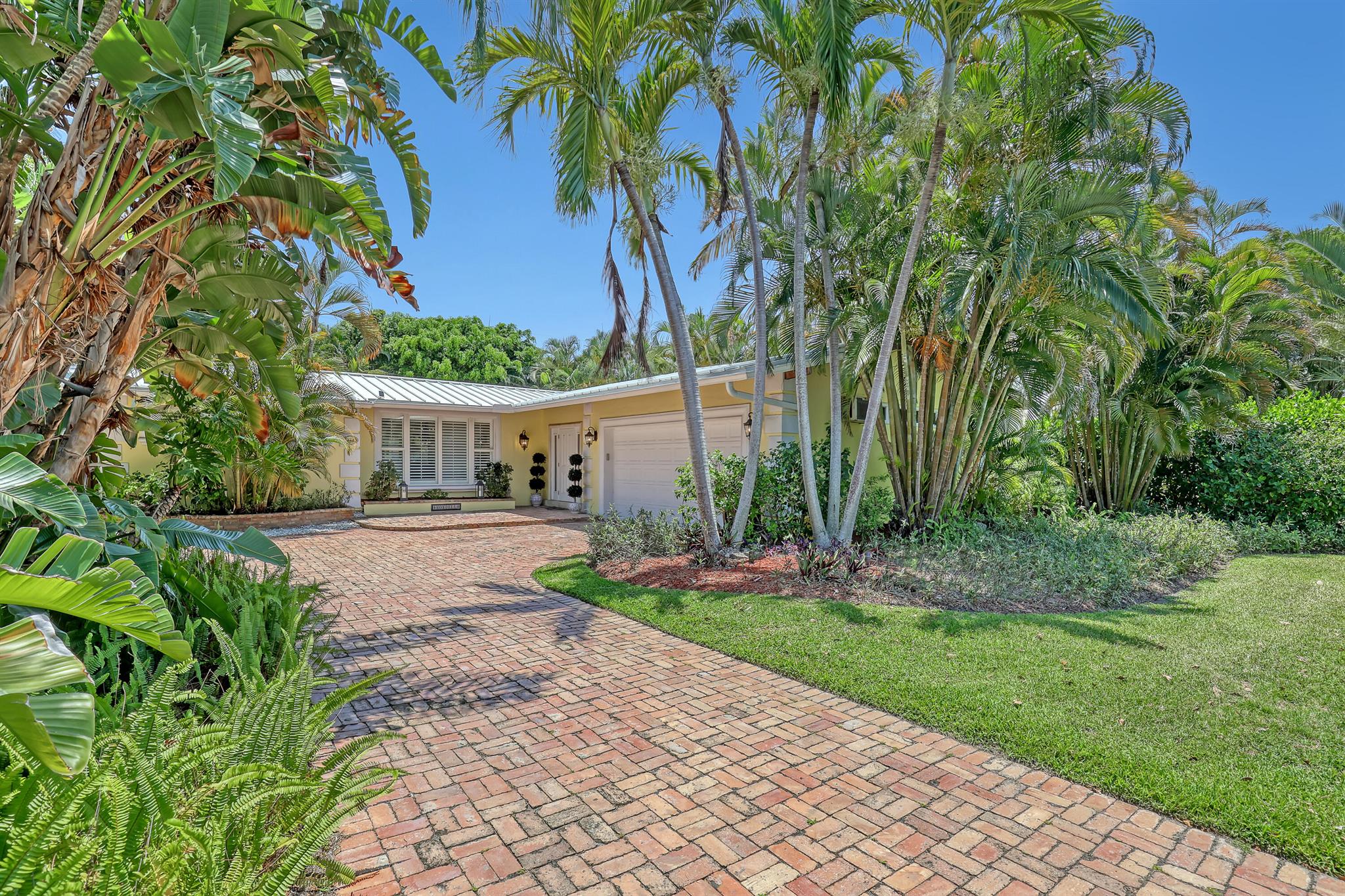 This CBS three bedroom, two bath, mid-century home with a gorgeous back yard and pool area is the epitome of charm. Featuring over two thousand feet of air-conditioned living space and an impressively large lot, just three houses from Flagler drive in SOSO. This premier location is the center of the high-end lifestyle that makes West Palm Beach so desirable. The property is situated just one block from the Intracoastal Waterway and providing easy access to downtown West Palm Beach, Mar-a-Lago, Worth Avenue, and Palm Beach International Airport. The home features an open concept design with a chef's kitchen, Quartz counter tops, custom backsplash, high end stainless appliances and gas range. The neutral stone flooring seamlessly blends warm tones throughout the home.