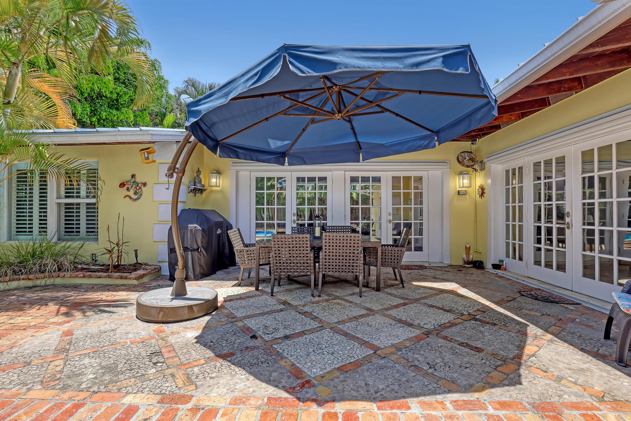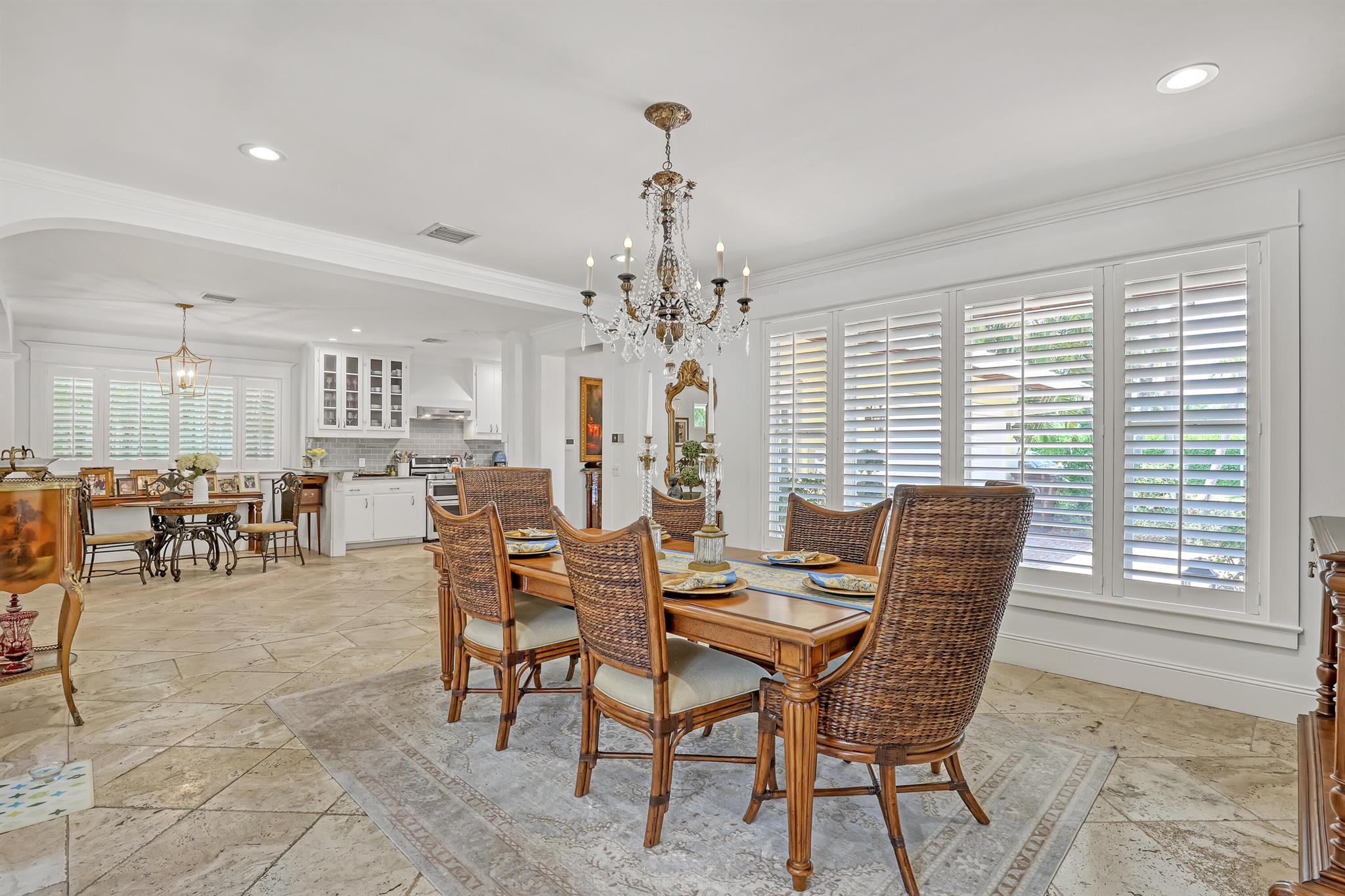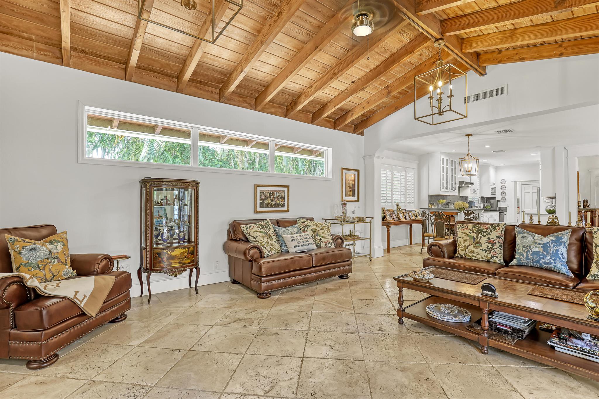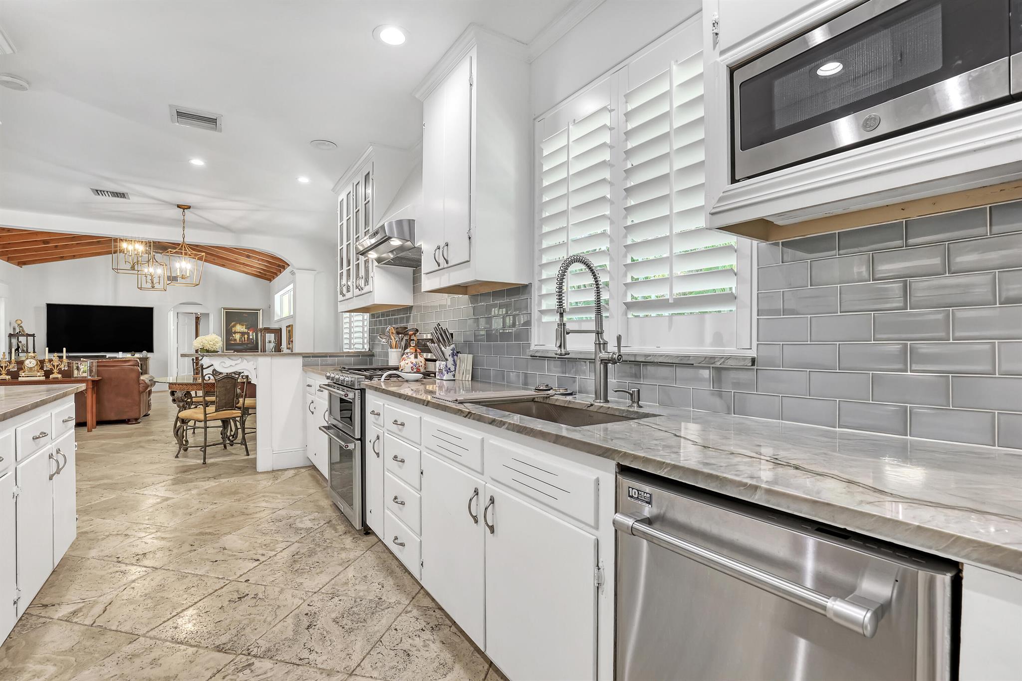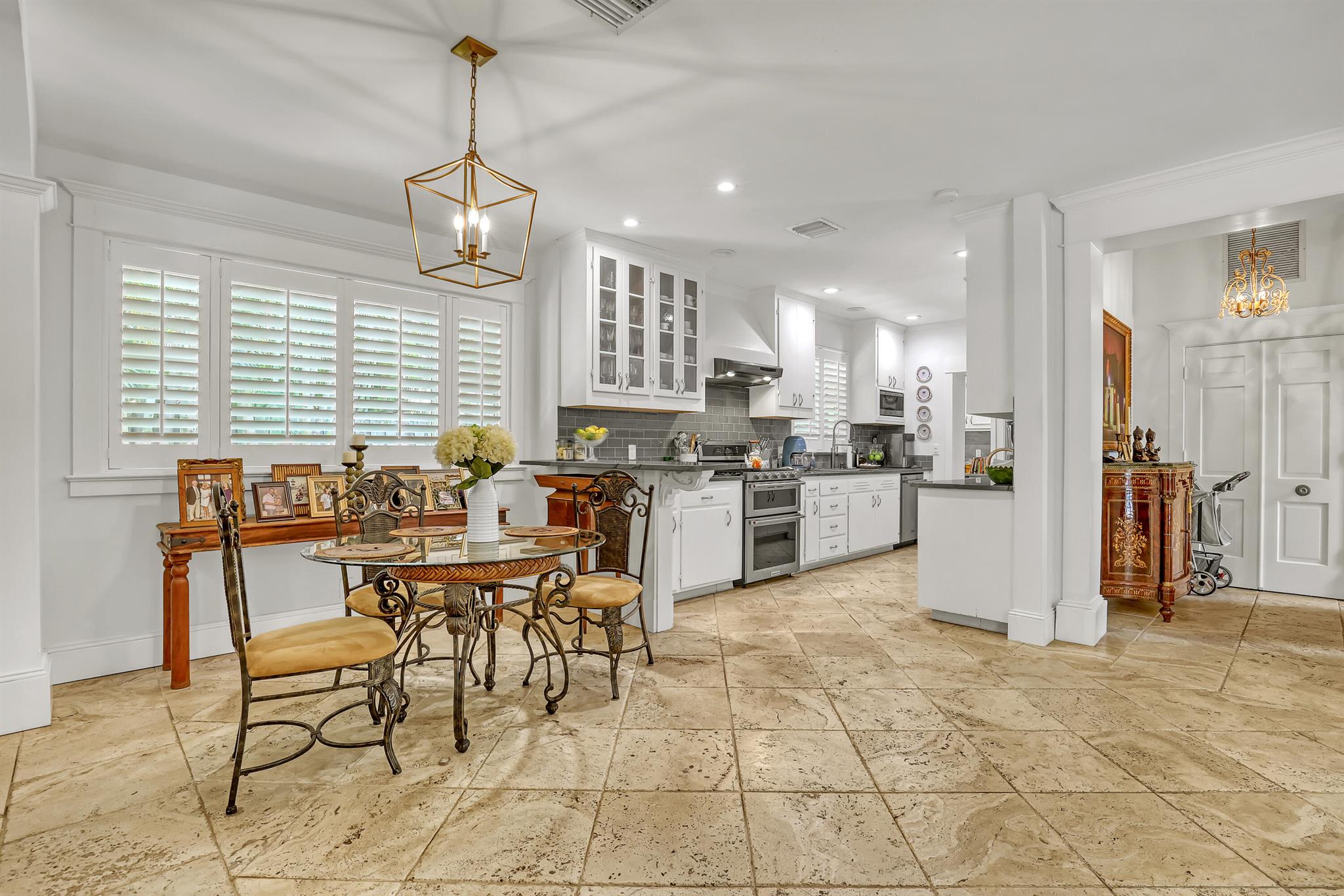 This CBS three bedroom, two bath, mid-century home with a gorgeous back yard and pool area is the epitome of charm. Featuring over two thousand feet of air-conditioned living space and an impressively large lot, just three houses from Flagler drive in SOSO. This premier location is the center of the high-end lifestyle that makes West Palm Beach so desirable. The property is situated just one block from the Intracoastal Waterway and providing easy access to downtown West Palm Beach, Mar-a-Lago, Worth Avenue, and Palm Beach International Airport. The home features an open concept design with a chef's kitchen, Quartz counter tops, custom backsplash, high end stainless appliances and gas range. The neutral stone flooring seamlessly blends warm tones throughout the home.