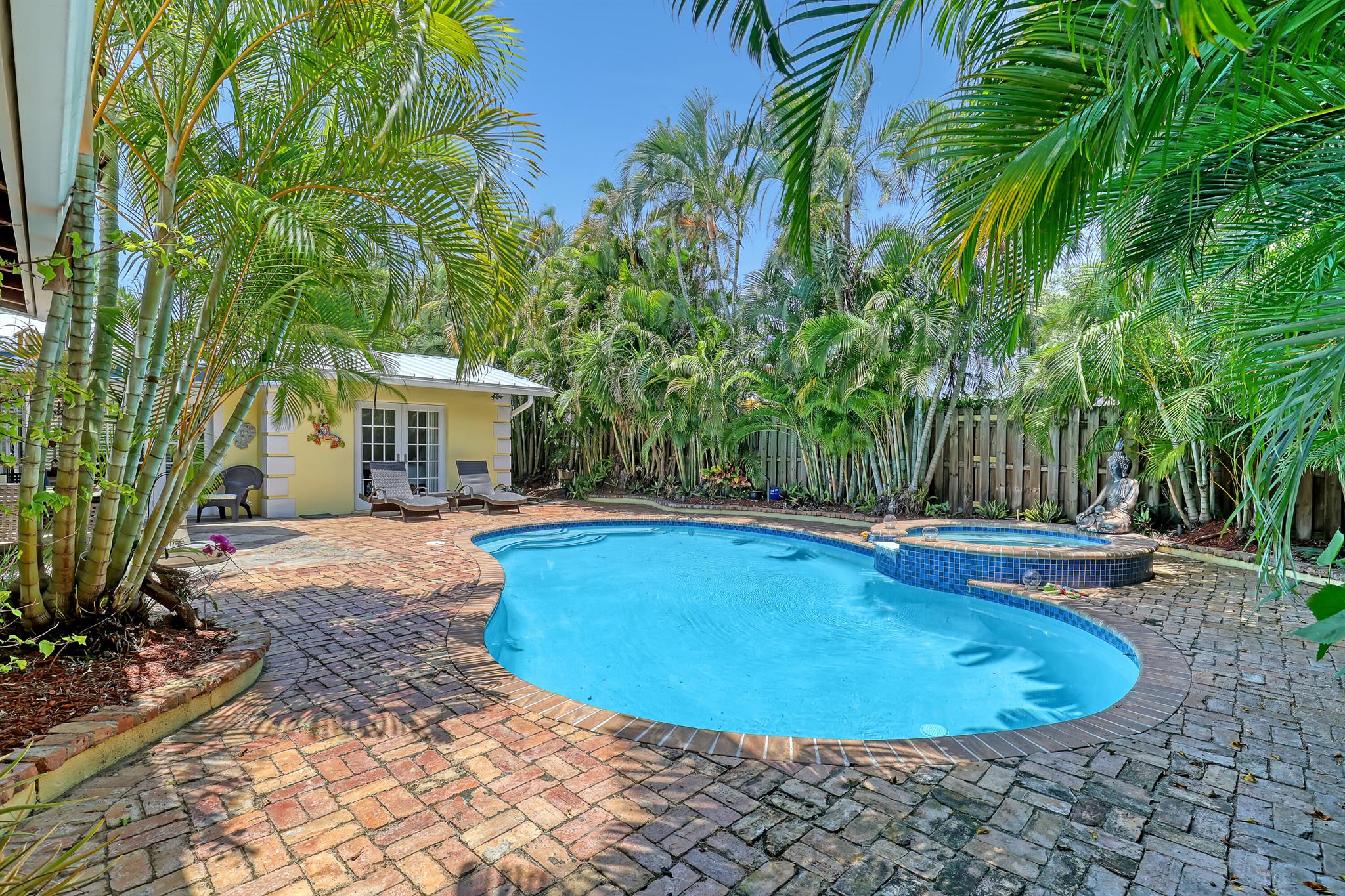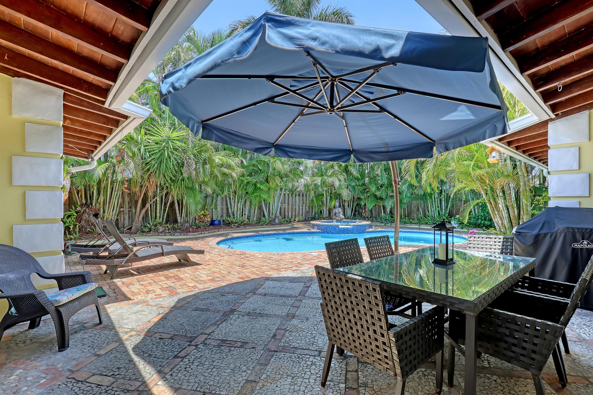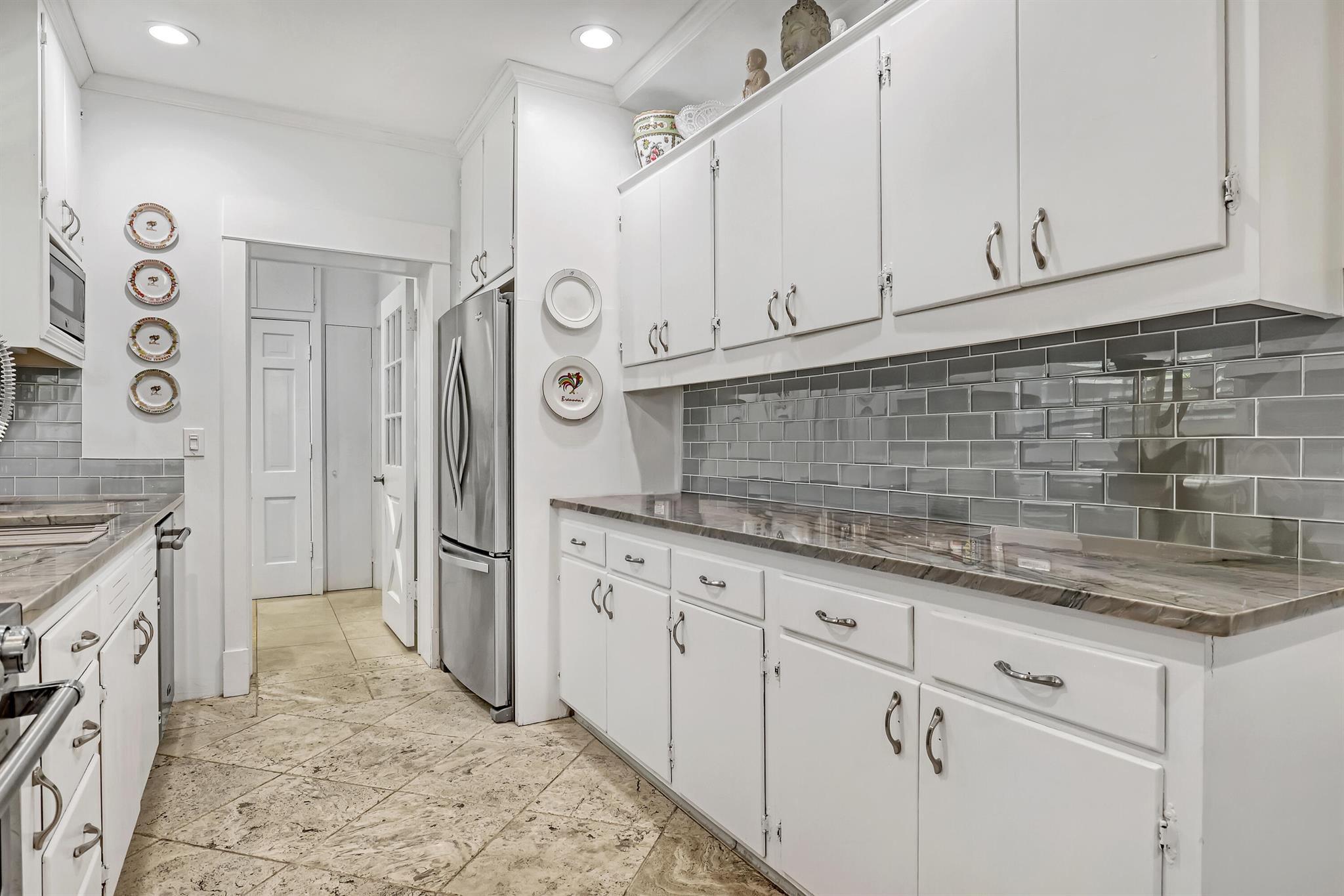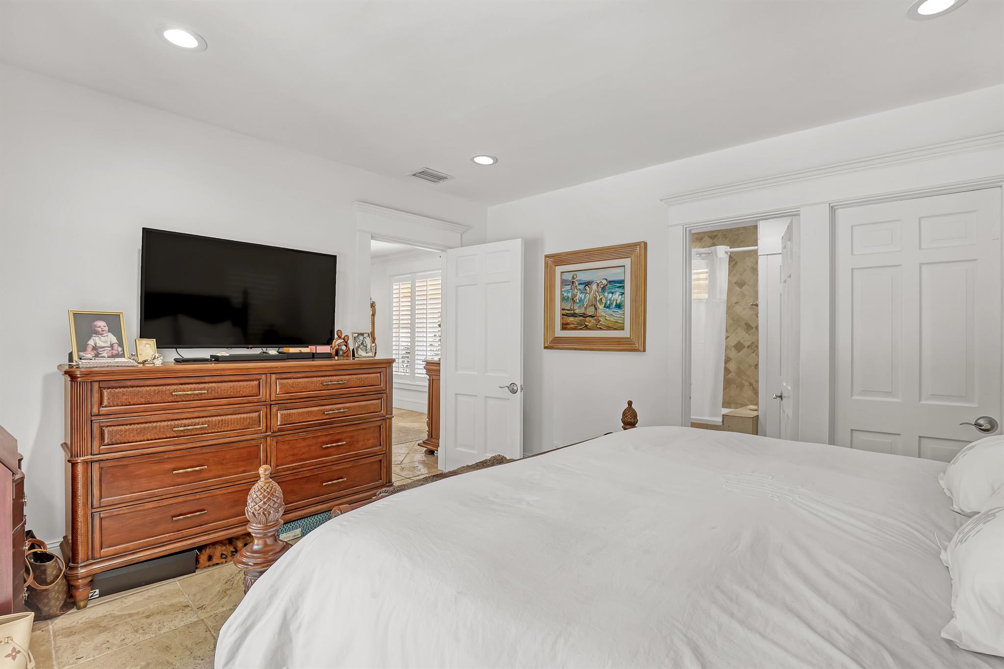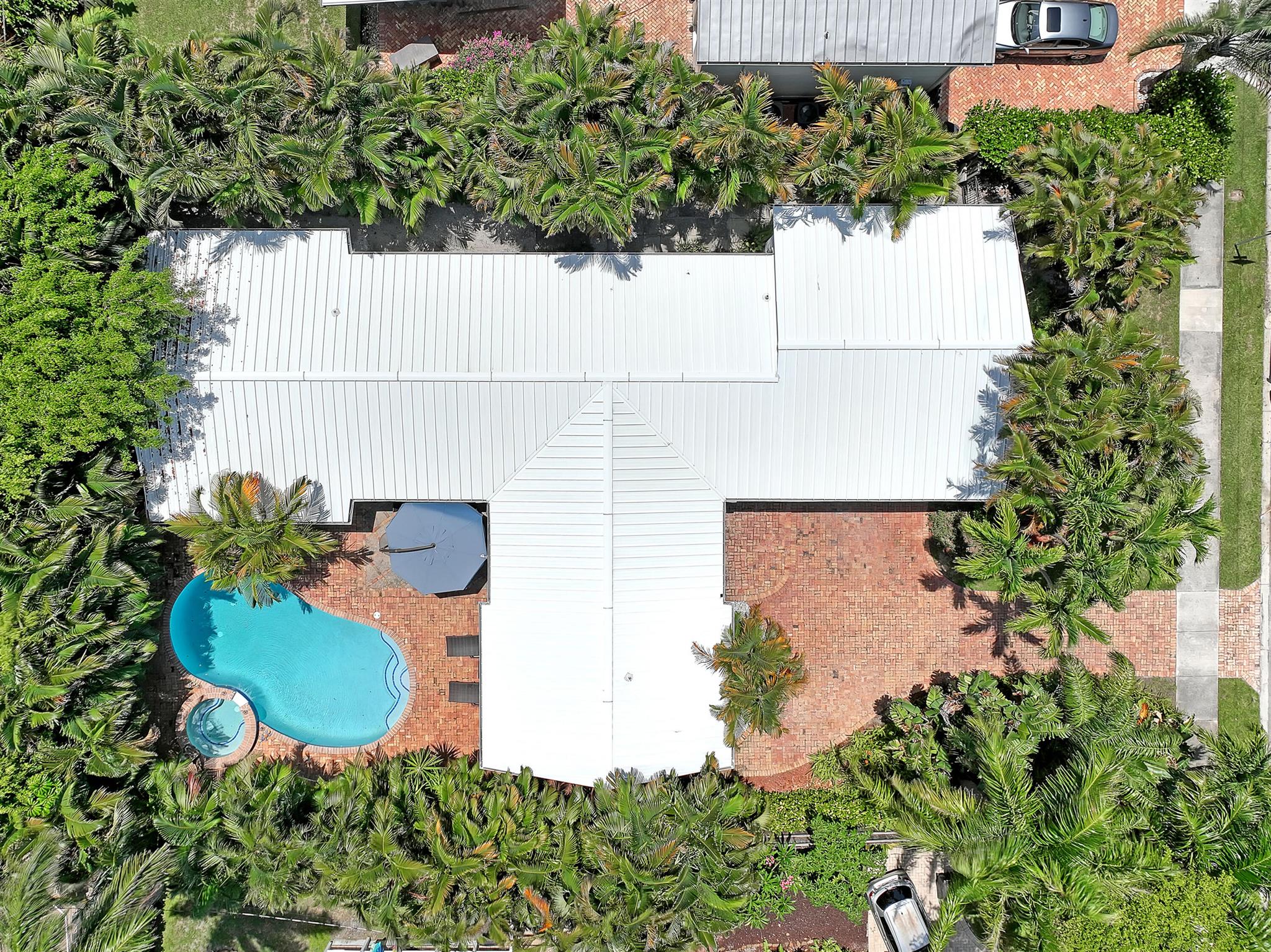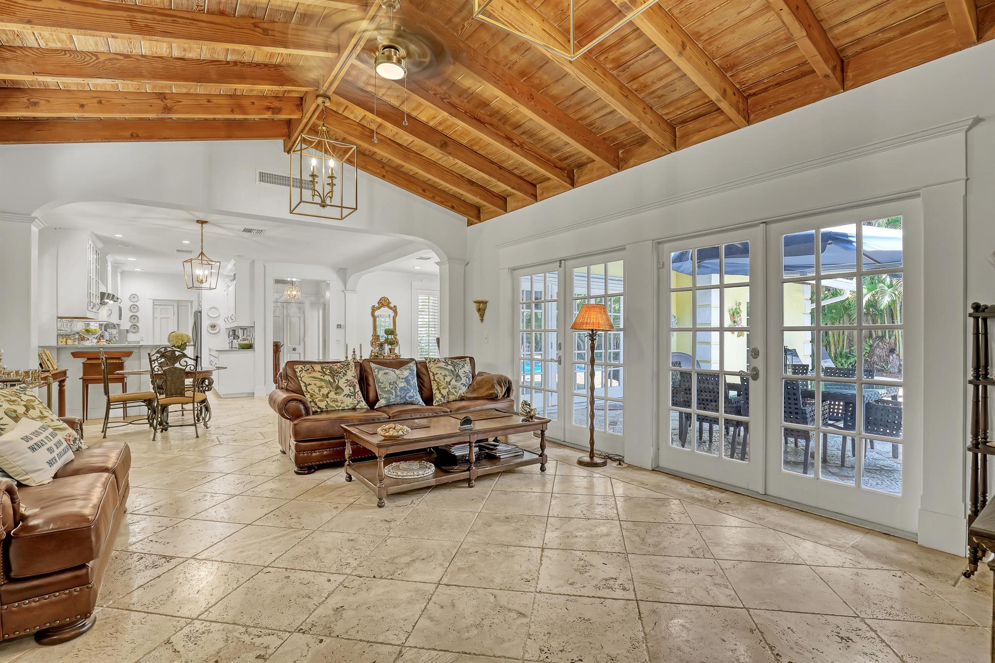 This CBS three bedroom, two bath, mid-century home with a gorgeous back yard and pool area is the epitome of charm. Featuring over two thousand feet of air-conditioned living space and an impressively large lot, just three houses from Flagler drive in SOSO. This premier location is the center of the high-end lifestyle that makes West Palm Beach so desirable. The property is situated just one block from the Intracoastal Waterway and providing easy access to downtown West Palm Beach, Mar-a-Lago, Worth Avenue, and Palm Beach International Airport. The home features an open concept design with a chef's kitchen, Quartz counter tops, custom backsplash, high end stainless appliances and gas range. The neutral stone flooring seamlessly blends warm tones throughout the home.