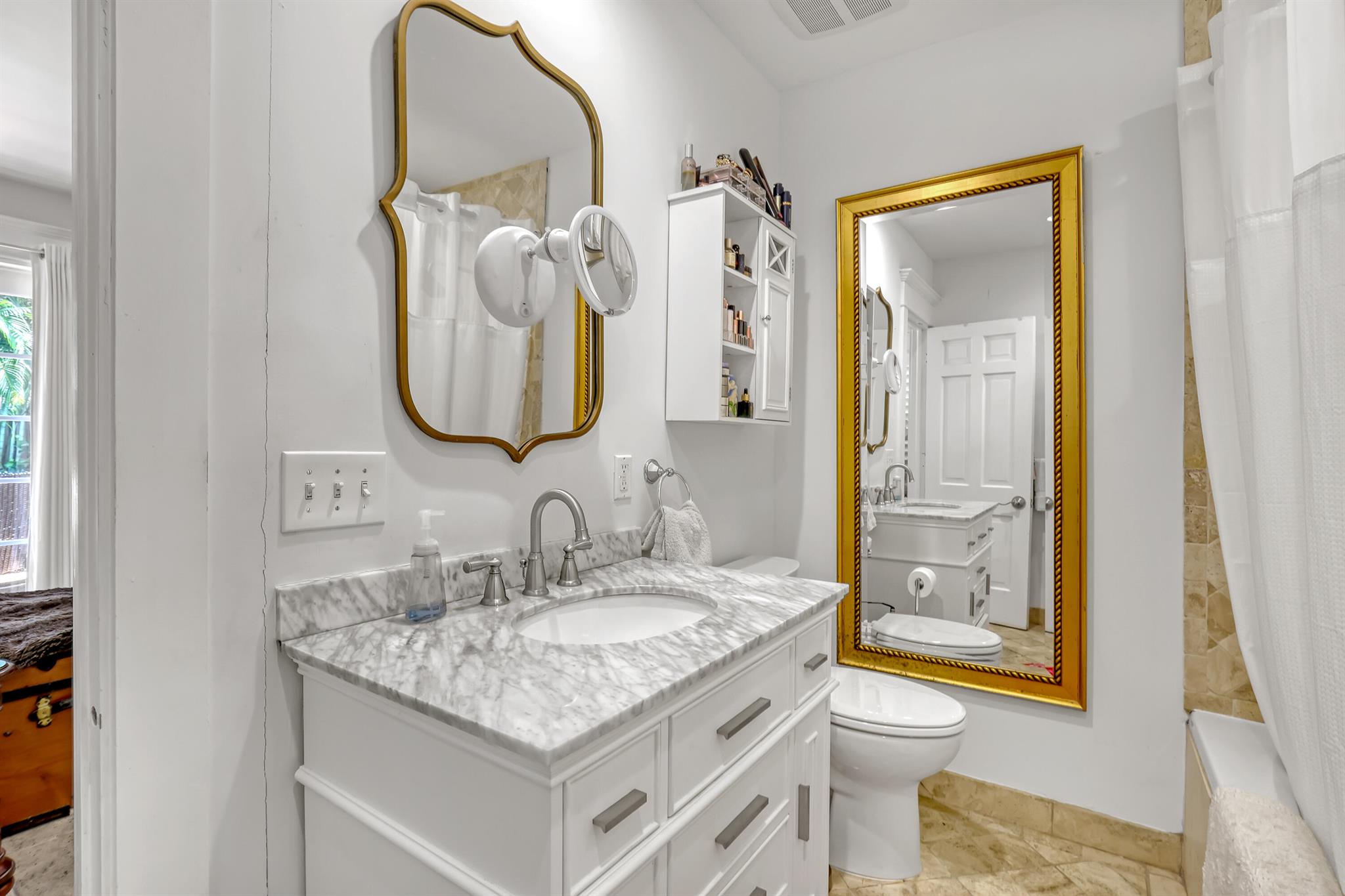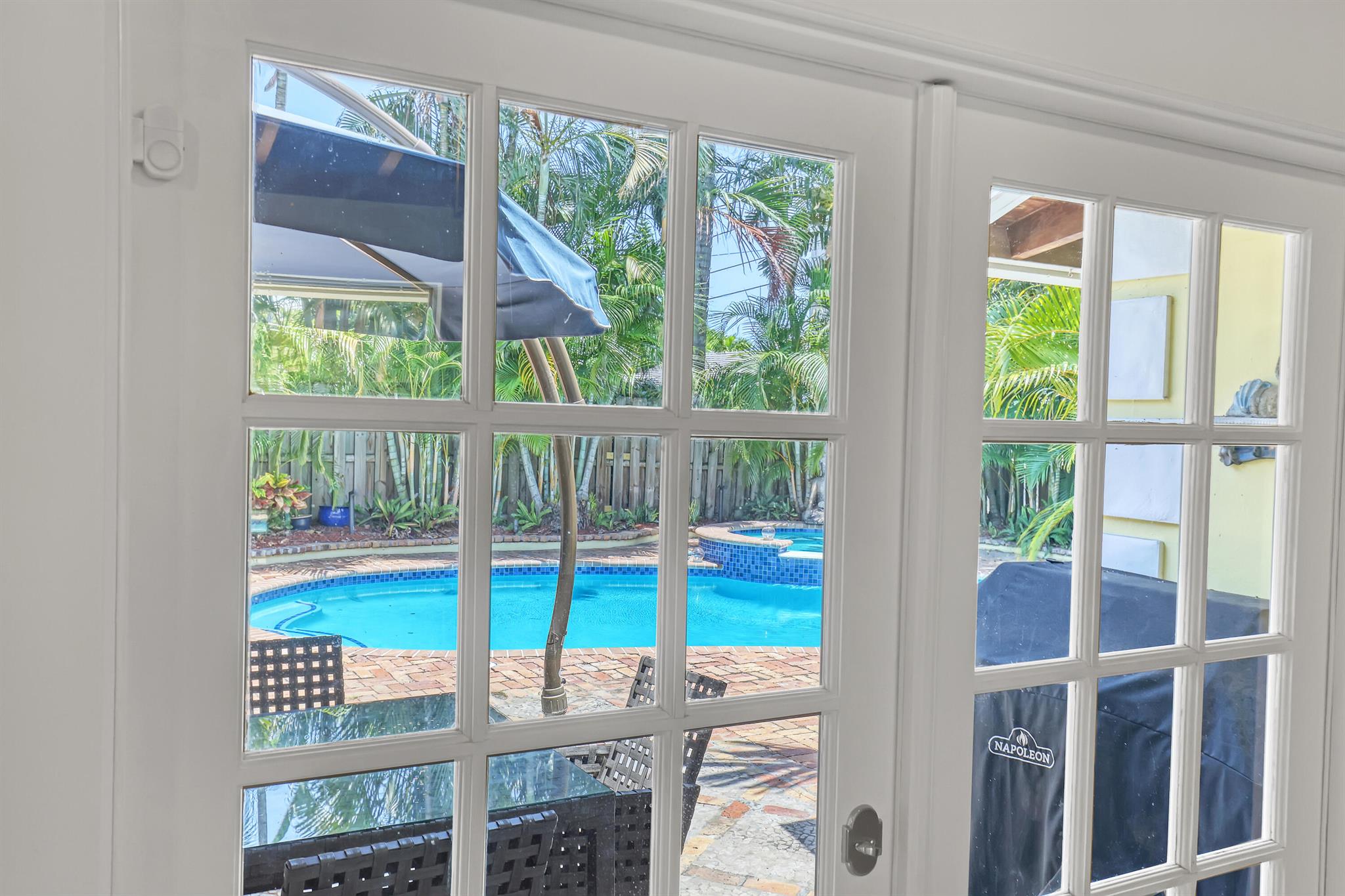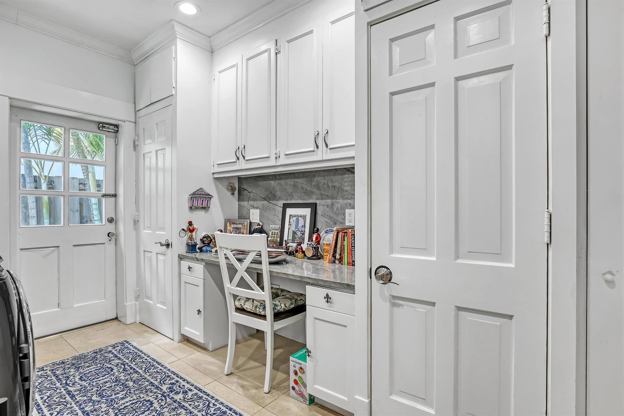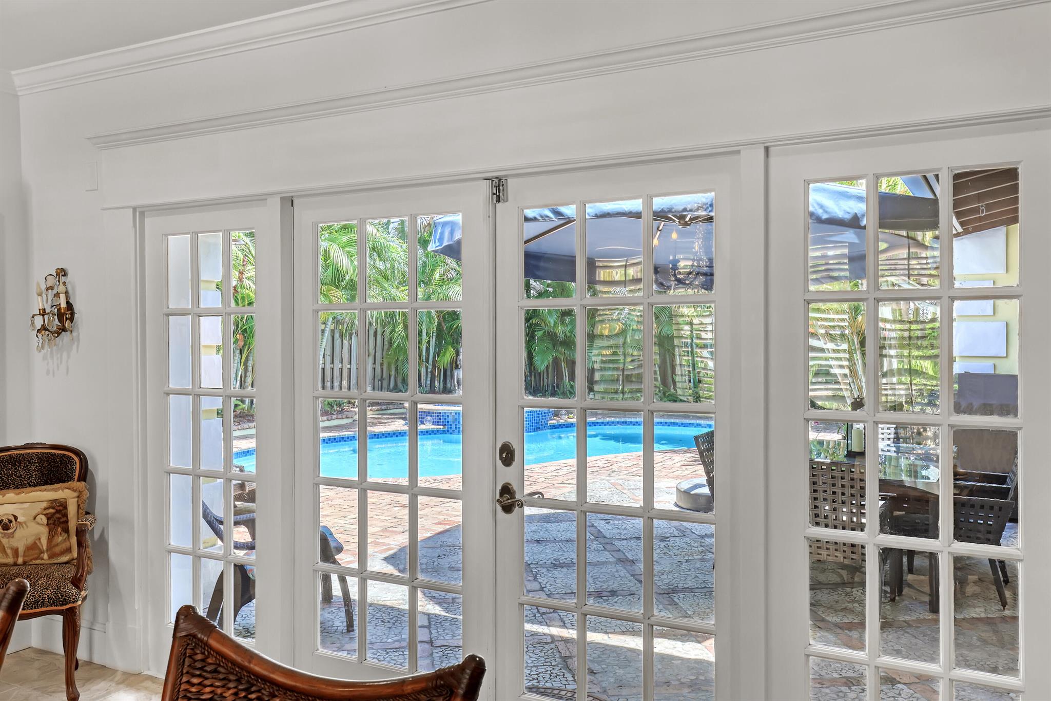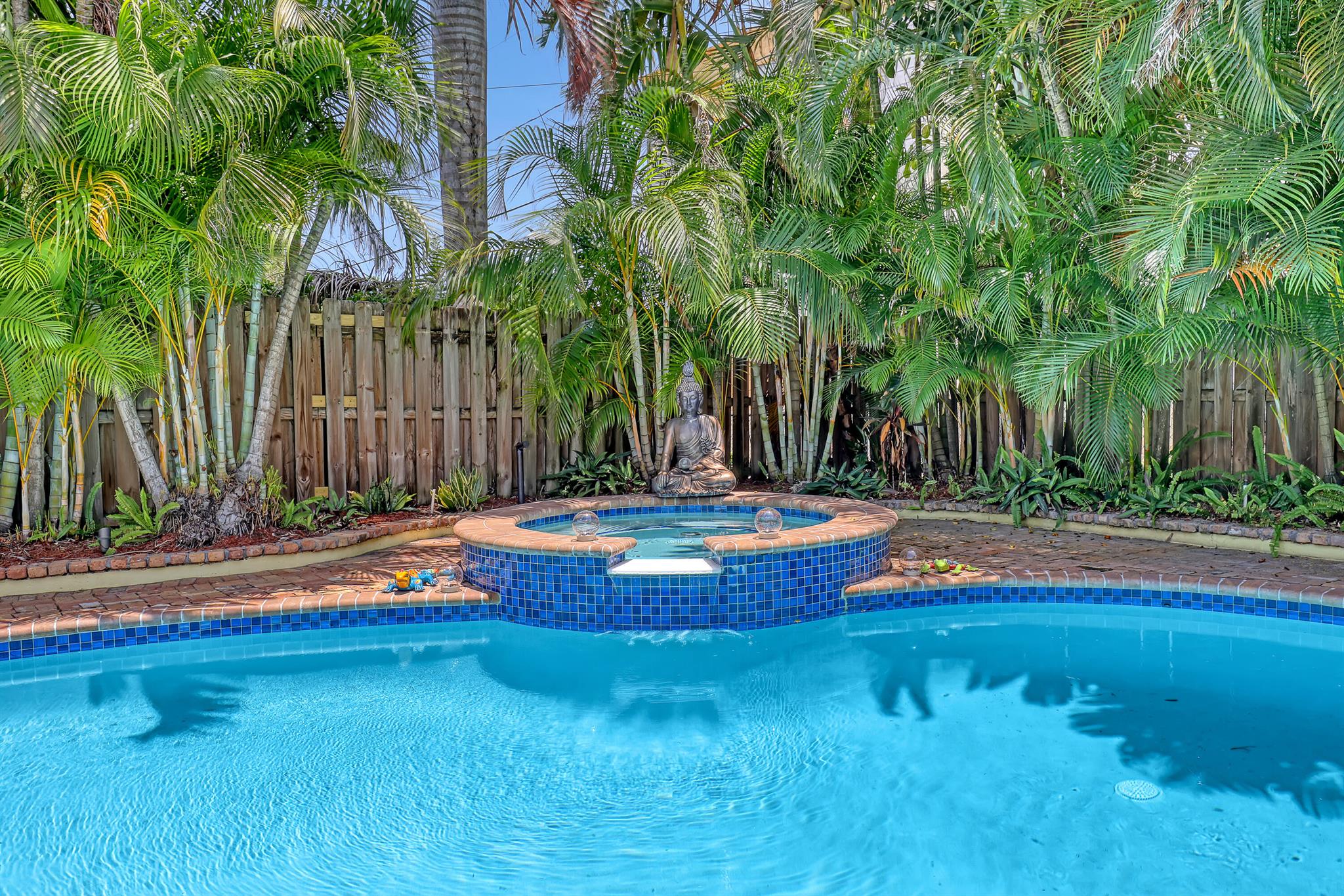 This CBS three bedroom, two bath, mid-century home with a gorgeous back yard and pool area is the epitome of charm. Featuring over two thousand feet of air-conditioned living space and an impressively large lot, just three houses from Flagler drive in SOSO. This premier location is the center of the high-end lifestyle that makes West Palm Beach so desirable. The property is situated just one block from the Intracoastal Waterway and providing easy access to downtown West Palm Beach, Mar-a-Lago, Worth Avenue, and Palm Beach International Airport. The home features an open concept design with a chef's kitchen, Quartz counter tops, custom backsplash, high end stainless appliances and gas range. The neutral stone flooring seamlessly blends warm tones throughout the home.