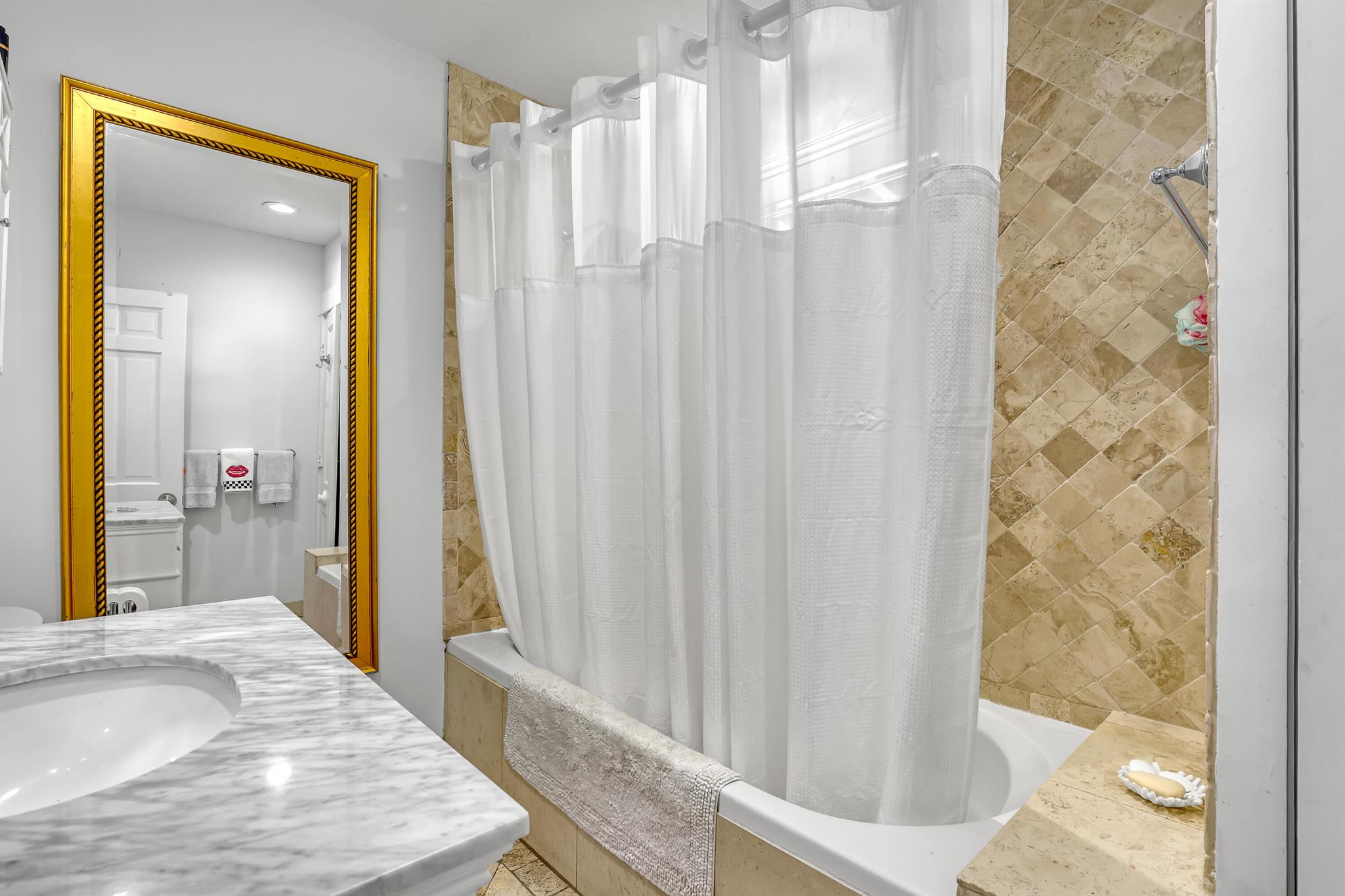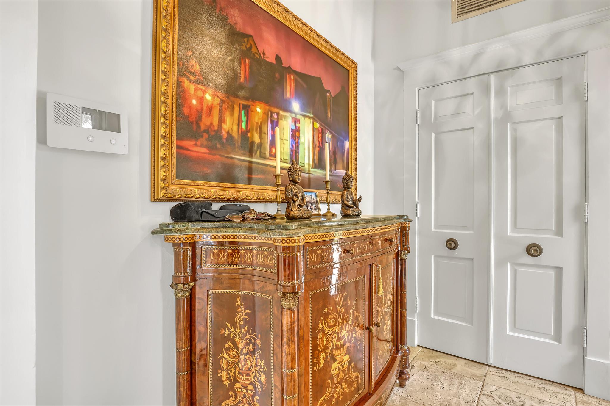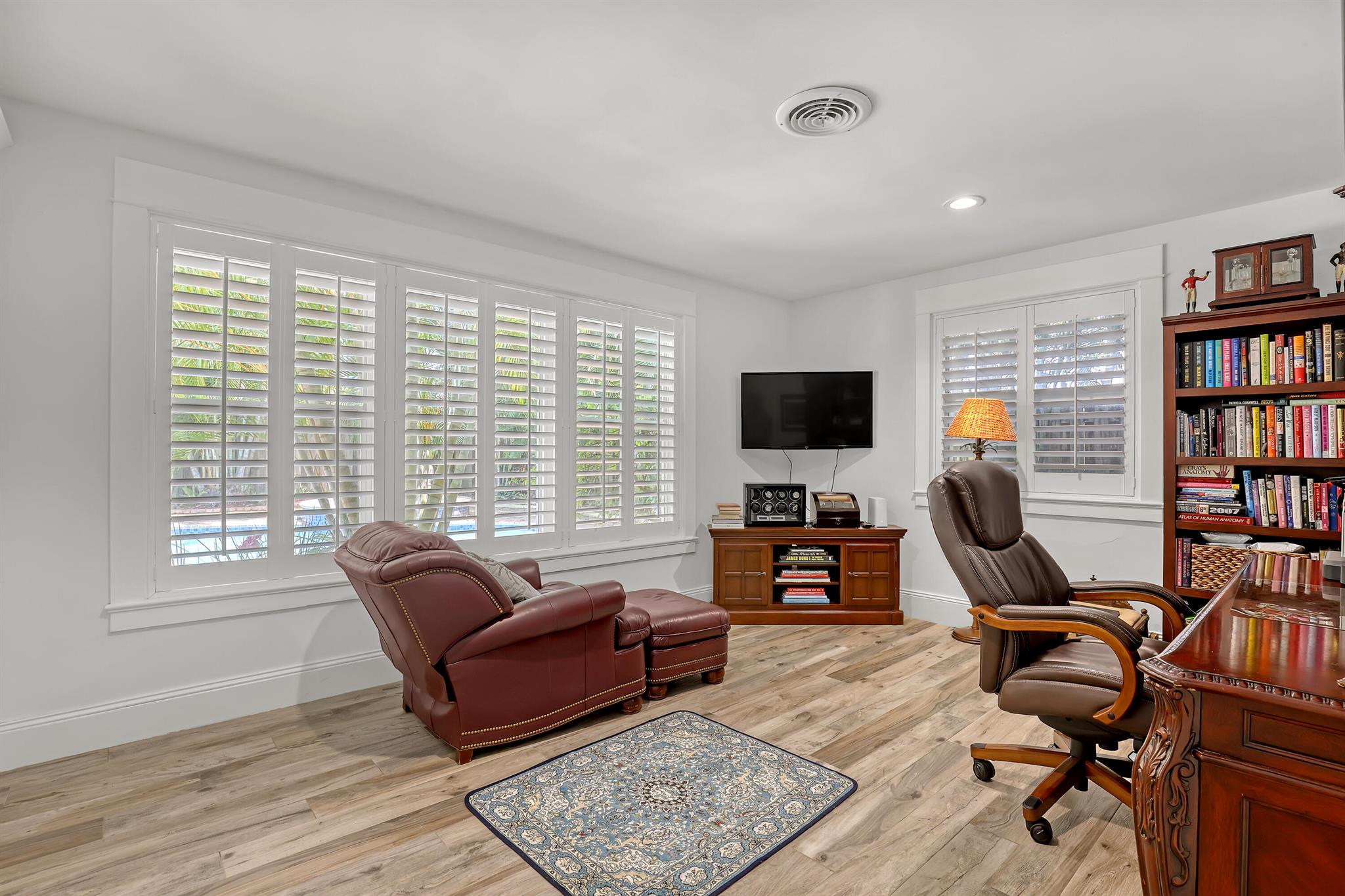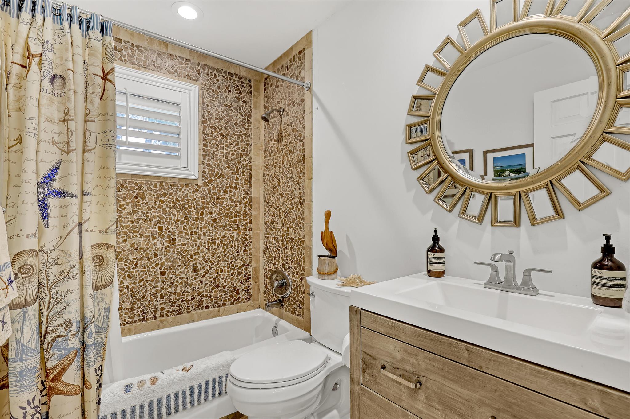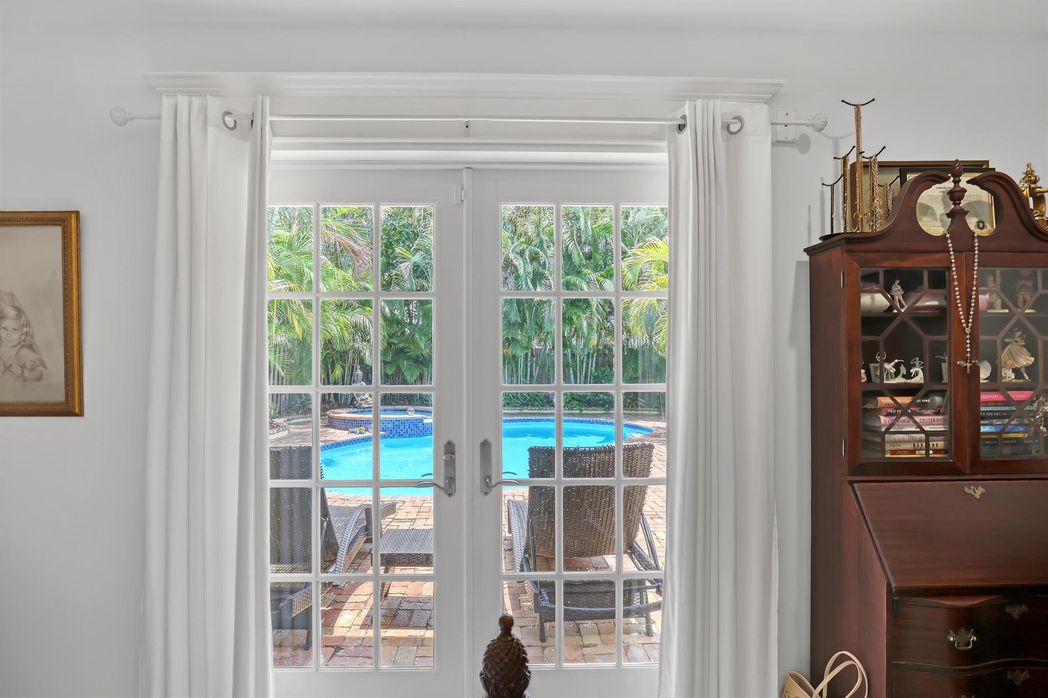 This CBS three bedroom, two bath, mid-century home with a gorgeous back yard and pool area is the epitome of charm. Featuring over two thousand feet of air-conditioned living space and an impressively large lot, just three houses from Flagler drive in SOSO. This premier location is the center of the high-end lifestyle that makes West Palm Beach so desirable. The property is situated just one block from the Intracoastal Waterway and providing easy access to downtown West Palm Beach, Mar-a-Lago, Worth Avenue, and Palm Beach International Airport. The home features an open concept design with a chef's kitchen, Quartz counter tops, custom backsplash, high end stainless appliances and gas range. The neutral stone flooring seamlessly blends warm tones throughout the home.