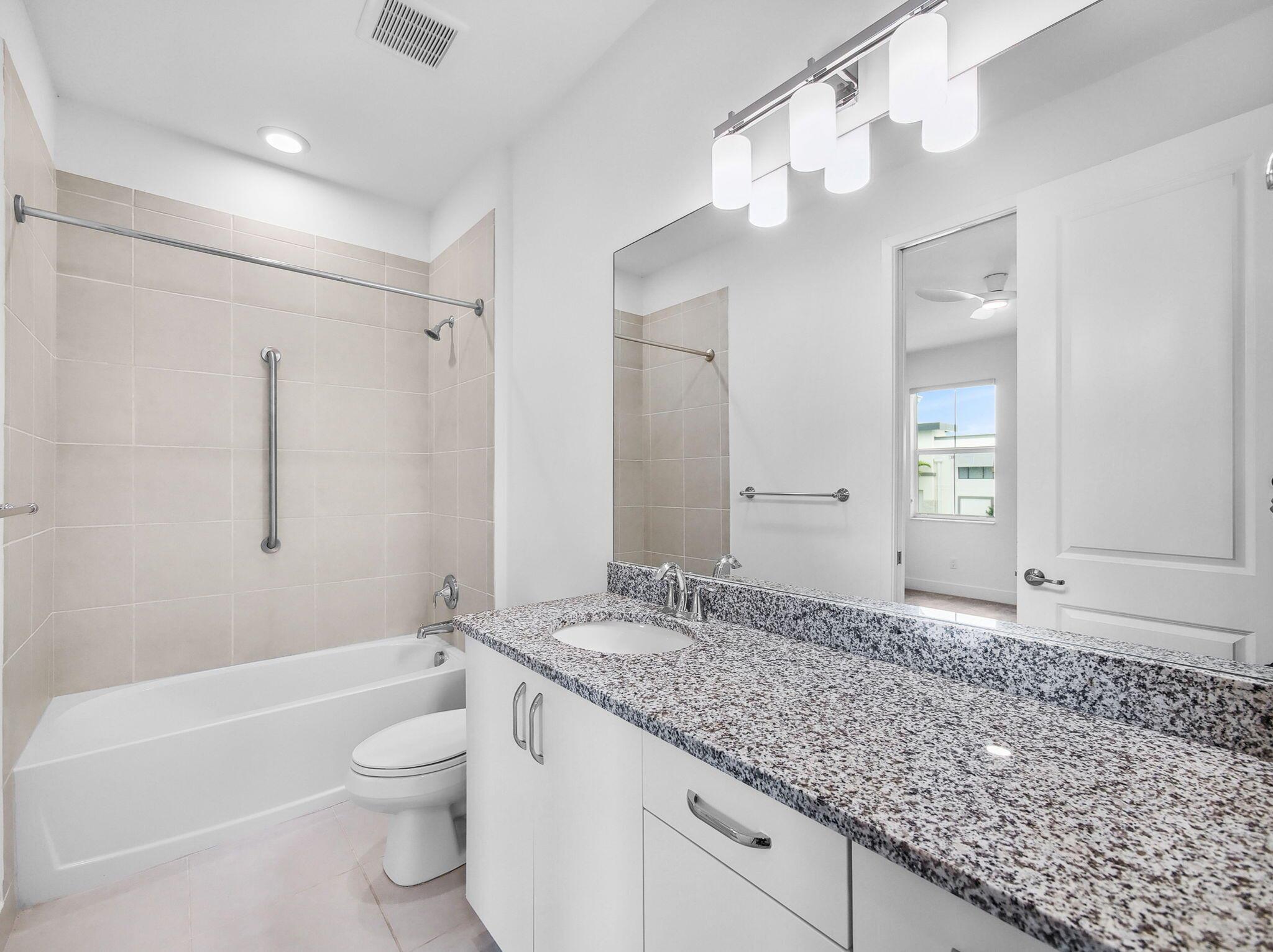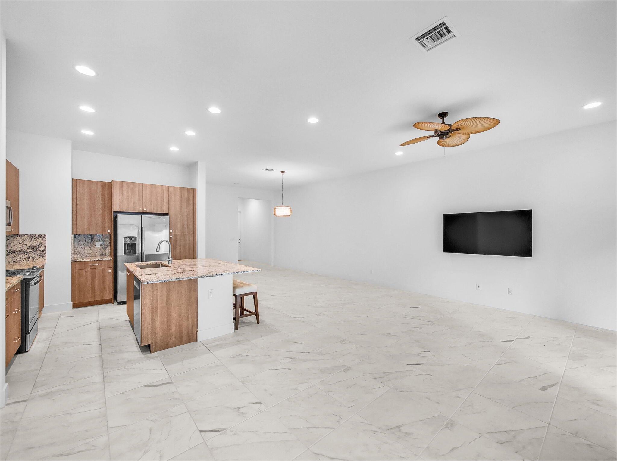 Amazing Townhome that is in nearly ''New Construction'' condition. The Kitchen features a massive island with an extra deep sink, natural stone countertops, European style cabinetry, GE SS appliances and a Bosch dishwasher. The first floor also features a large dining area, half bath, porcelain tile floors and lots of recessed lighting. Upstairs you'll find a large office landing surrounded by bedrooms. The Master features generous walk-in closet, a large en-suite bath with dual vanities and a Jumbo Party Shower! The guest bedrooms also have walk-in closets and modern ceiling fans. Pointe Midtown is located in the heart of Palm Beach Gardens with an almost endless supply of restaurants and shoppes nearby.