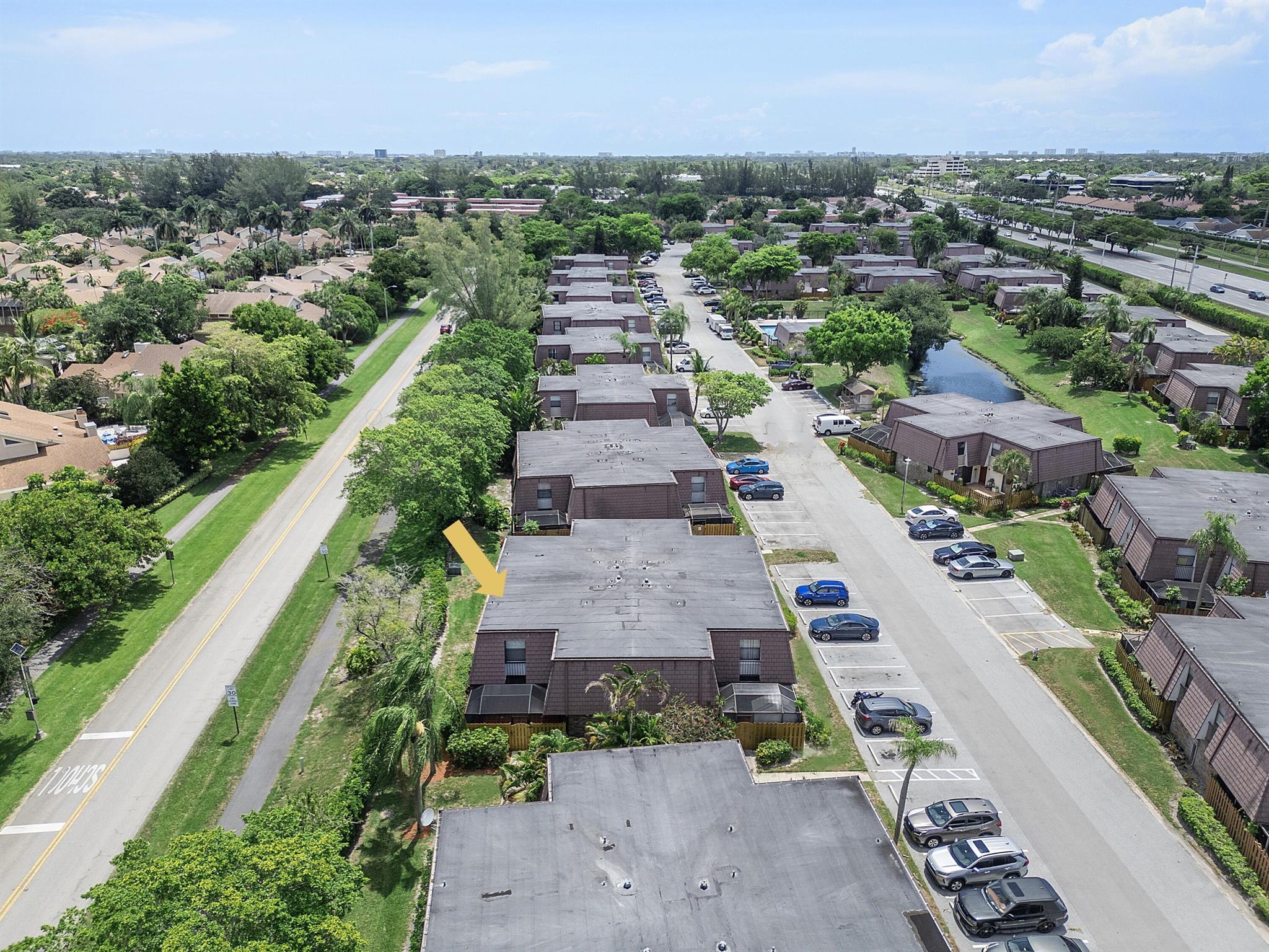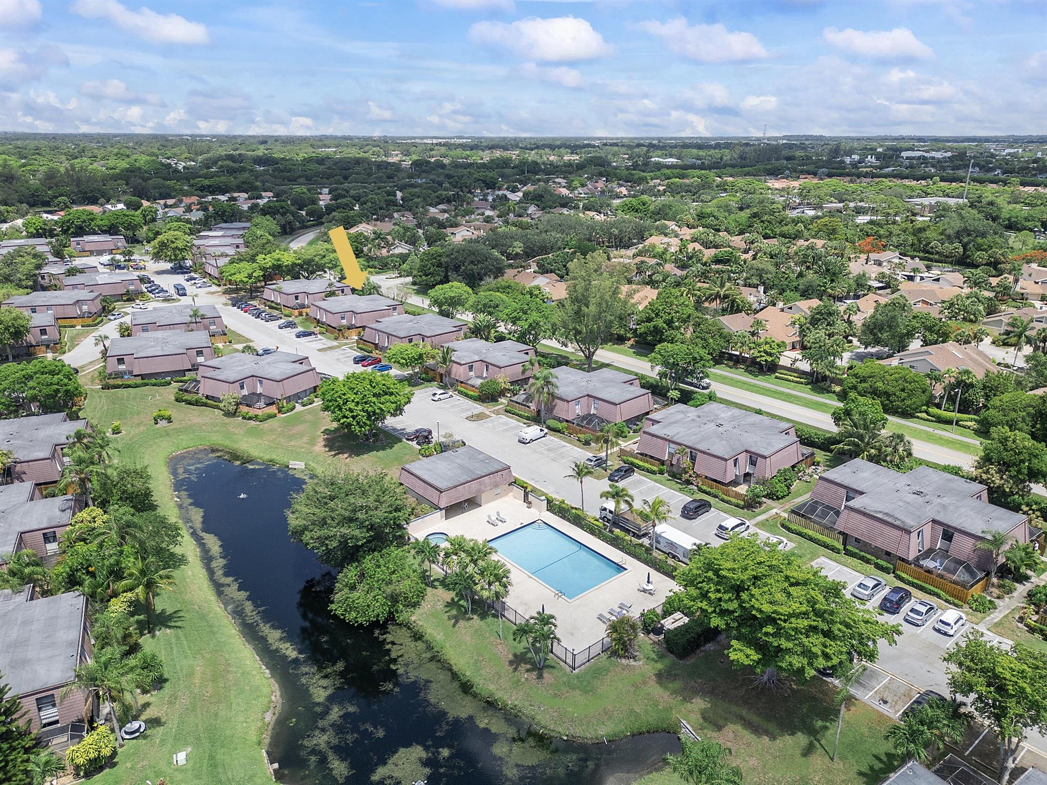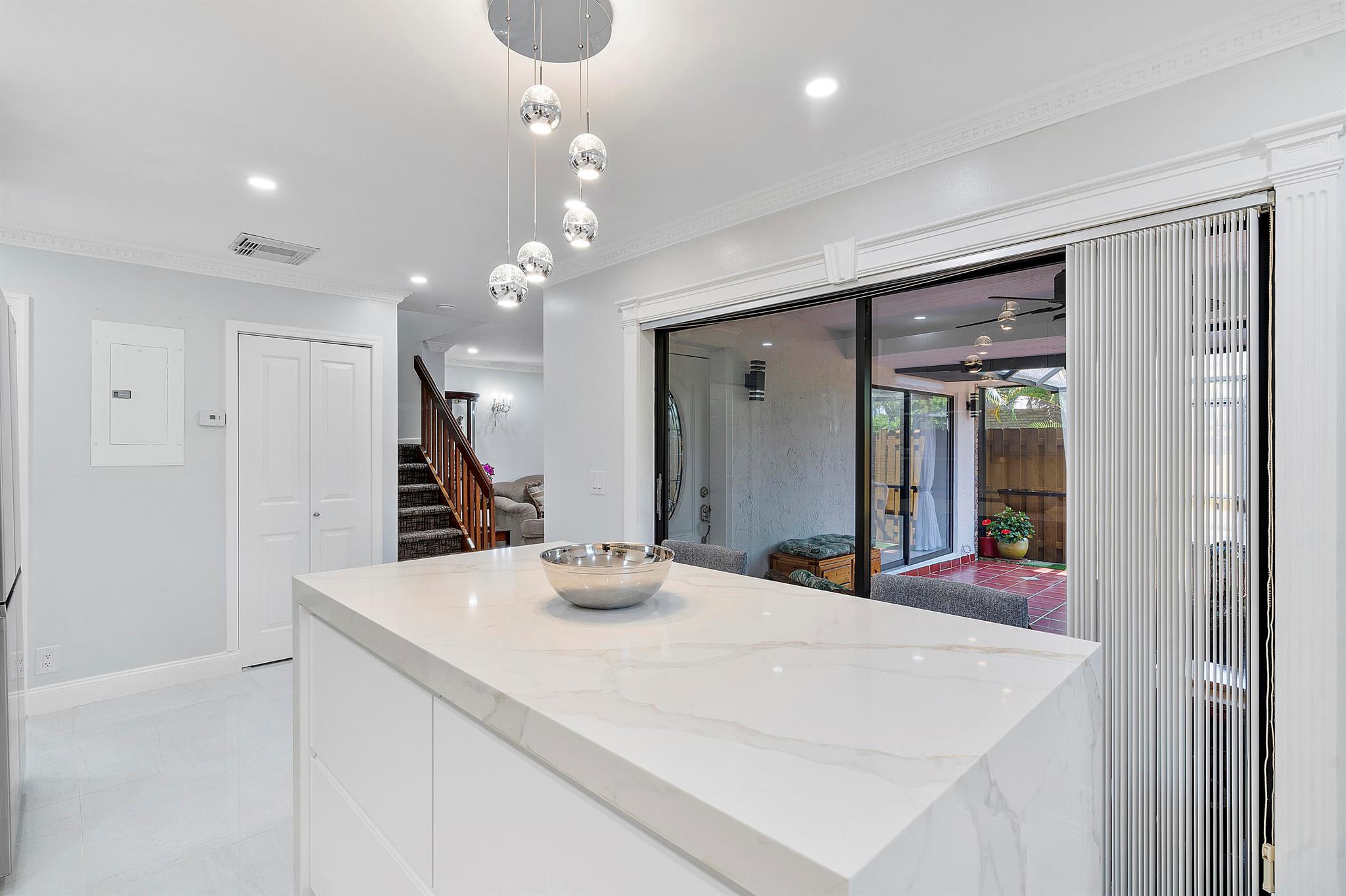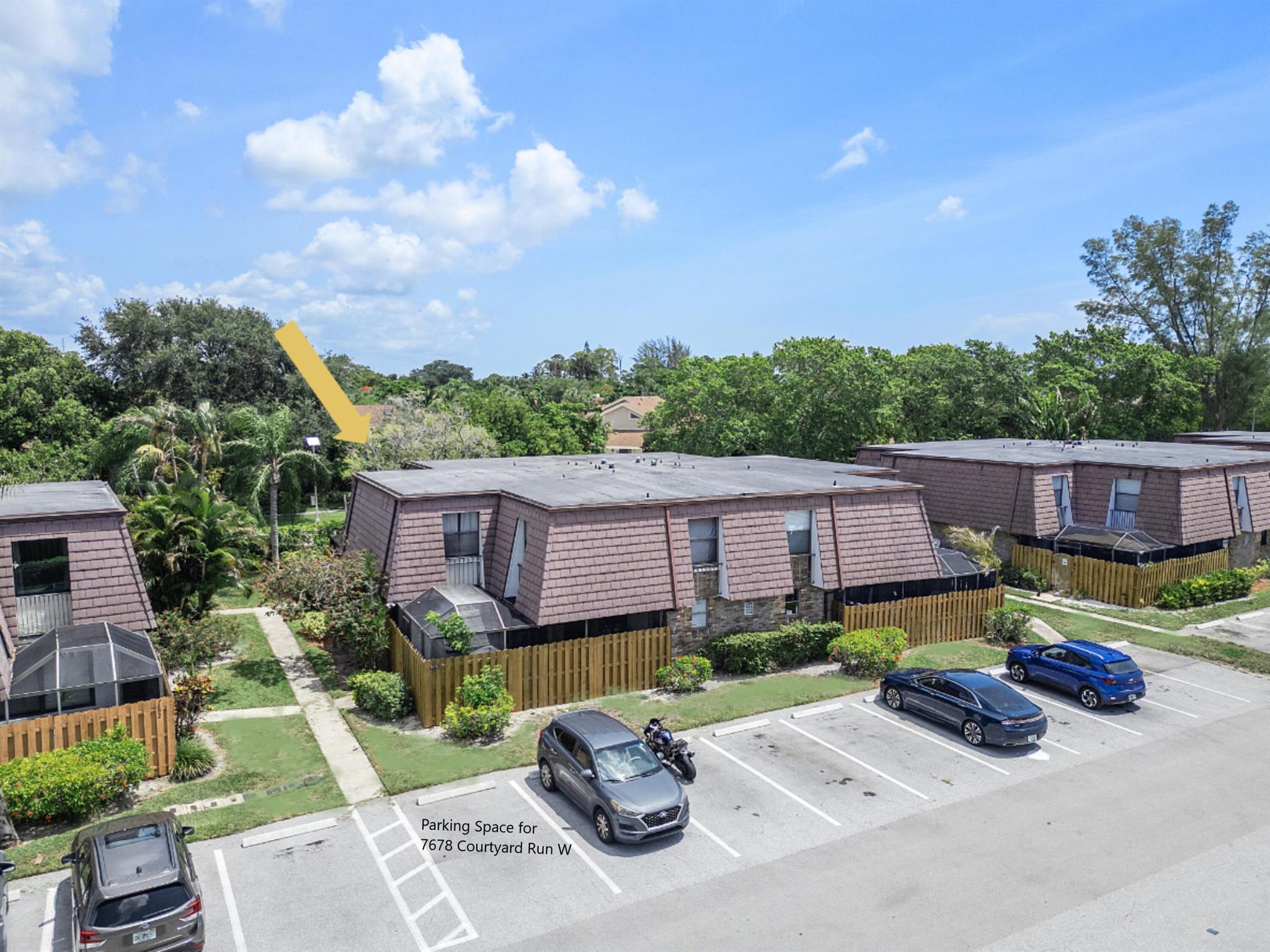 Lovely, move-in ready 3 bedrooms & 2.1 bathrooms Townhouse. New porcelain tile flooring & flat ceiling w/embedded LED lights throughout the 1st flr. Kitchen thoughtfully renovated w/SS appliances *Quartz countertops, backsplash & Island *LED lighting around countertops *Cabinets & drawers w/soft close hardware *Corner floor cabinet w/removable swivel hardware. Living room has decorative fireplace w/heating feature. Bathrooms are upgraded. Half bath & W/D on 1st flr. Bedrooms & full bathrooms on 2nd flr. Accordion shutters on windows. Screened courtyard w/tile floor & new wood fencing perfect for enjoyment & entertainment. Ideal assigned parking space. Property is in a pet-friendly community w/pool, close to A rated schools, shopping, dining, and houses of worship. This is a must see!