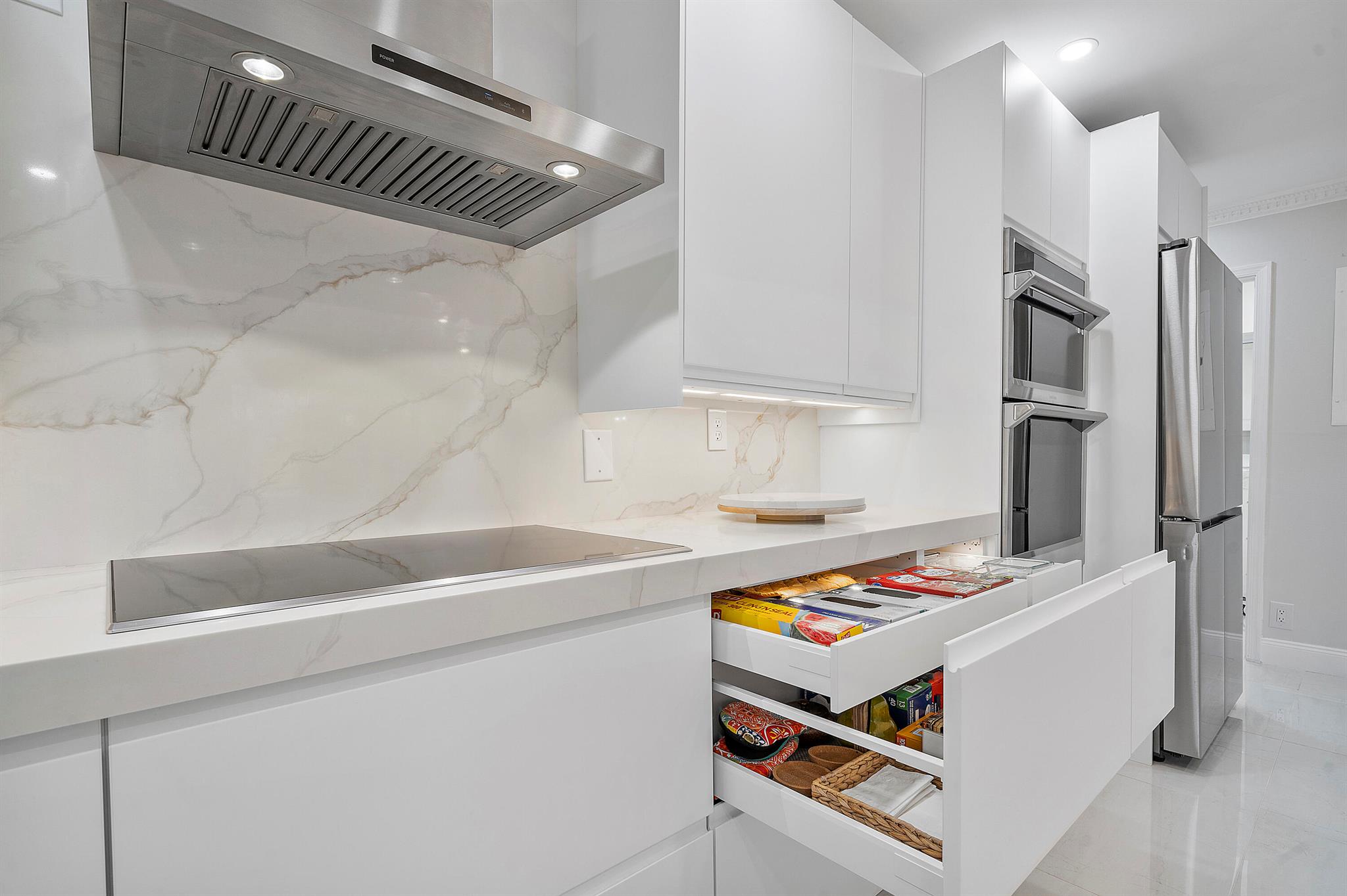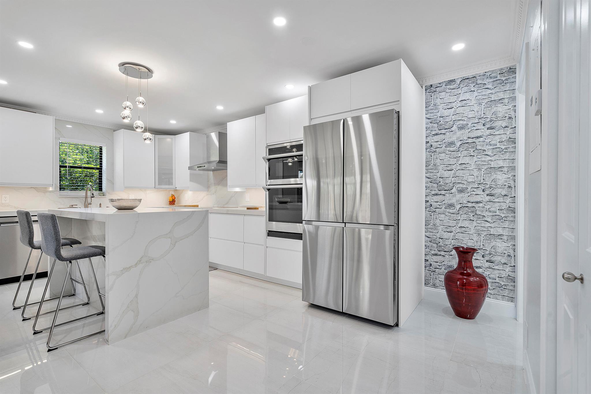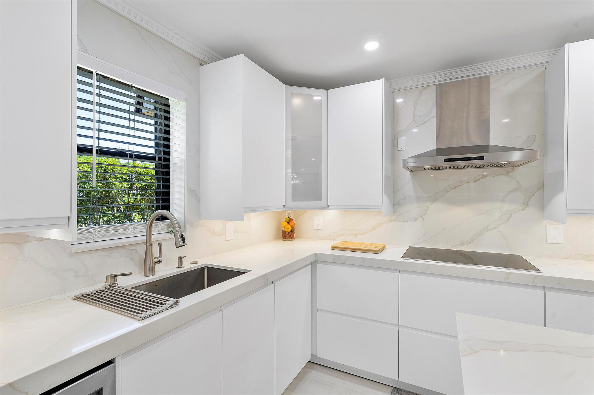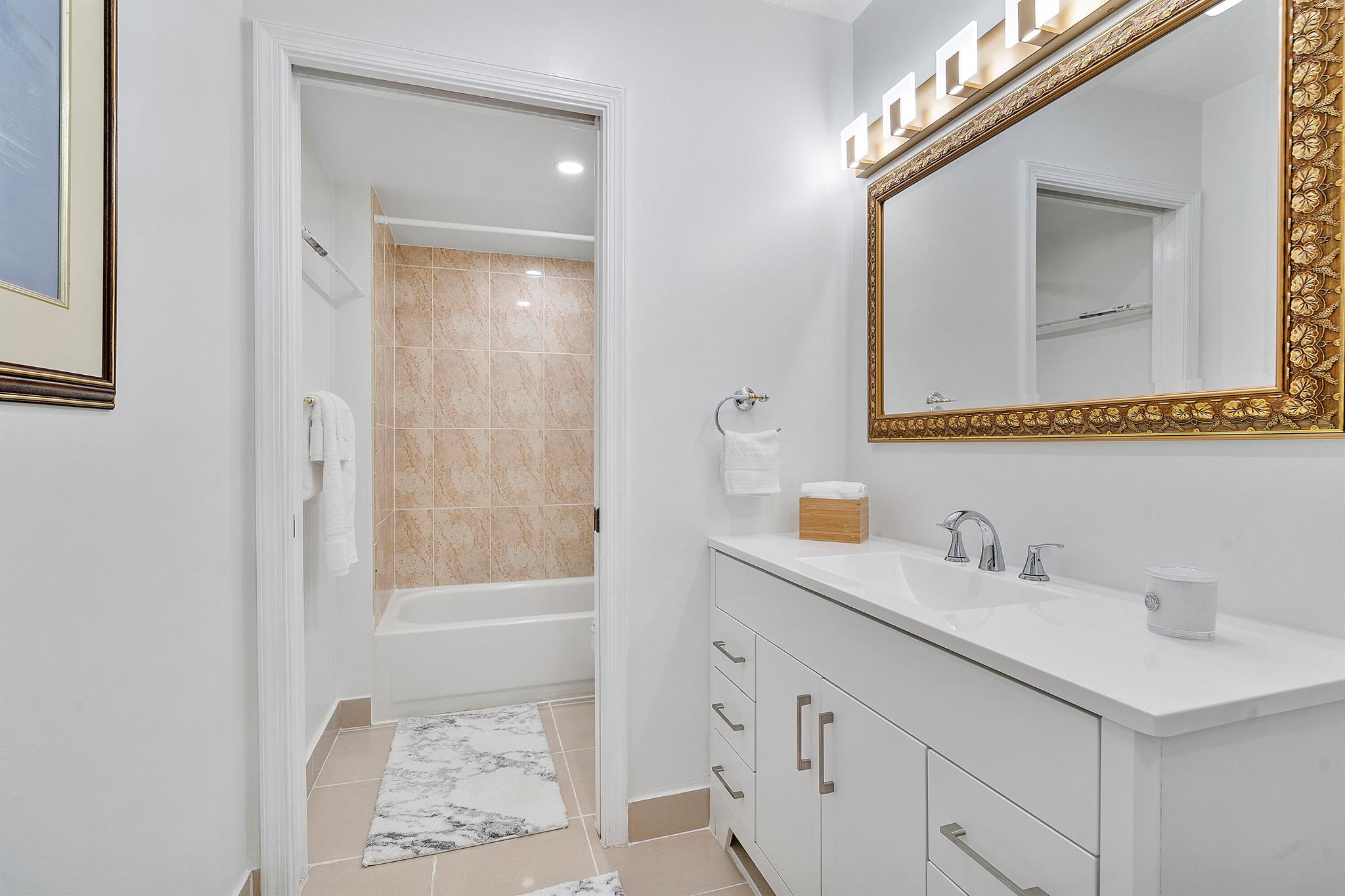 Lovely, move-in ready 3 bedrooms & 2.1 bathrooms Townhouse. New porcelain tile flooring & flat ceiling w/embedded LED lights throughout the 1st flr. Kitchen thoughtfully renovated w/SS appliances *Quartz countertops, backsplash & Island *LED lighting around countertops *Cabinets & drawers w/soft close hardware *Corner floor cabinet w/removable swivel hardware. Living room has decorative fireplace w/heating feature. Bathrooms are upgraded. Half bath & W/D on 1st flr. Bedrooms & full bathrooms on 2nd flr. Accordion shutters on windows. Screened courtyard w/tile floor & new wood fencing perfect for enjoyment & entertainment. Ideal assigned parking space. Property is in a pet-friendly community w/pool, close to A rated schools, shopping, dining, and houses of worship. This is a must see!