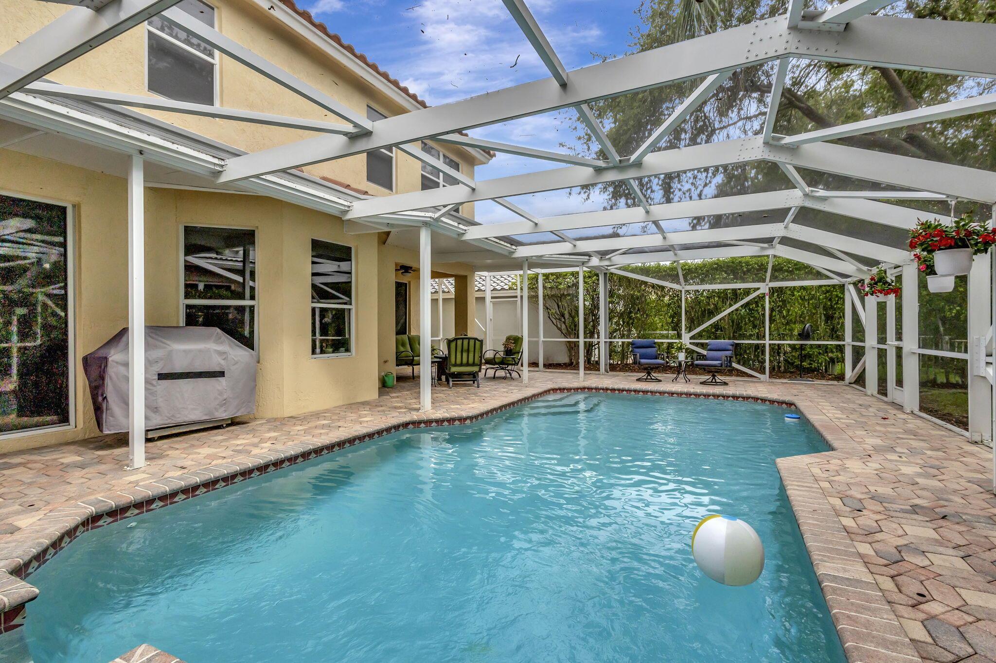 Nestled on a picturesque tree-lined street, this beautiful home offers comfort and charm in every detail. A brand new roof adds peace of mind, while the screened-in patio and sparkling pool invite year-round relaxation. Enjoy lush, professionally landscaped grounds and an oversized garage with ample storage. Inside, the gourmet kitchen features all-wood cabinets and granite countertops. All bedrooms are upstairs, including a spacious owner's suite and a versatile loft perfect for work or play. Located within walking distance to a house of worship and just minutes from shopping and amenities--this home combines convenience and elegance wrapped up in one perfect package.