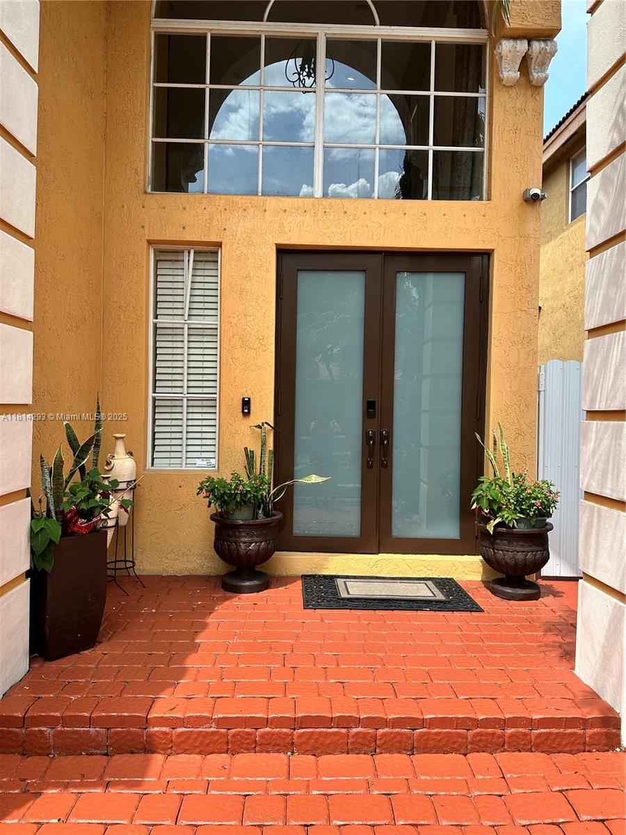 This elegant Miramar home offers the perfect blend of luxury and security. This 5/3 home with a 3-car garage, provides ample space for comfort and convenience. The interior boasts granite countertops, stainless steel appliances, custom wall units, and window treatments. The bathrooms adorned with modern fixtures, tile, and marble flooring create a spa-like retreat. Outside, an in-ground pool with a spa invites relaxation while the master bedroom balcony showcases breathtaking views. The covered patio is surrounded by palm trees, and a tranquil lake fountain adds to the home's serene ambiance. Designed for security, it includes outdoor cameras and hurricane impact doors. Elegant exterior lighting highlights enhancing curb appeal. Located in the sought-after Vizcaya community.