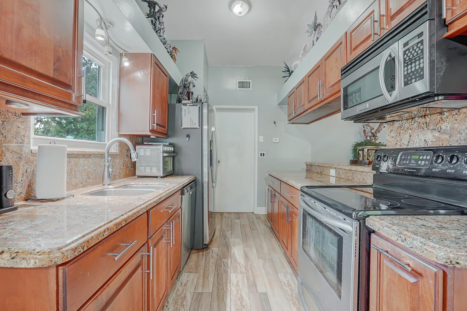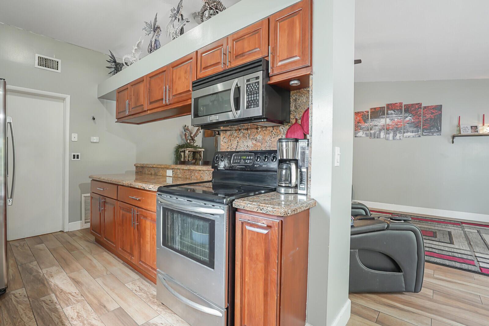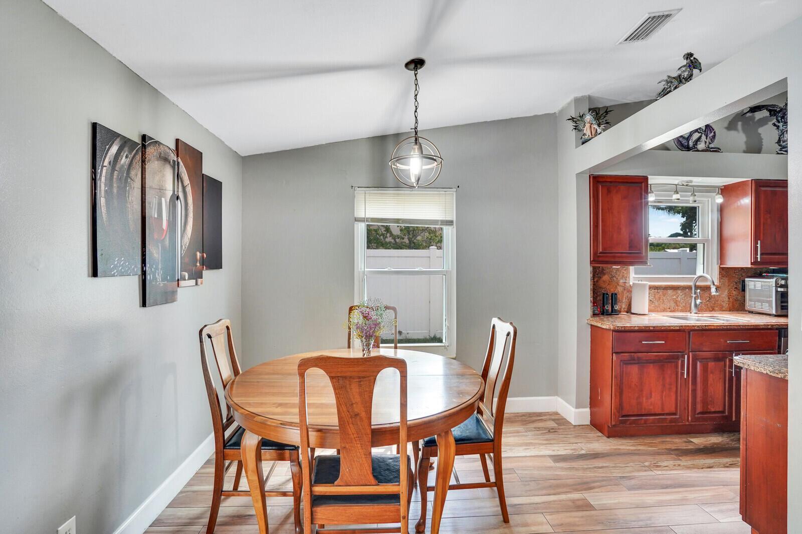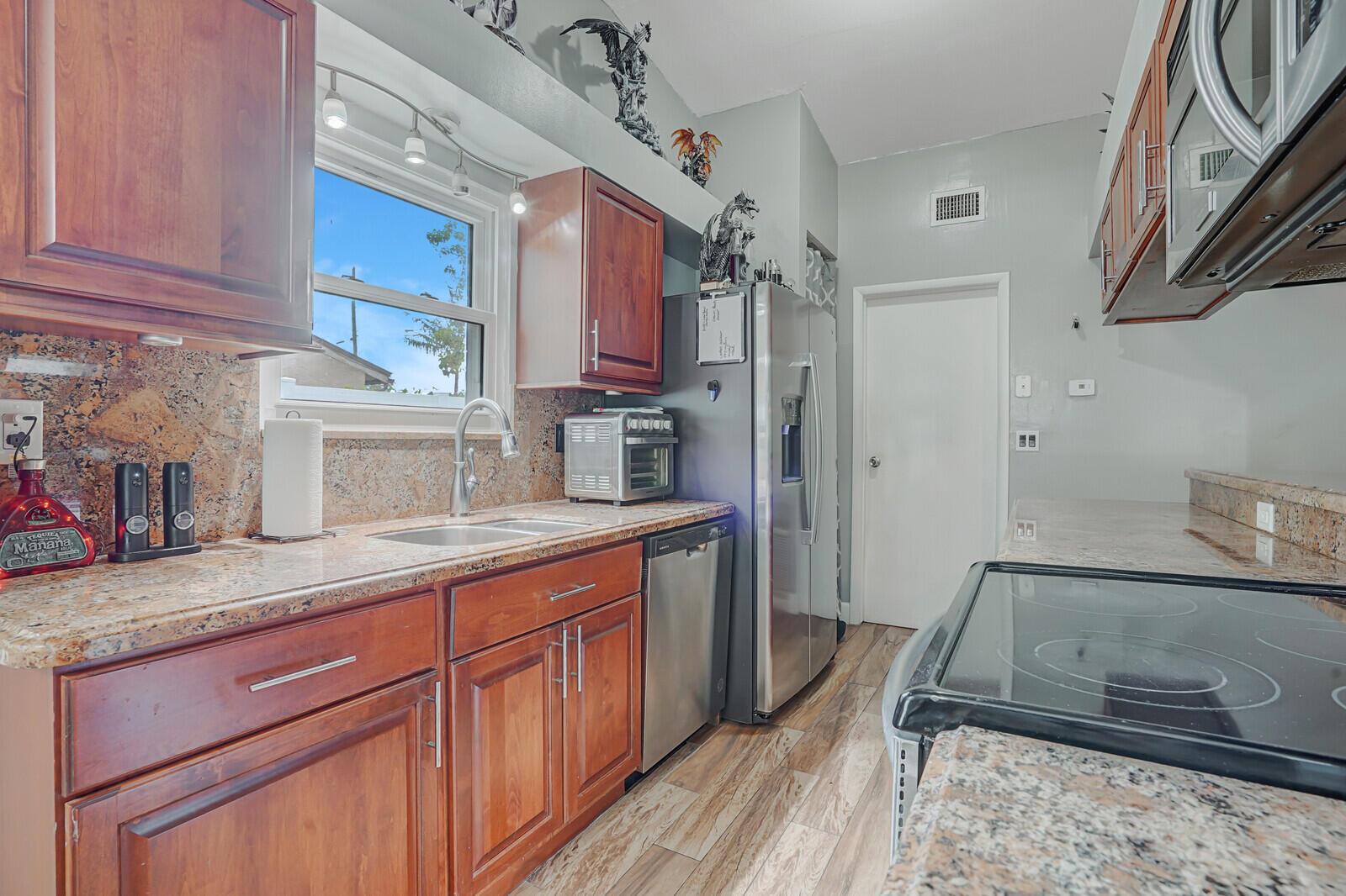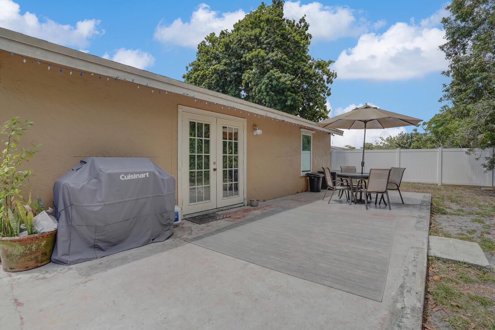 Updated 3-bed, 2-bath single-family home for sale in West Palm Beach! Enjoy a modern kitchen with granite counters and stainless steel appliances. The home also features impact windows, beautiful laminate flooring throughout. Spacious layout, 1-car garage, and a large fenced yard backing up to a canal with a water-facing dock patio--perfect for fishing, relaxing or entertaining. Conveniently located near PBIA, I-95, shopping, and dining. Located in the quiet North Landing community. Easy to show. Tenant occupied till July 31st, 2025.