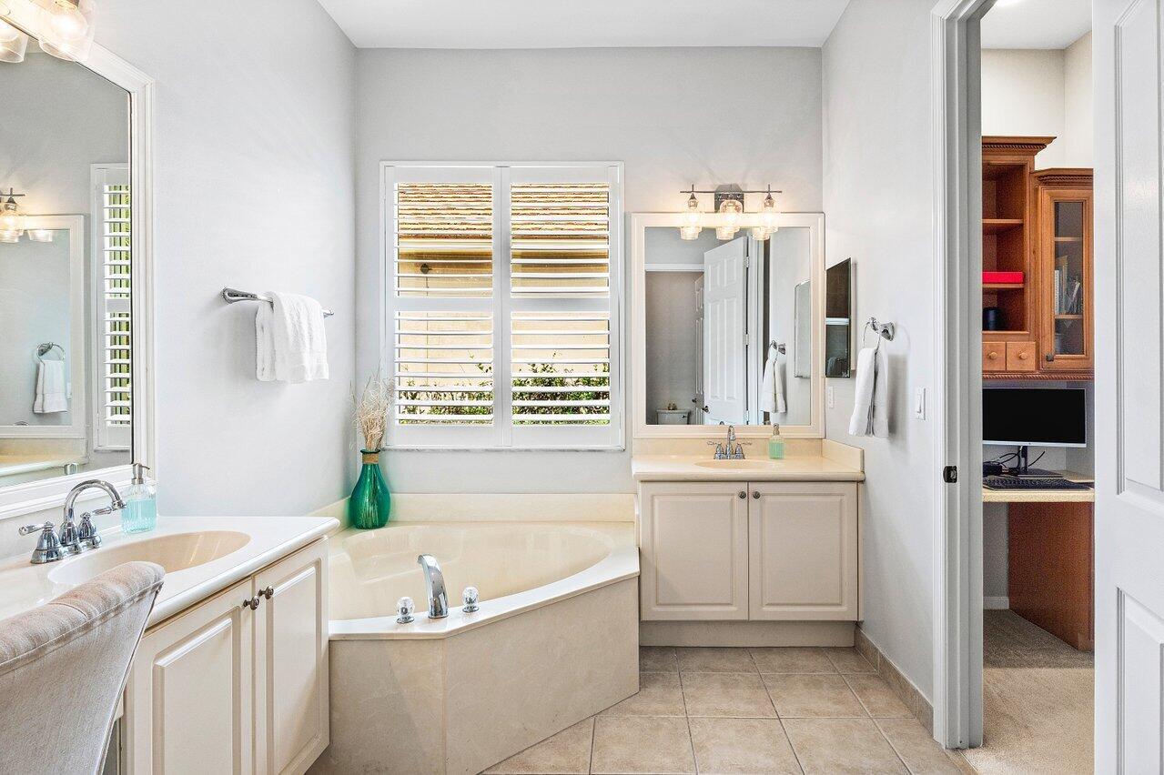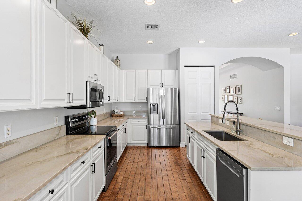 Welcome to this beautifully maintained home tucked away on a quiet cul-de-sac in the highly desirable Palm Beach Plantation community. Perfectly situated close to the Wellington green mall, great shopping and restaurants, within minutes of the turnpike. Located in a family friendly neighborhood with lots of children, zoned for top rated schools.This home offers plantation shutters throughout, fresh interior paint, and a recently remodeled kitchen featuring quartzite countertops. The backyard features a great entertaining area with a heated salt water pool, and a travertine tile deck. Recent updates include a new roof 2020, water heater 2024, dual-zone A/C one replaced 2018 the other 2024. This is more than a house-it's a home in a community that truly supports family living.