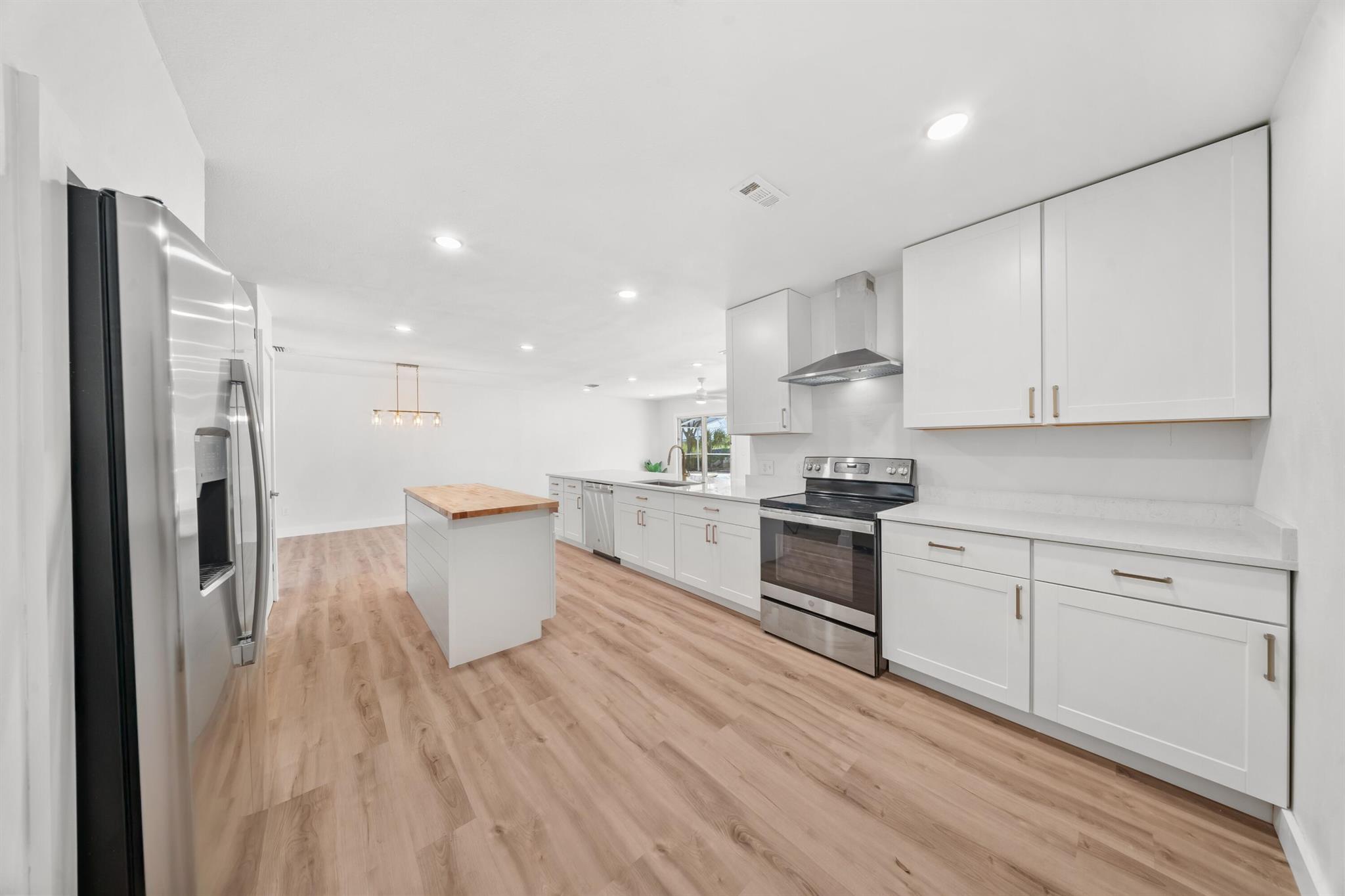 Motivated seller bring all offers! Welcome to this beautifully renovated 3-bedroom, 2-bathroom home that is perfectly positioned on an oversized corner lot in a quiet neighborhood. Step inside to find luxury vinyl flooring throughout, modern appliances, and a stylish kitchen featuring quartz countertops and a butcher block island--perfect for entertaining. The updated, natural stone fireplace adds warmth and charm to the spacious living area. Both bathrooms have been completely remodeled with spacious double vanities and contemporary finishes. Outside, enjoy your private backyard complete with an in ground pool, relaxing hot tub, and outdoor kitchen area. The home also includes a solar electric system for reduced electric bills! *This home is for sale or rent.