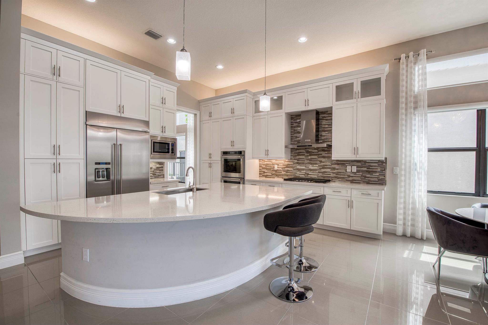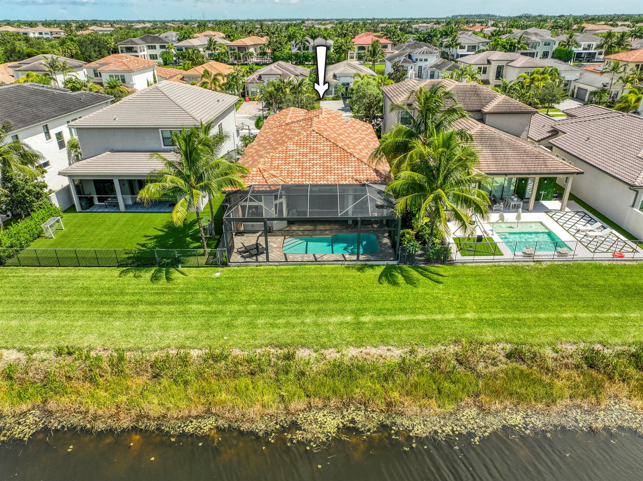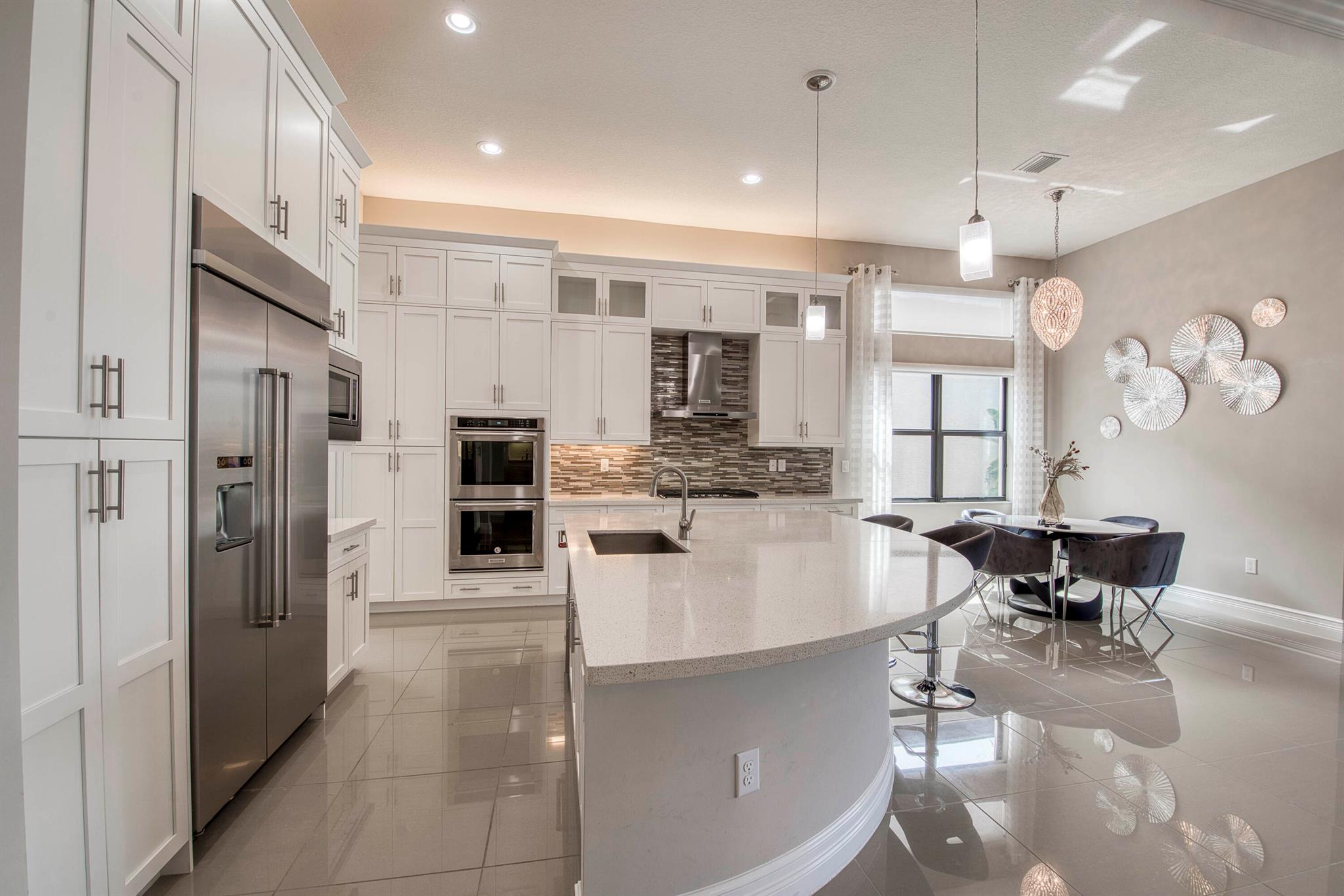 Beautiful and alluring lake views from this upgraded single-story home featuring 4 bedrooms and 3.5 bathrooms, with impact glass throughout. Highlights include coffered ceilings, crown moldings, a custom media center, built-in closets, a full home generator, and whole-house water filtration and purification. The chef's kitchen boasts quartz countertops, a gas range, and premium appliances. The primary suite has custom closets, European-style drapes, and a spa-like bathroom with dual vanities, a large shower, and a bidet. Relax by the heated pool or enjoy the summer kitchen and upgraded picture window screen enclosure. Marble-look tile, an EV car wall charger, and a 3-car garage complete the property. Seven Bridges offers an unparalleled lifestyle with its 30,000 sq ft clubhouse, modern